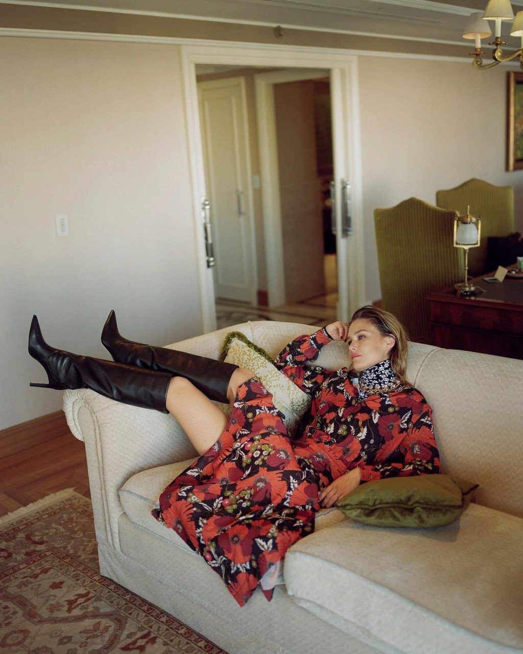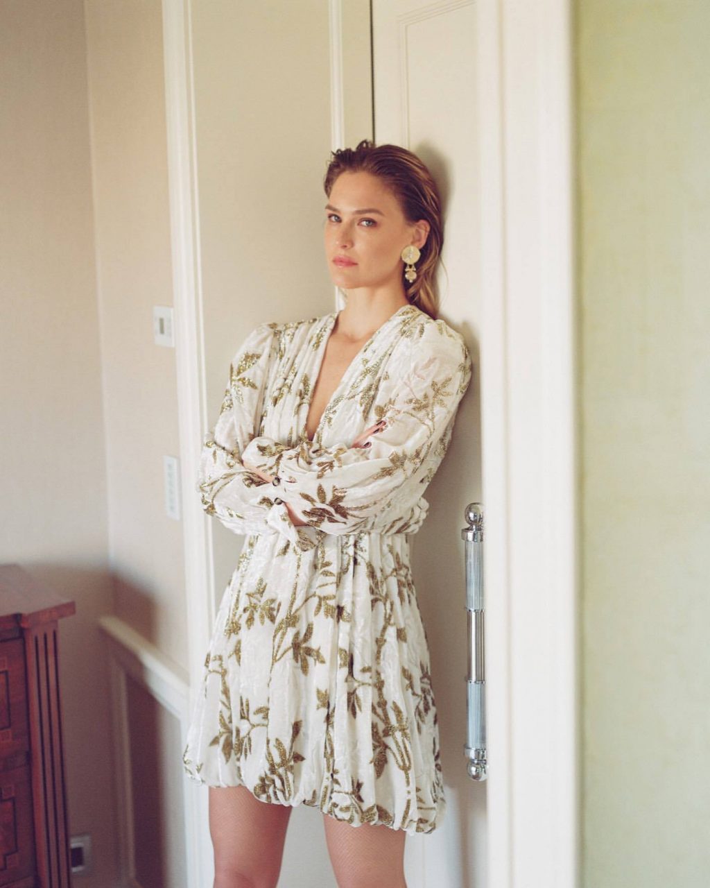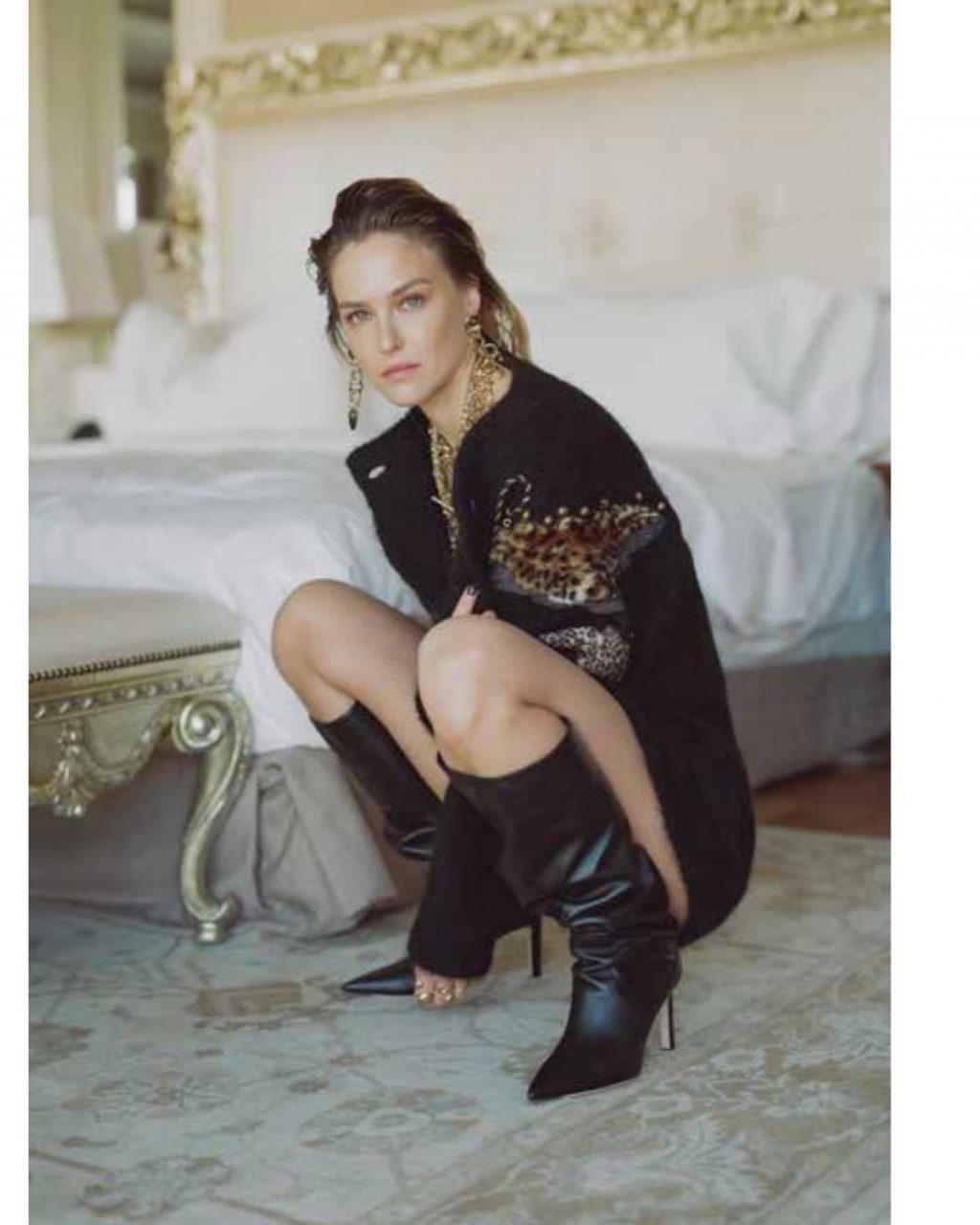 La top model israeliana Bar Refaeli mostra le sue sexy gambe snelle posando in hotel in un servizio fotografico di Dudi Hasson per la collezione di abbigliamento Dodo Bar Or (2019).