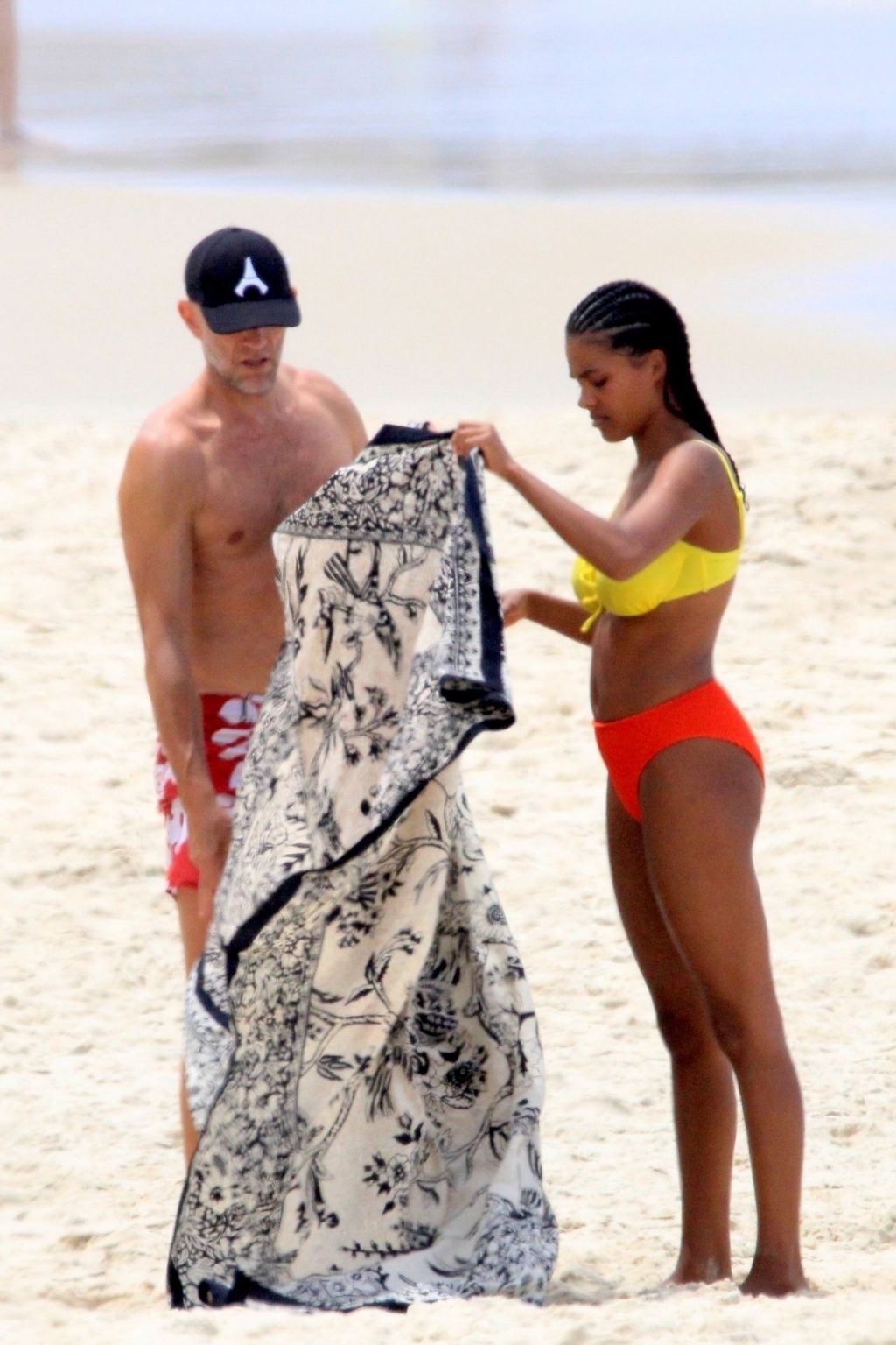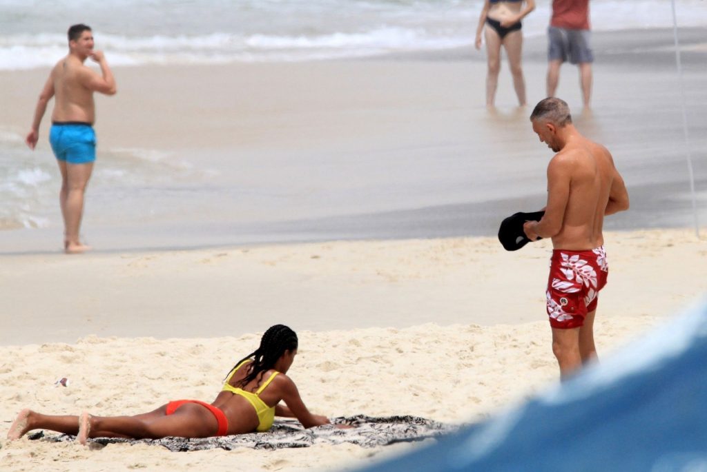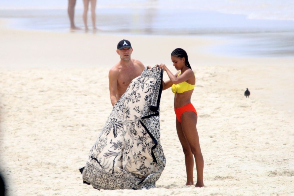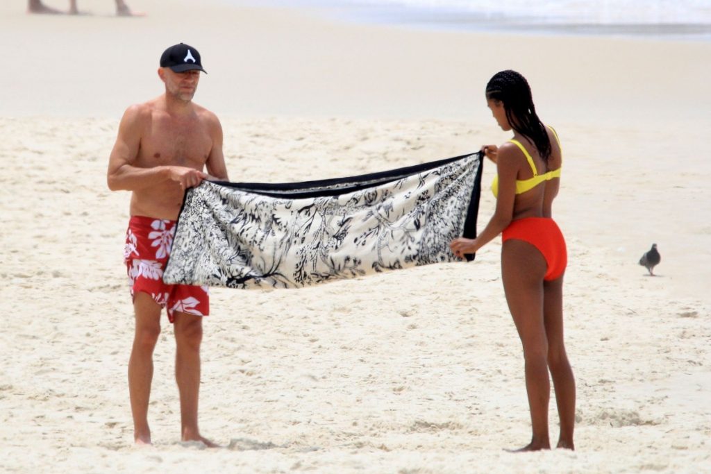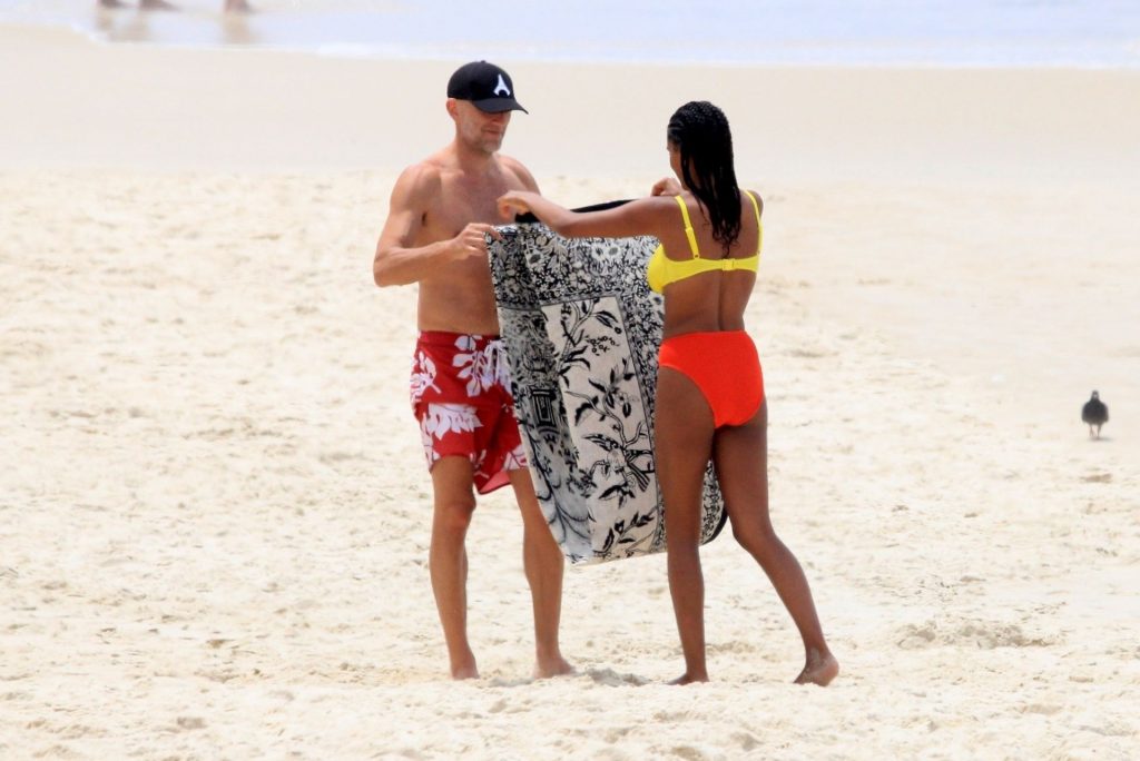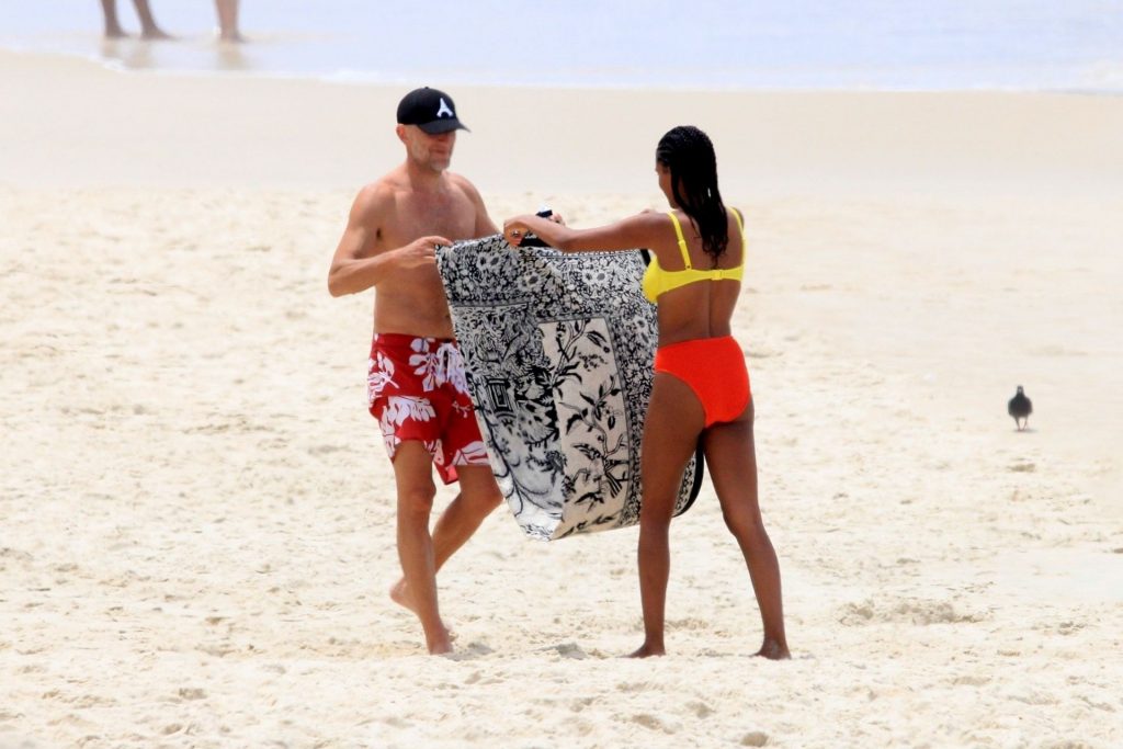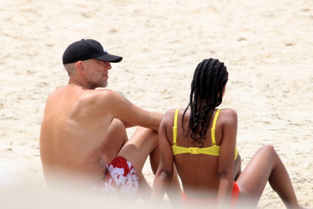 L’attore francese Vincent Cassel e sua moglie Tina Kunakey si godono la compagnia l’uno dell’altra sotto il sole di Rio de Janeiro, 02/01/2020. Tina, indossando un top bikini giallo, fa un tuffo nell’acqua prima di tornare sulla sabbia per sdraiarsi con suo marito Vincent.