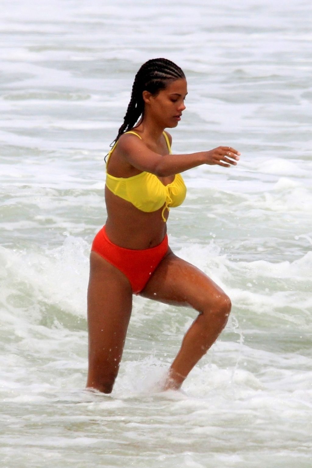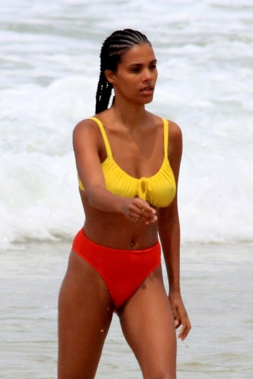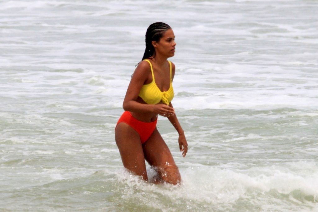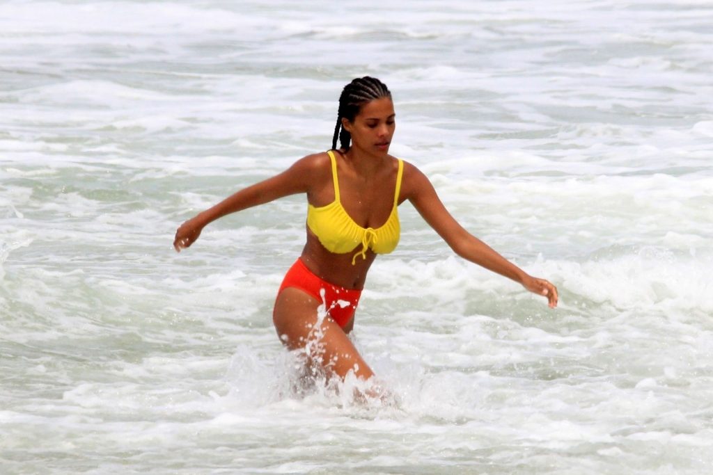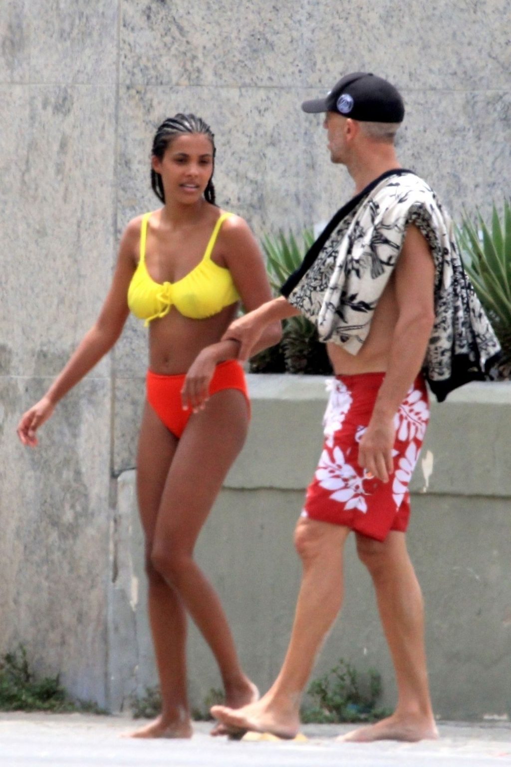 L’attore francese Vincent Cassel e sua moglie Tina Kunakey si godono la compagnia l’uno dell’altra sotto il sole di Rio de Janeiro, 02/01/2020. Tina, indossando un top bikini giallo, fa un tuffo nell’acqua prima di tornare sulla sabbia per sdraiarsi con suo marito Vincent.