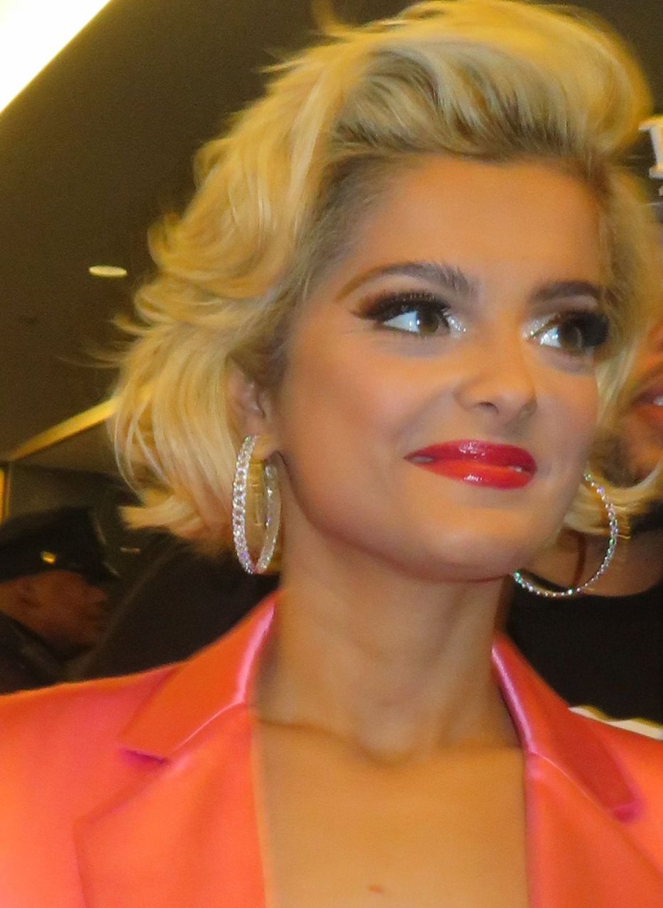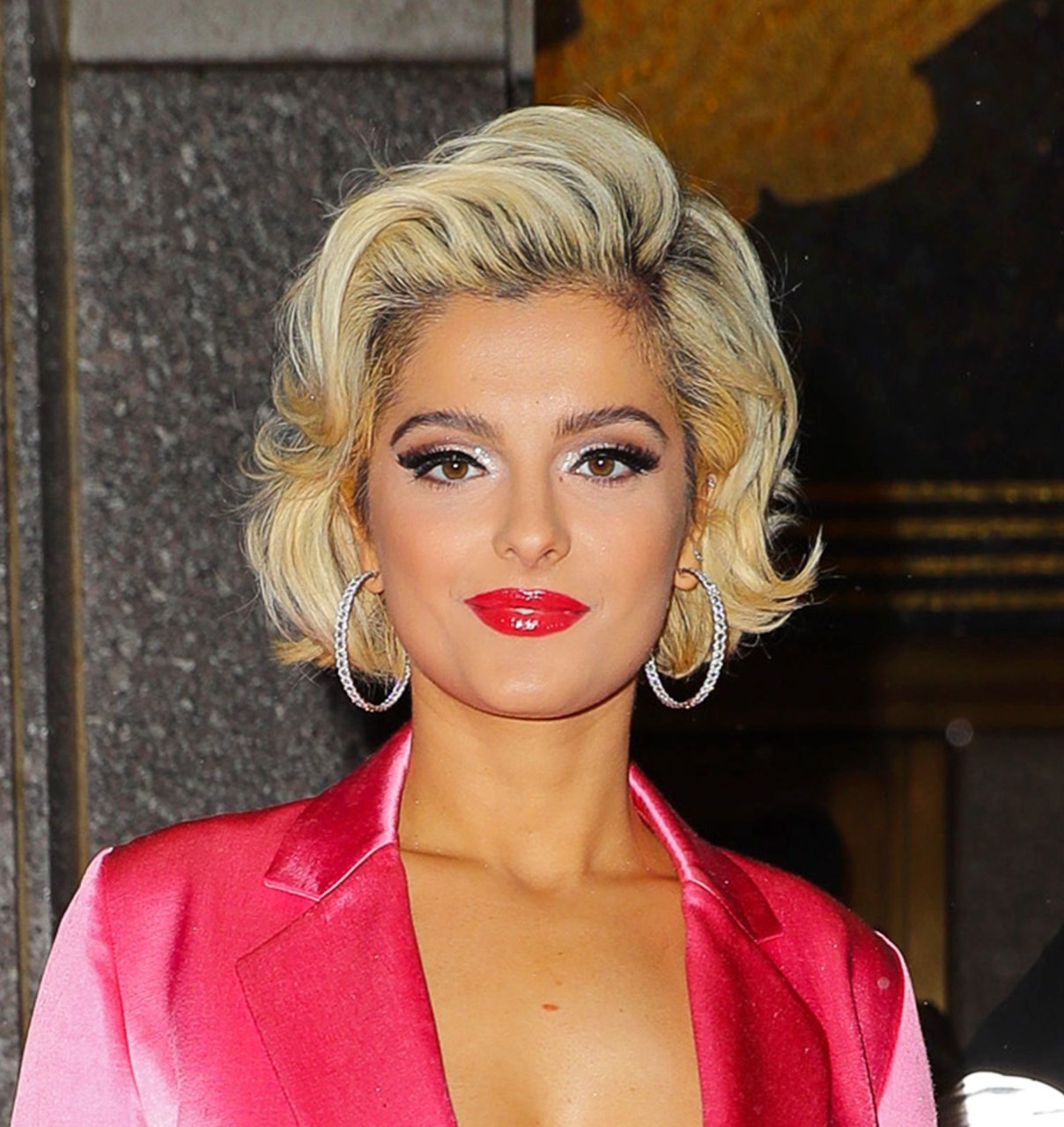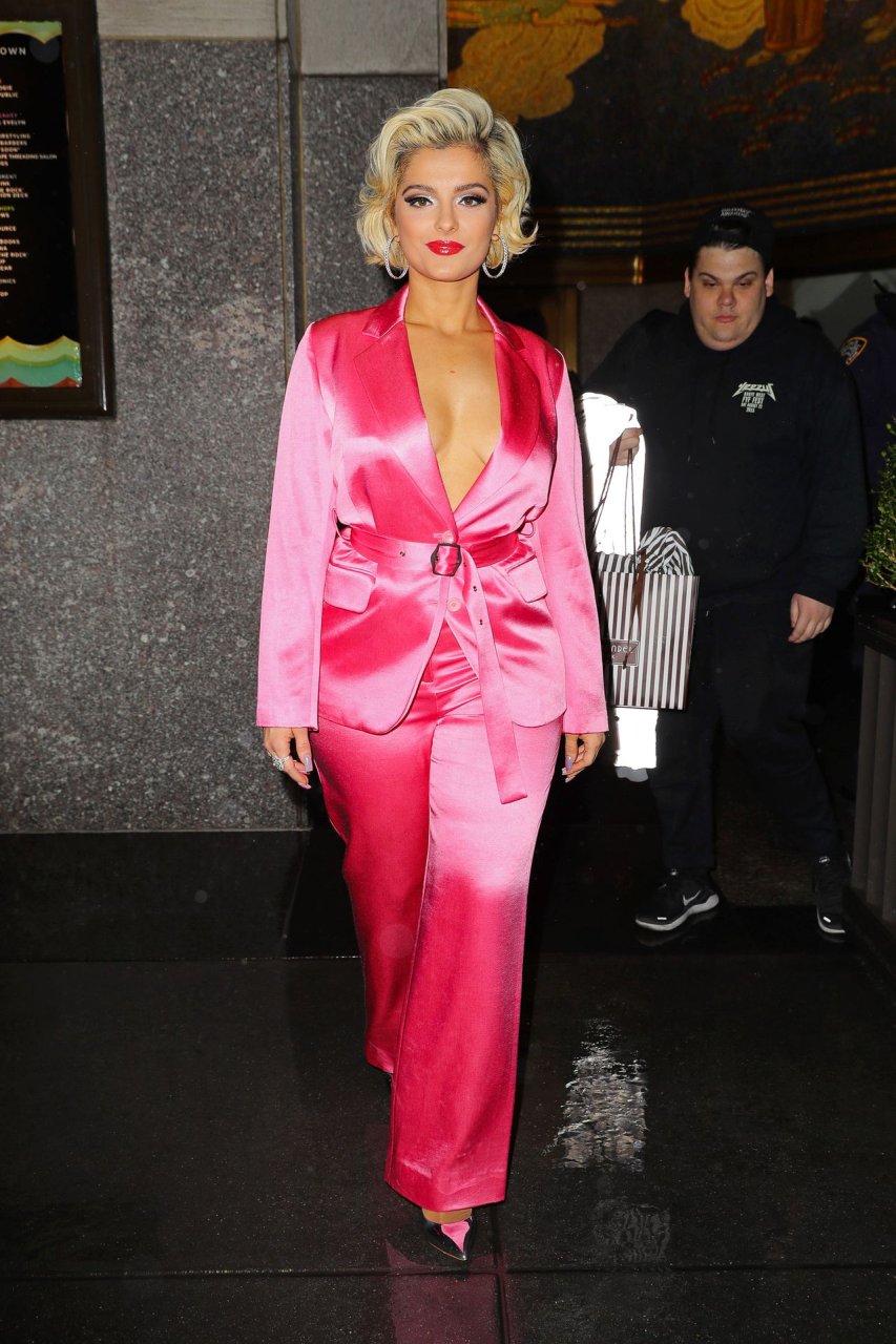 Singer Bebe Rexha va senza reggiseno in un completo di raso fucsia mentre lascia The Tonight Show Starring Jimmy Fallon a New York City, 20/12/2018.
