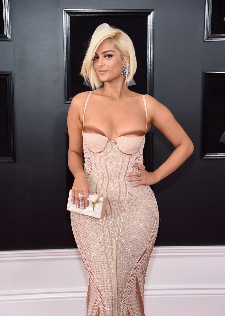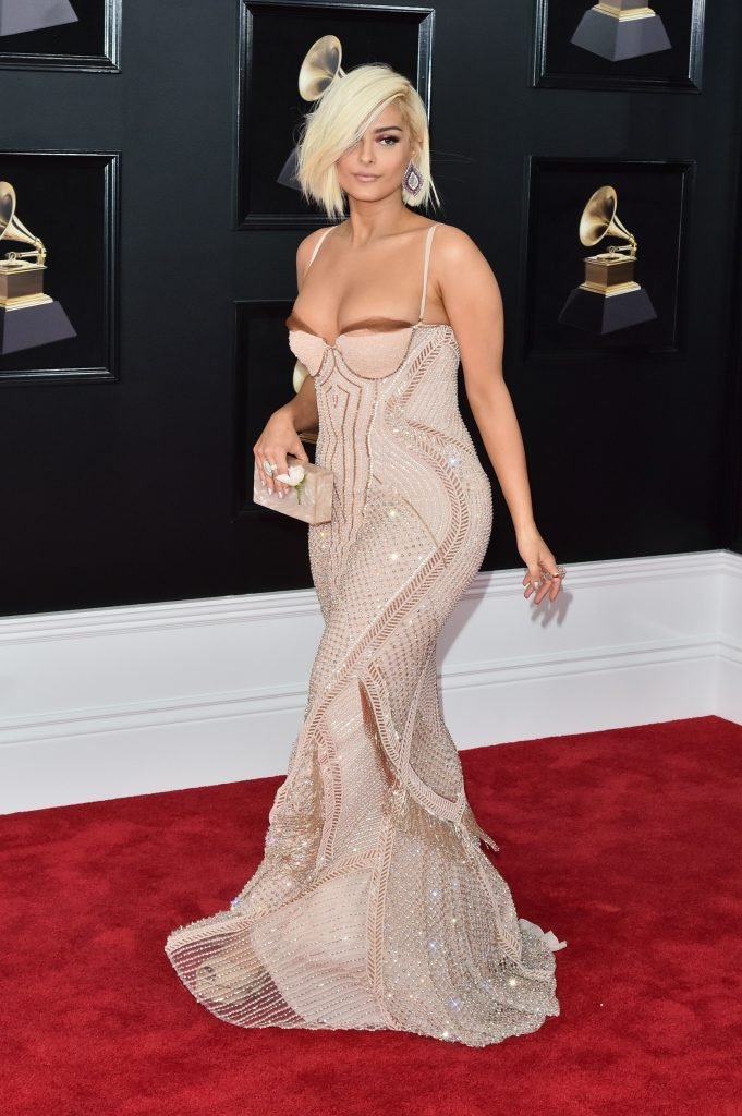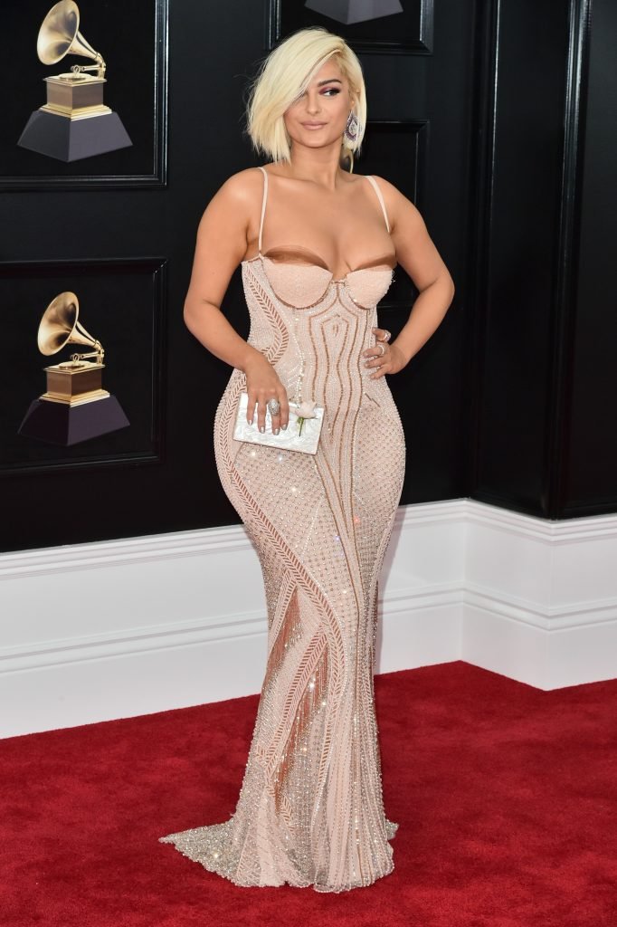 Cantante Bebe Rexha arriva alla 60ª edizione annuale dei Grammy Awards a New York, 28/01/2018.