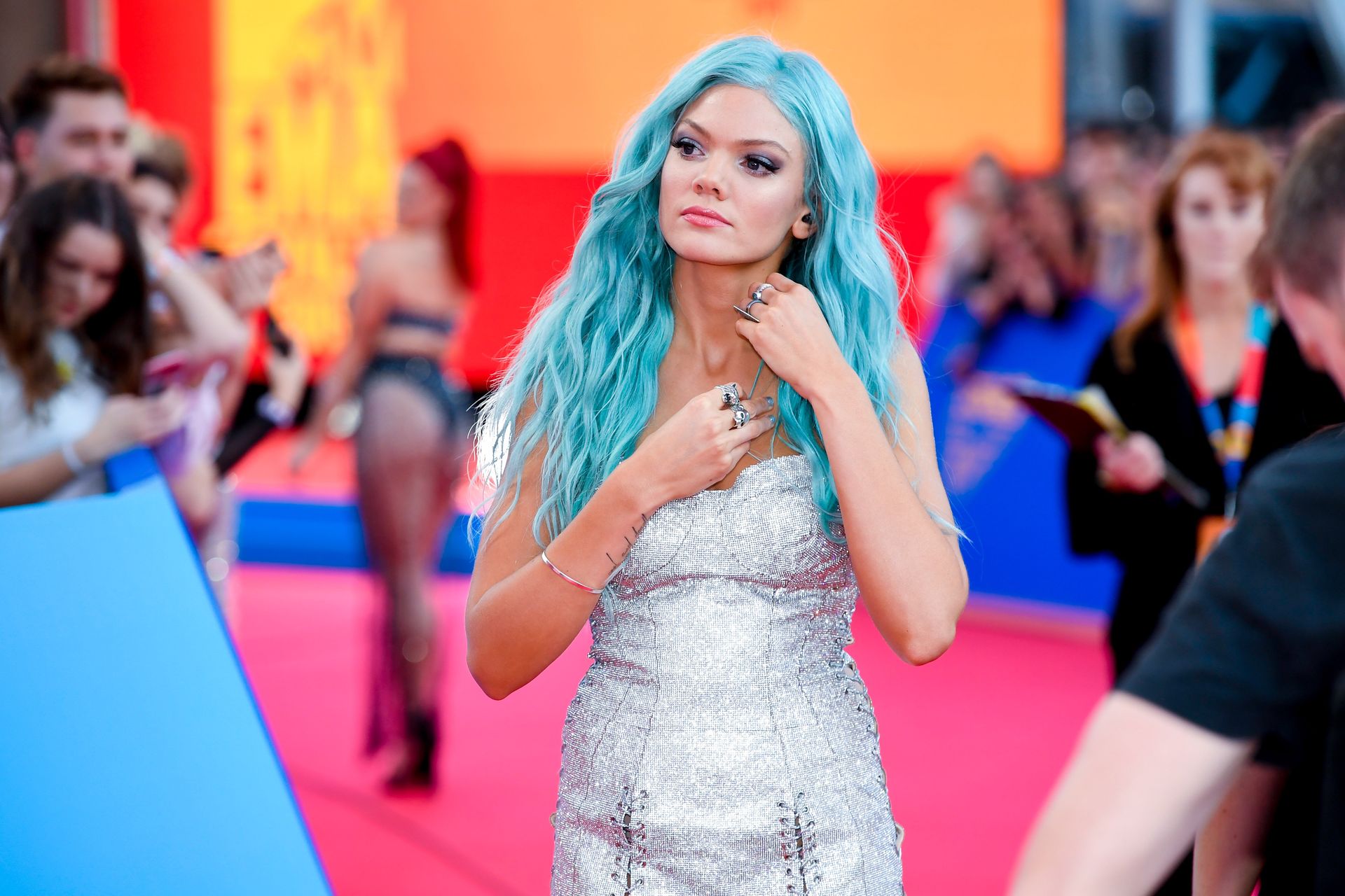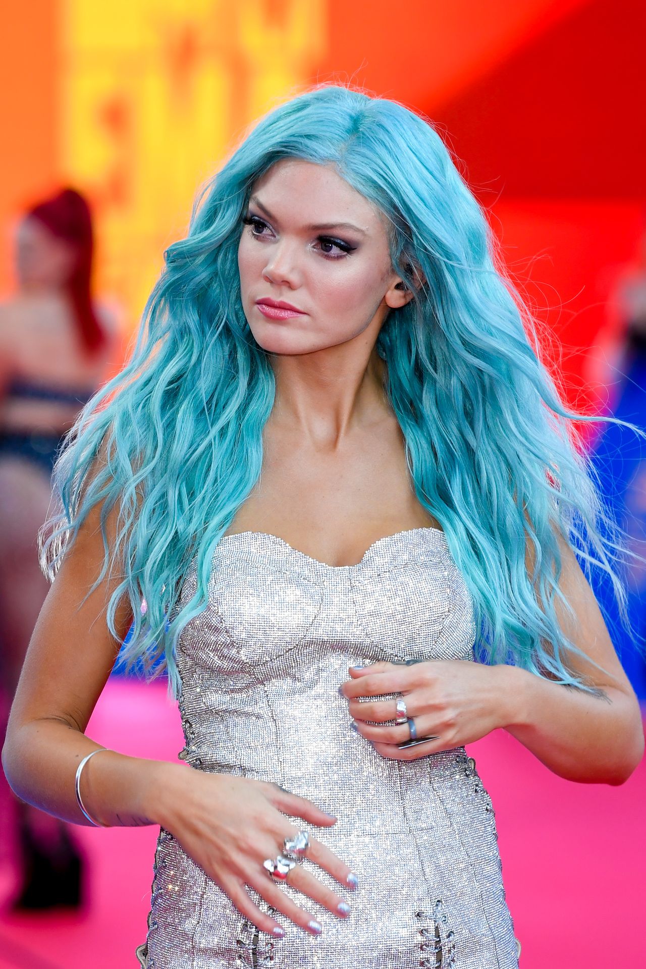 Da chi ha preso in prestito quel vestito? Non le sta bene. Povera ragazza sembra spazzatura da roulotte, con i capelli blu e i tatuaggi.