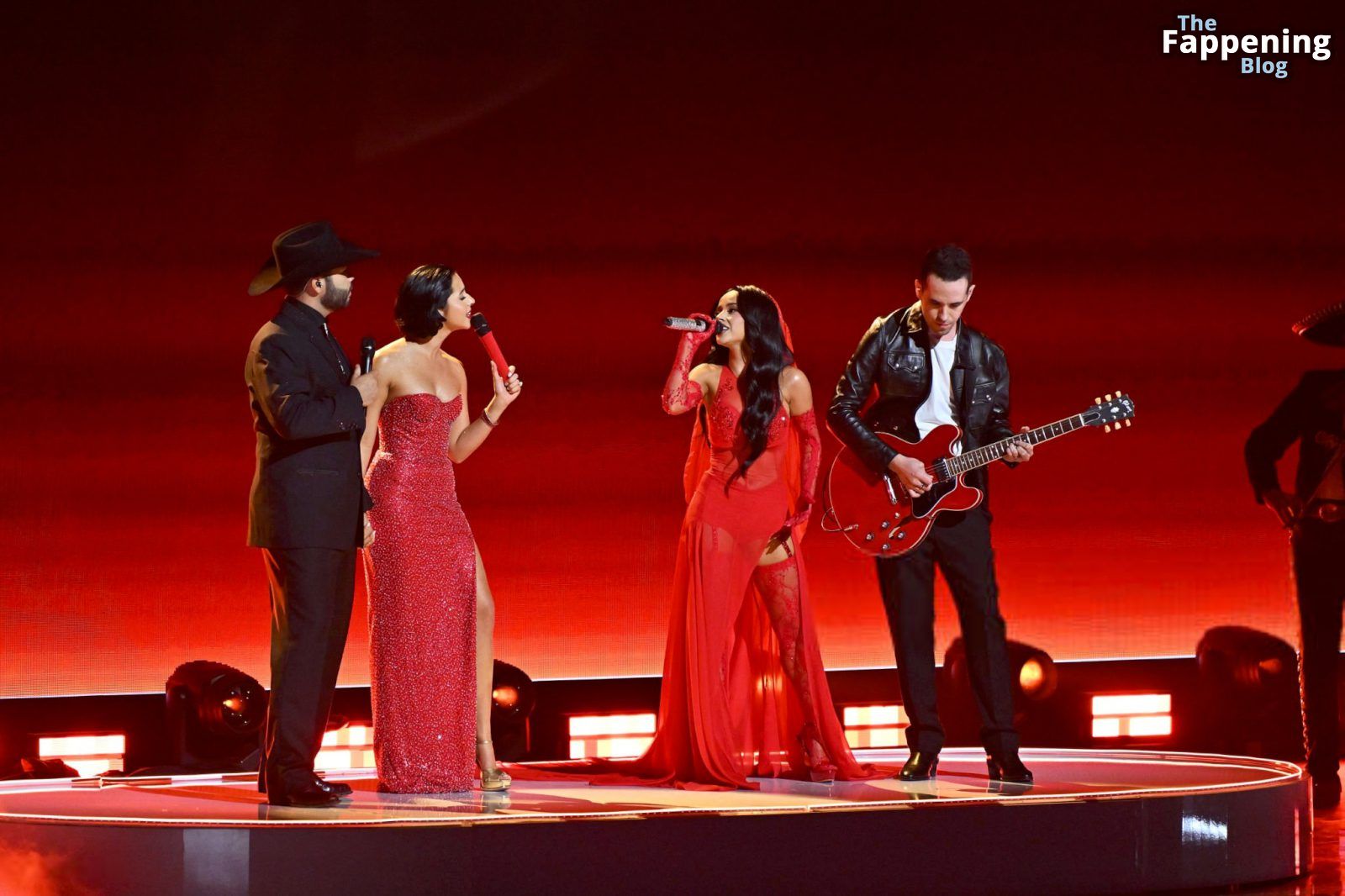 Becky G sfila sul red carpet con un abito trasparente e sensuale dal profondo scollo in occasione della 25ª edizione dei Latin Grammy Awards 2024 a Miami.