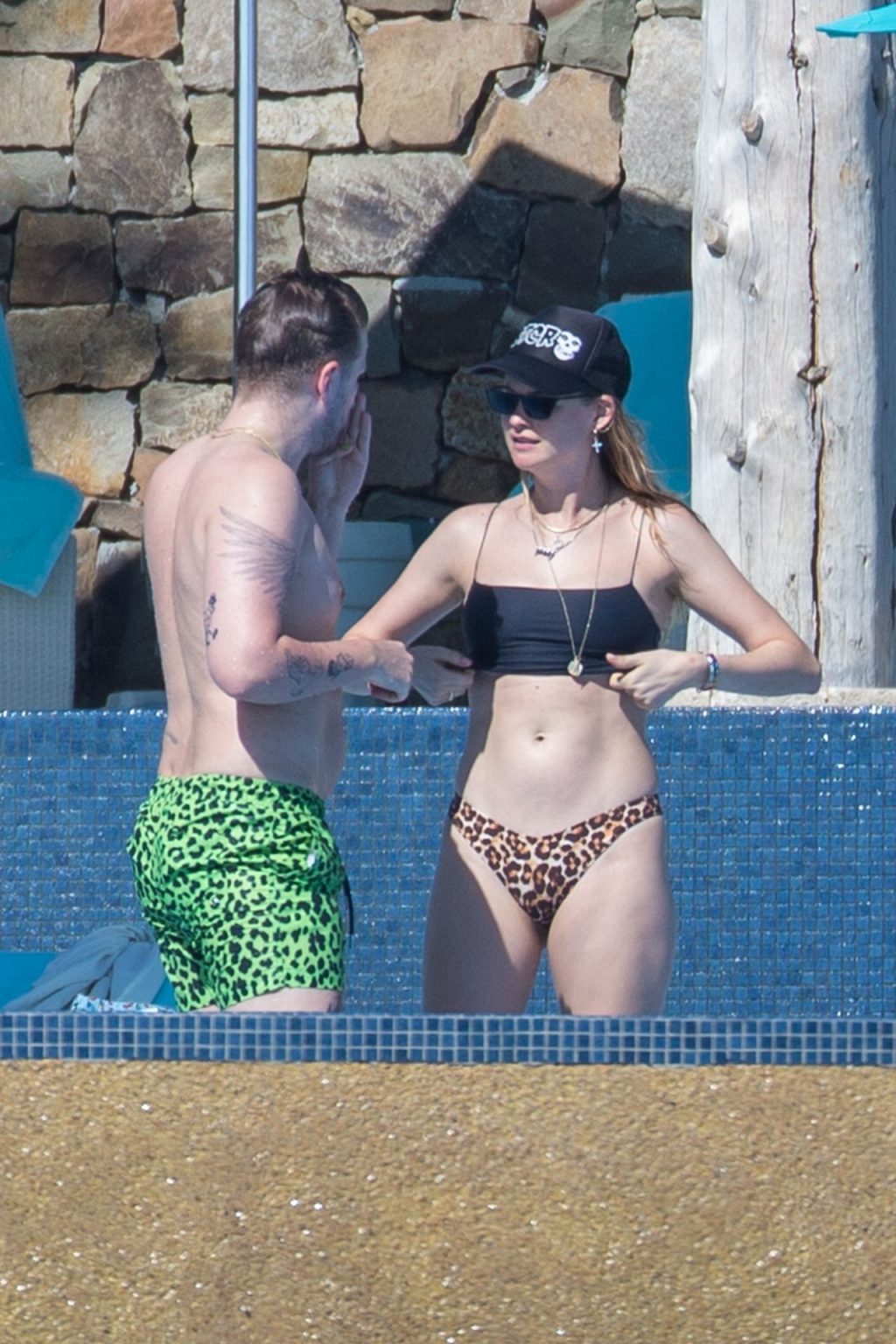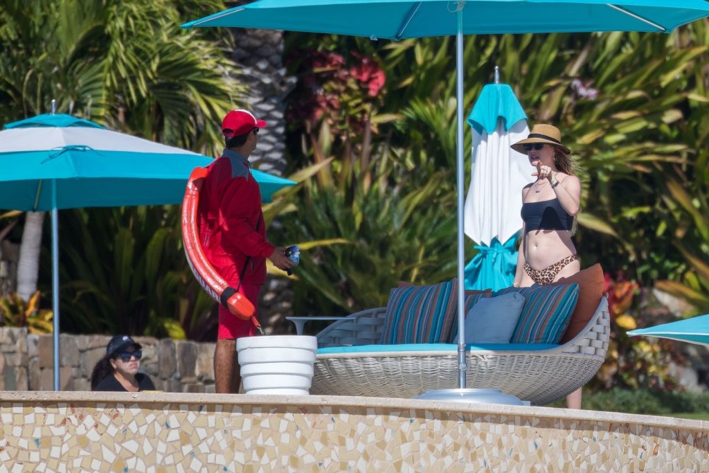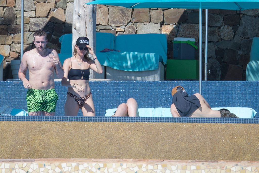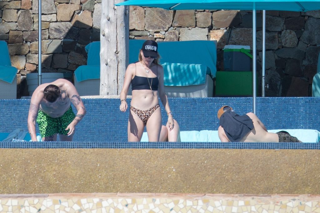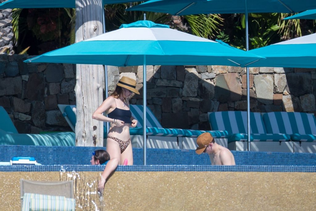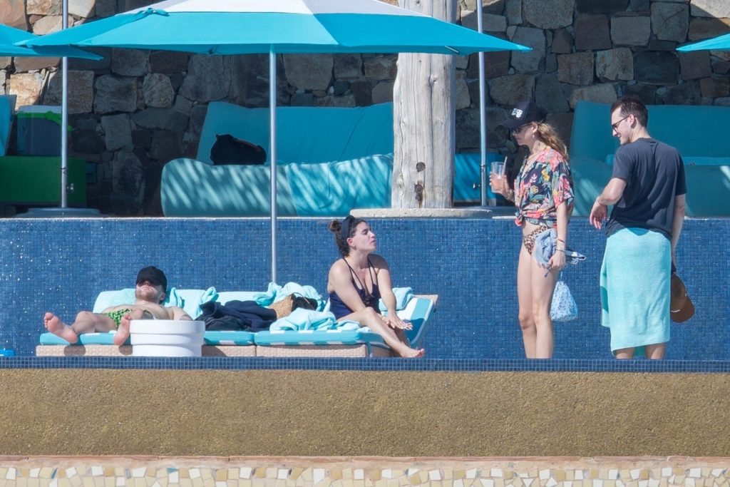 Behati Prinsloo si gode il sole con gli amici a Cabo, 01/12/2020. La modella di Victoria’s Secret ha mostrato la sua figura snella con un top bikini nero e un perizoma leopardato mentre si rilassava nel suo resort con gli amici, sorseggiando bevande fredde e facendo un tuffo in piscina.