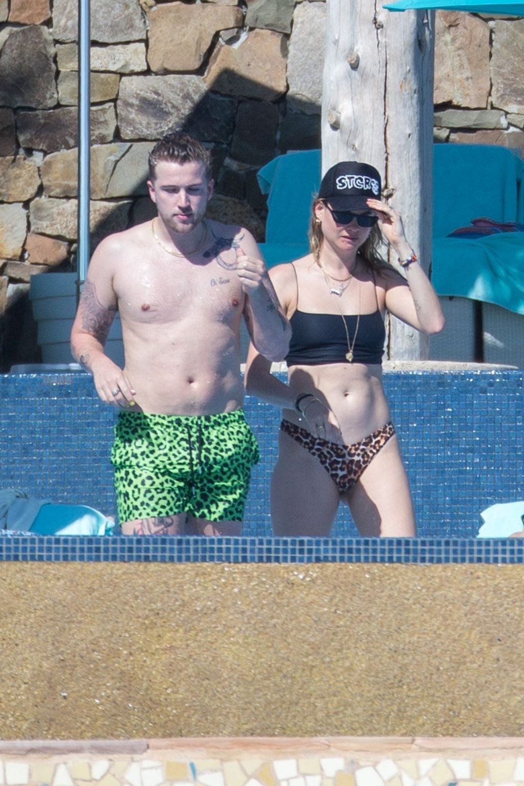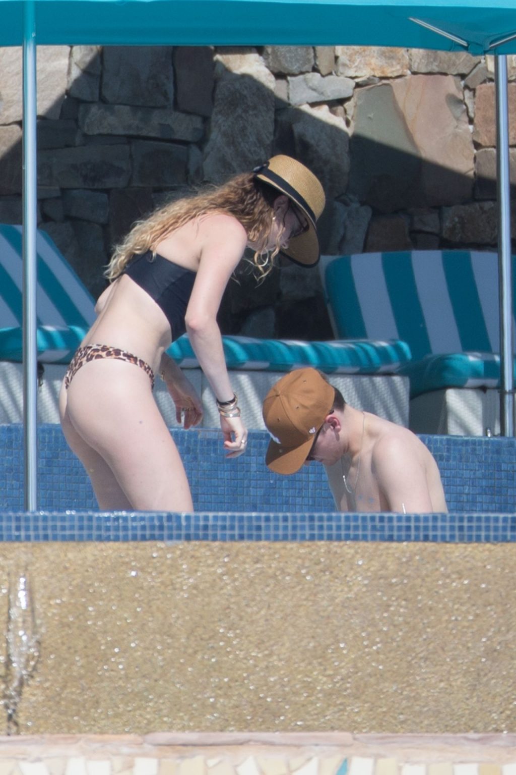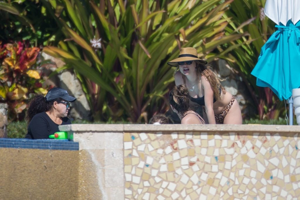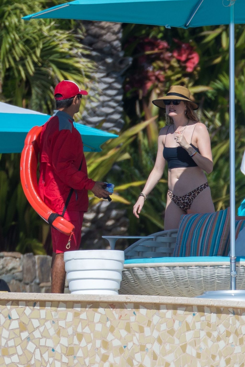 Behati Prinsloo si gode il sole con gli amici a Cabo, 01/12/2020. La modella di Victoria’s Secret ha mostrato la sua figura snella con un top bikini nero e un perizoma leopardato mentre si rilassava nel suo resort con gli amici, sorseggiando bevande fredde e facendo un tuffo in piscina.