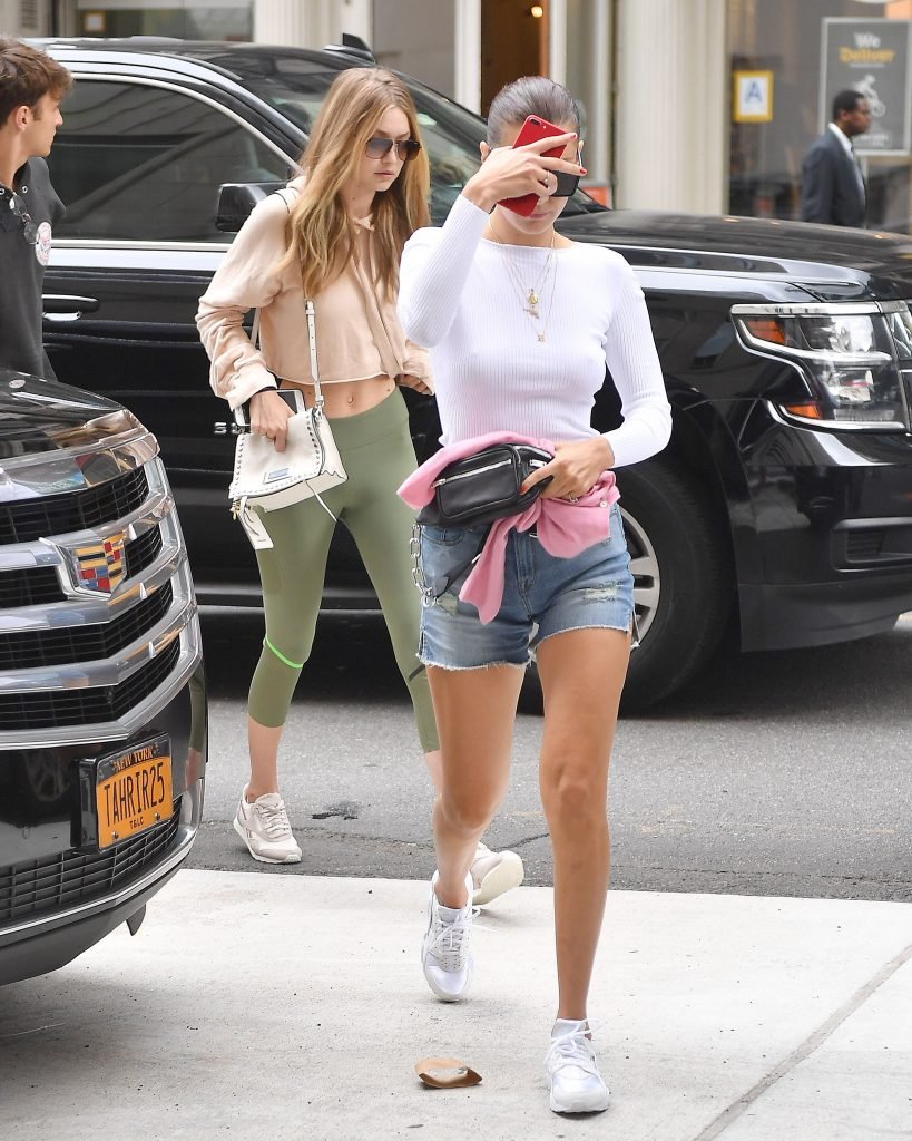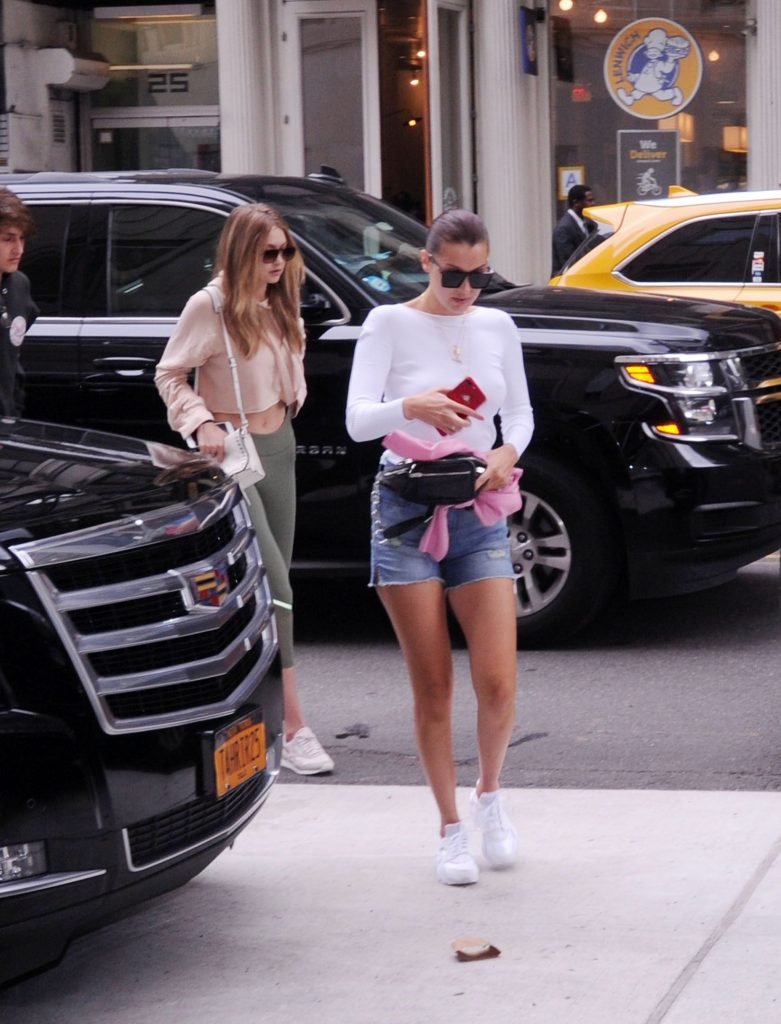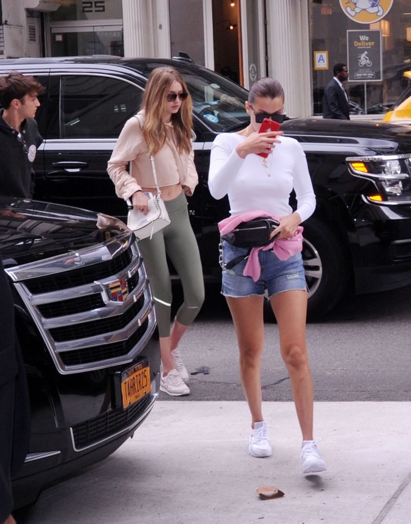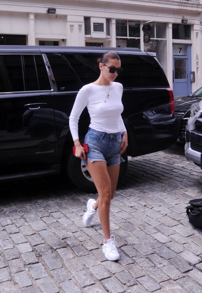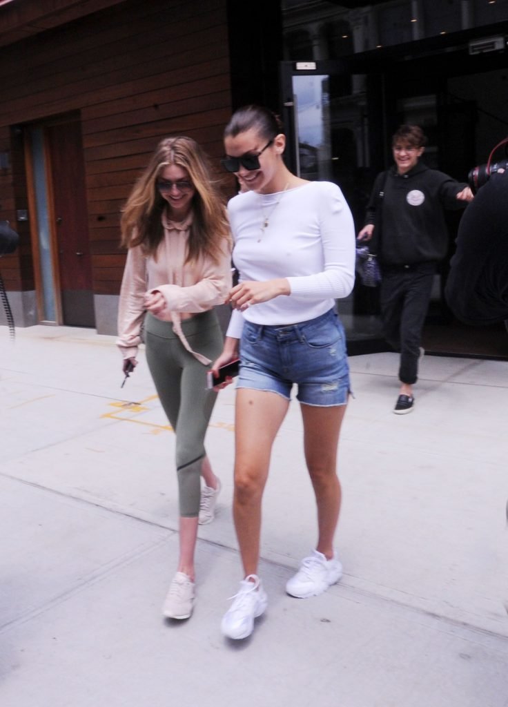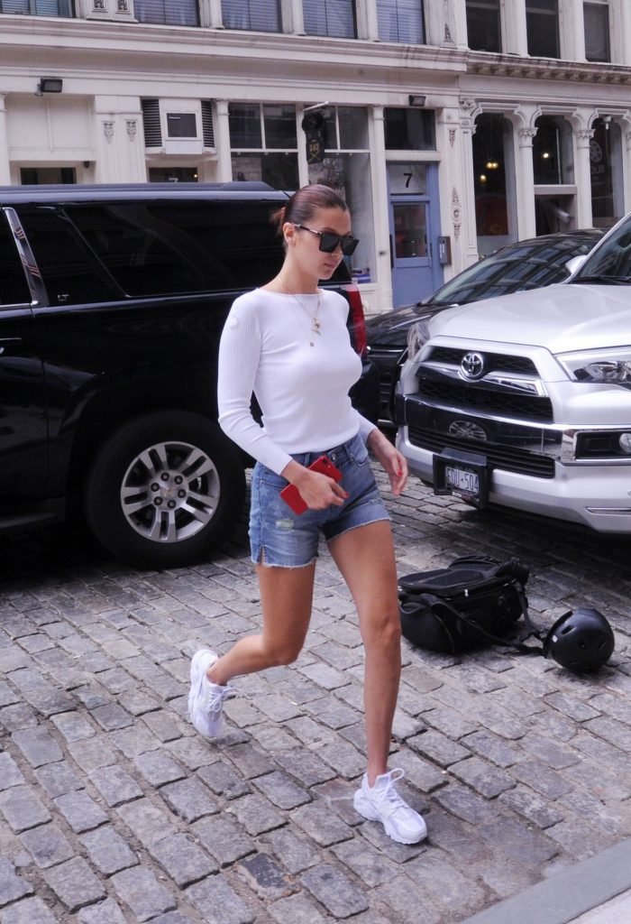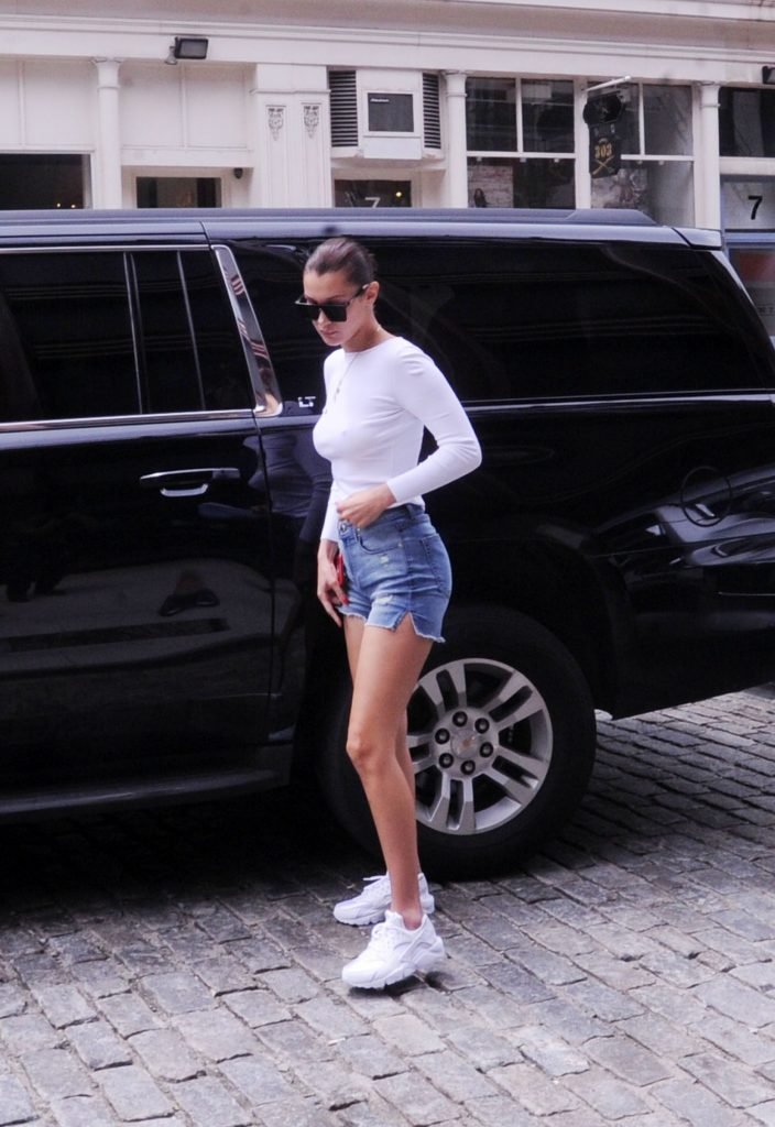 Gigi, Anwar e Bella Hadid senza reggiseno escono a New York, 27/07/2017. Isabella (Bella) Hadid è una top model e attrice americana. Età: 20.