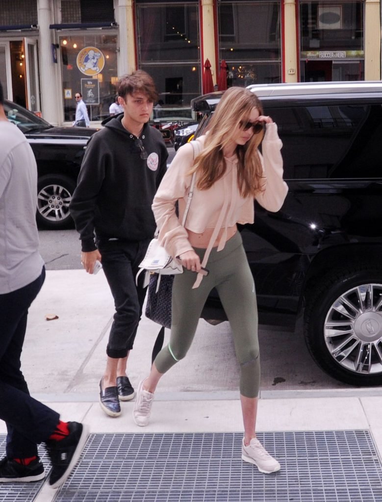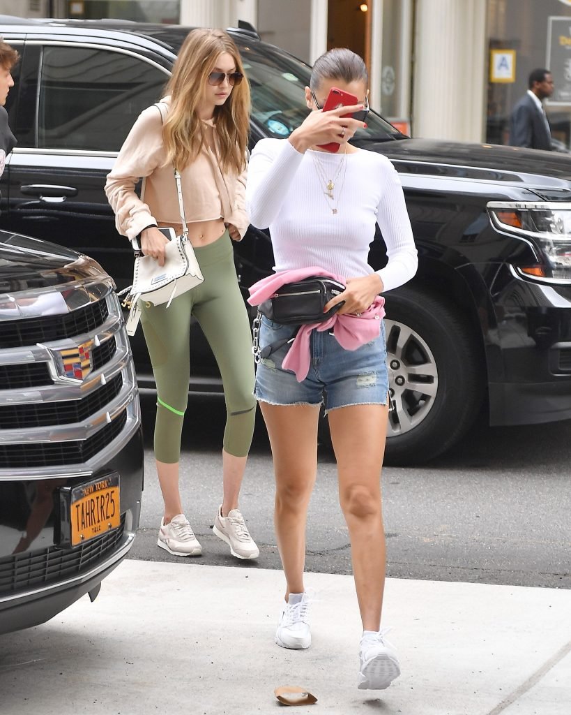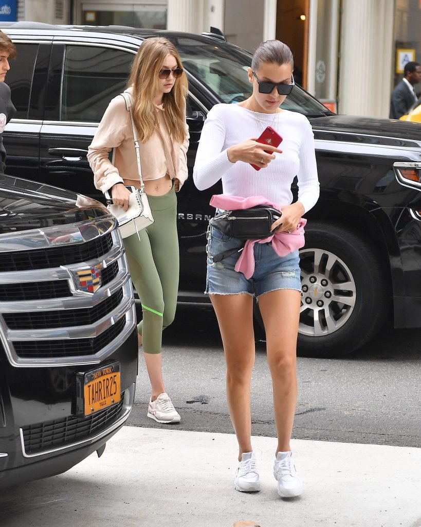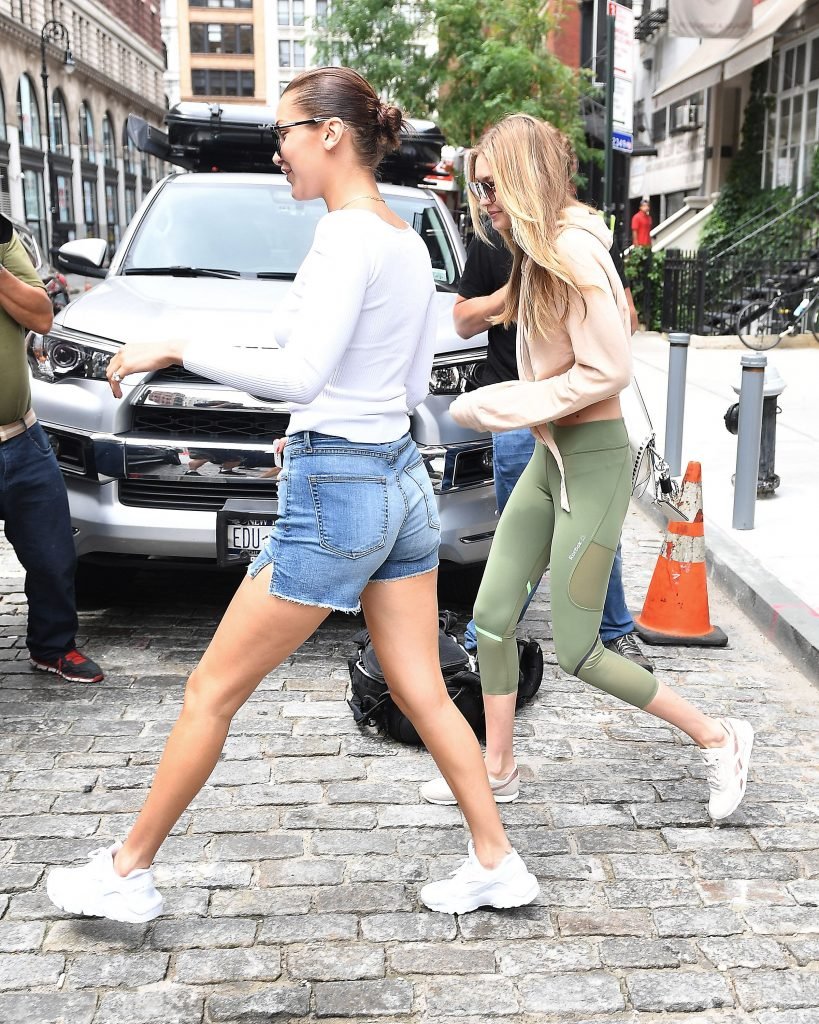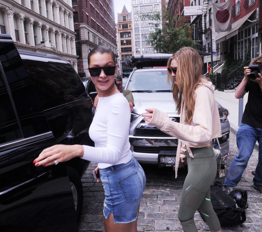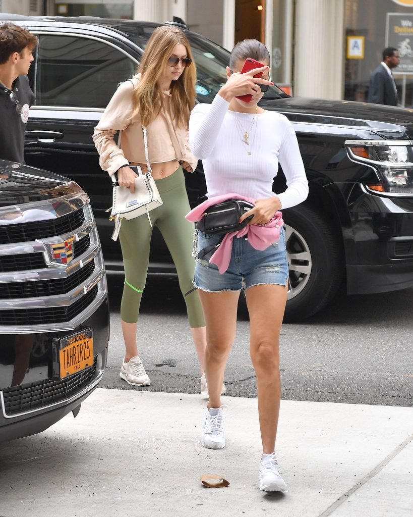 Gigi, Anwar e Bella Hadid senza reggiseno escono a New York, 27/07/2017. Isabella (Bella) Hadid è una top model e attrice americana. Età: 20.
