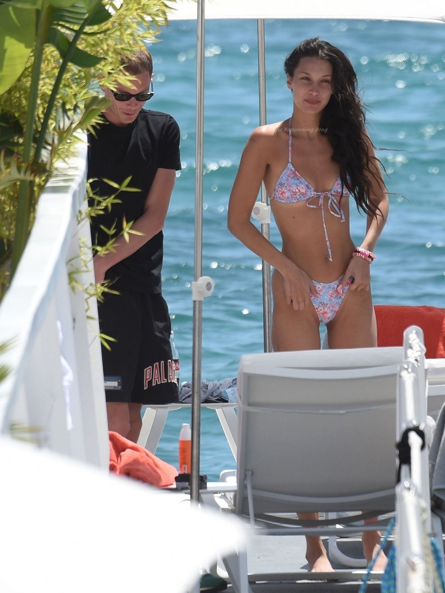 La coppia si spoglia nel caldo torrido mentre Bella mostrava il suo fisico sexy in un bikini succinto con motivo floreale e Marc a torso nudo, indossando i suoi pantaloncini neri.