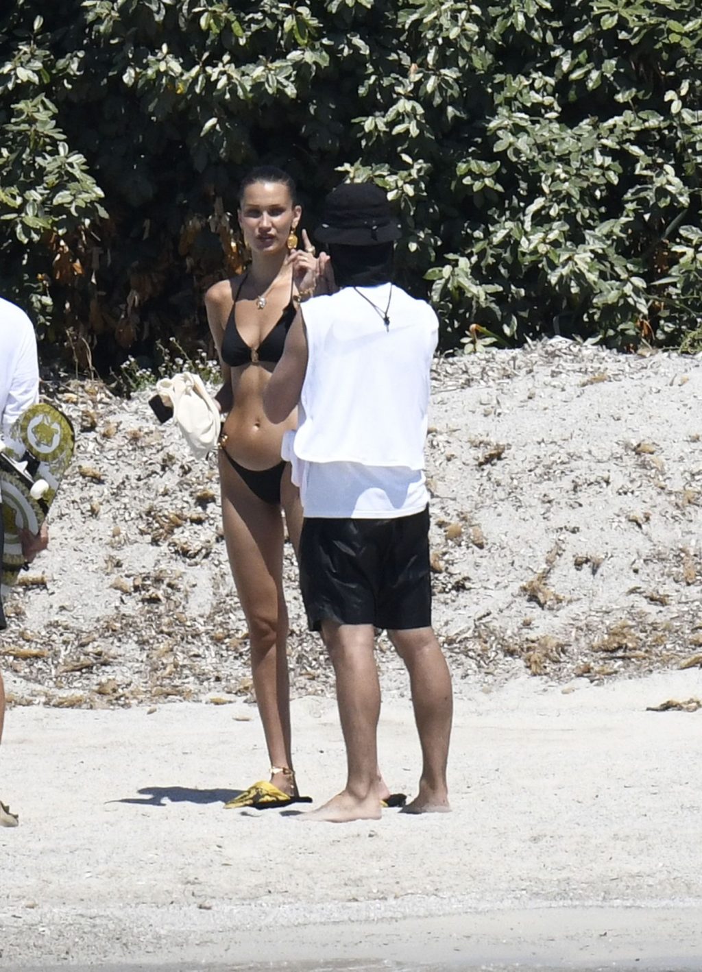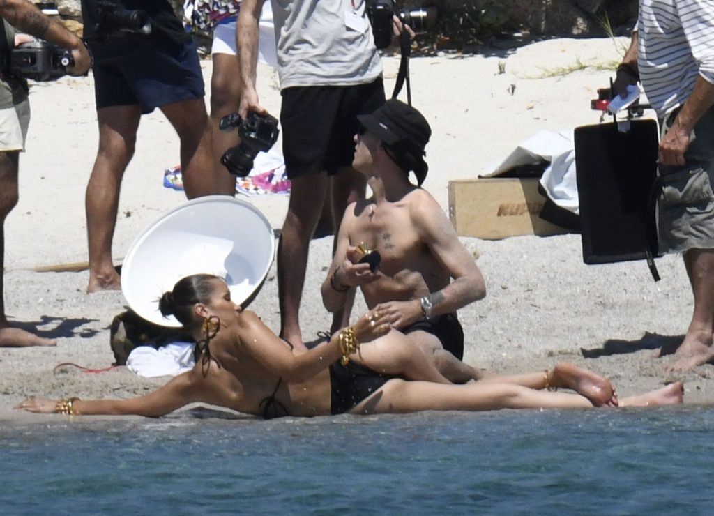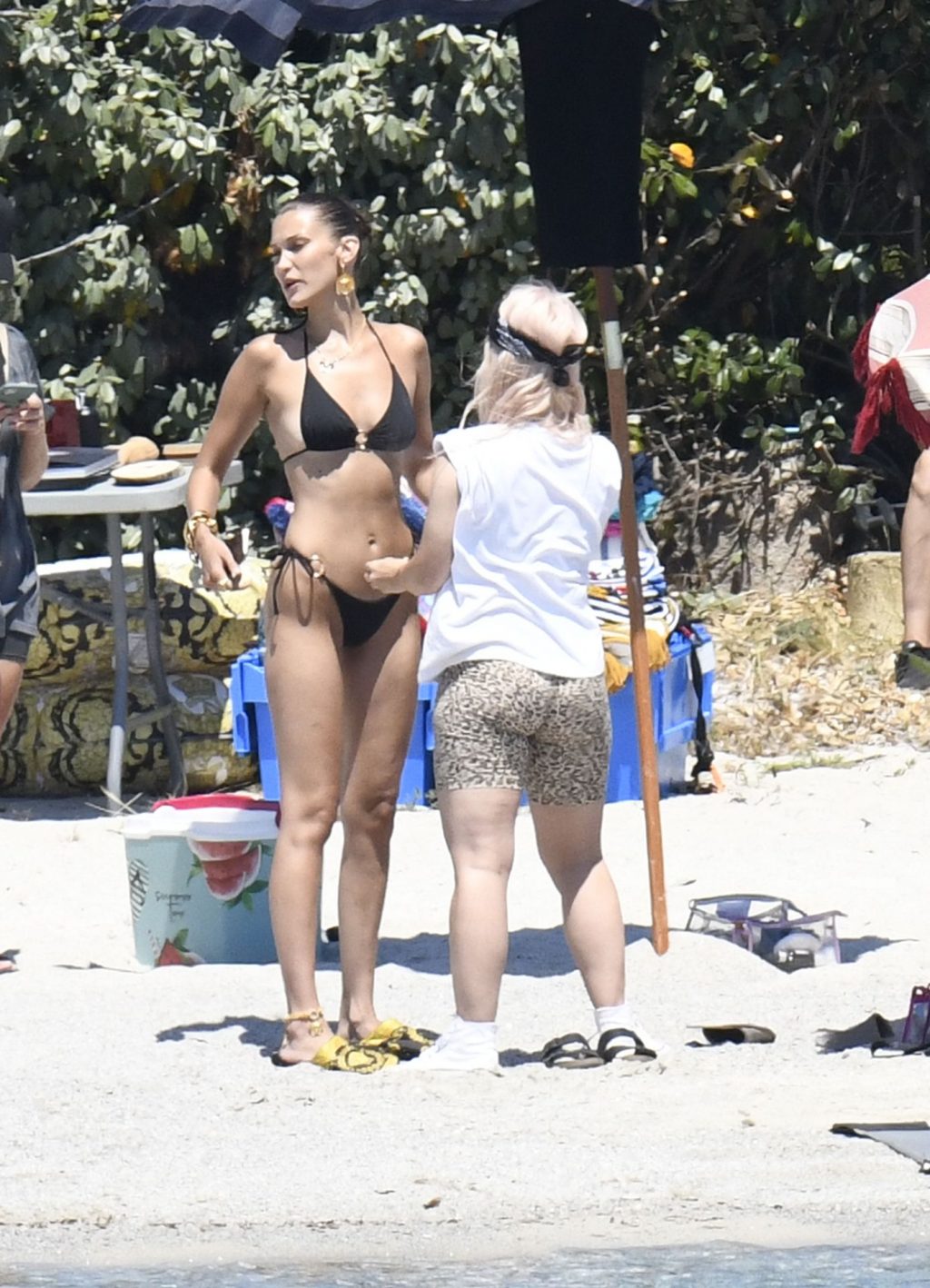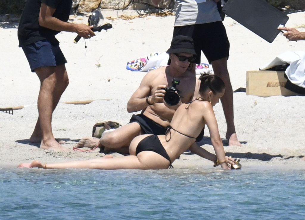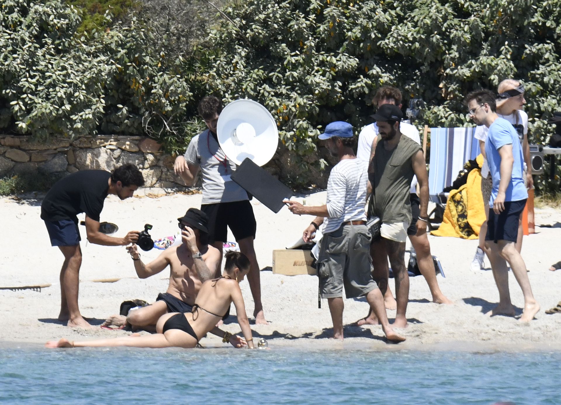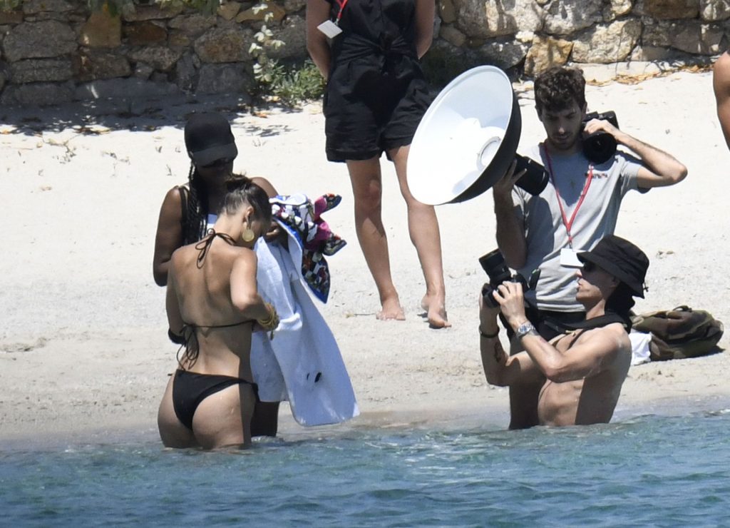 La modella Bella Hadid sfoggia il suo incredibile fisico in un bikini nero durante un servizio fotografico in Corsica, 24/06/2020.