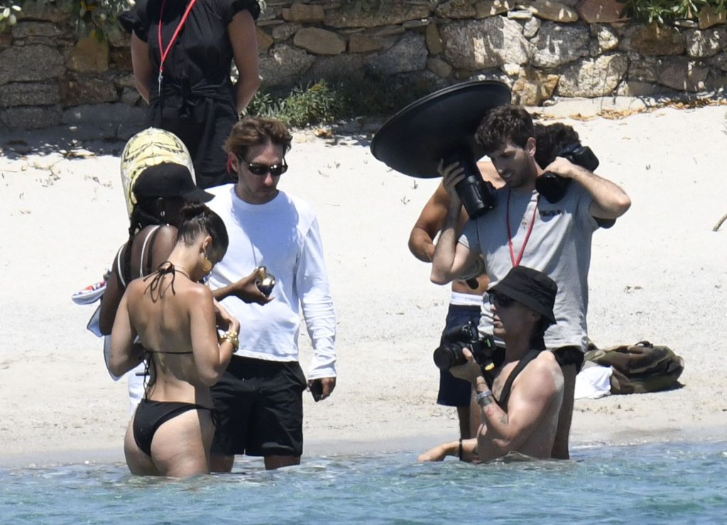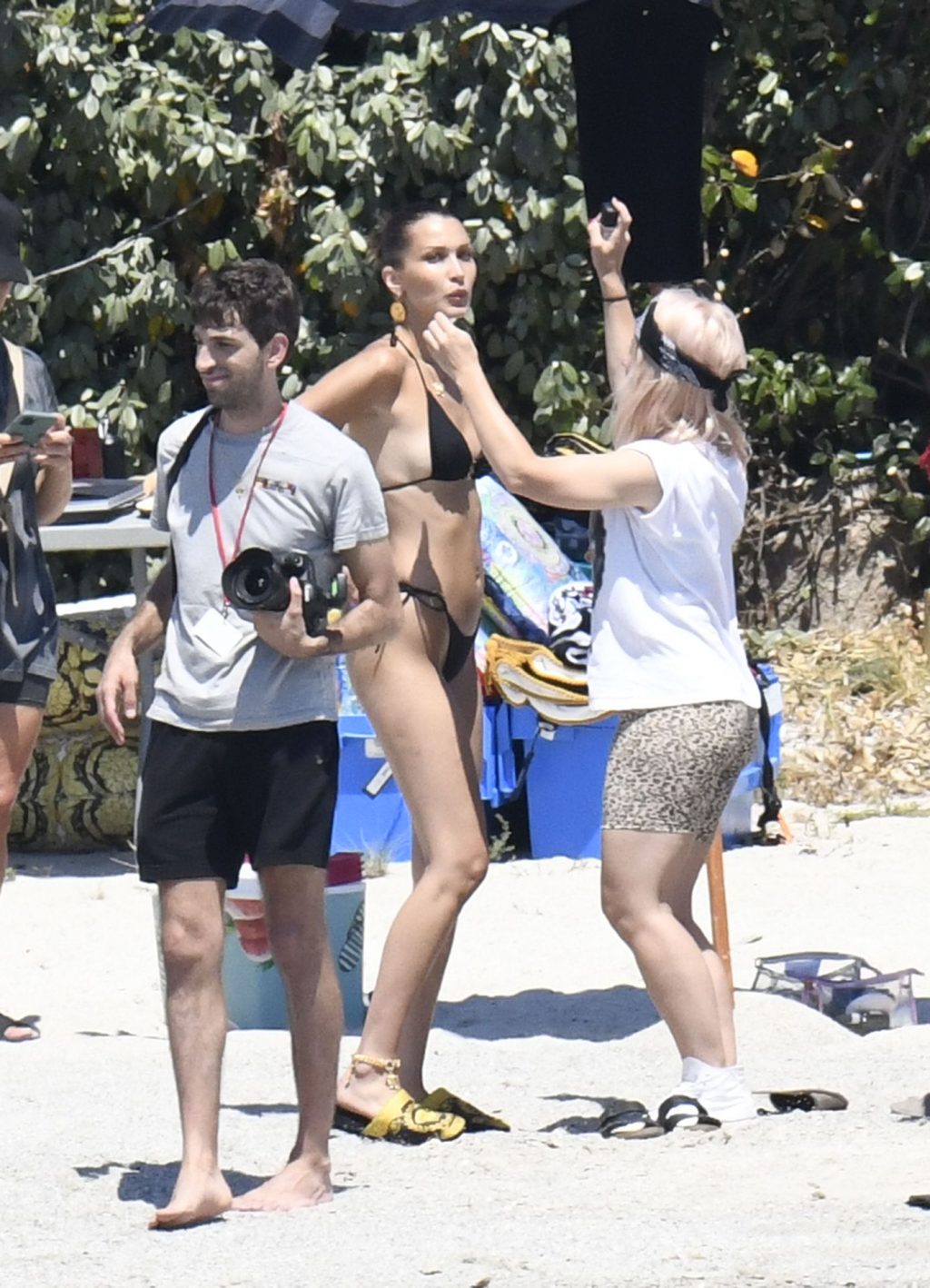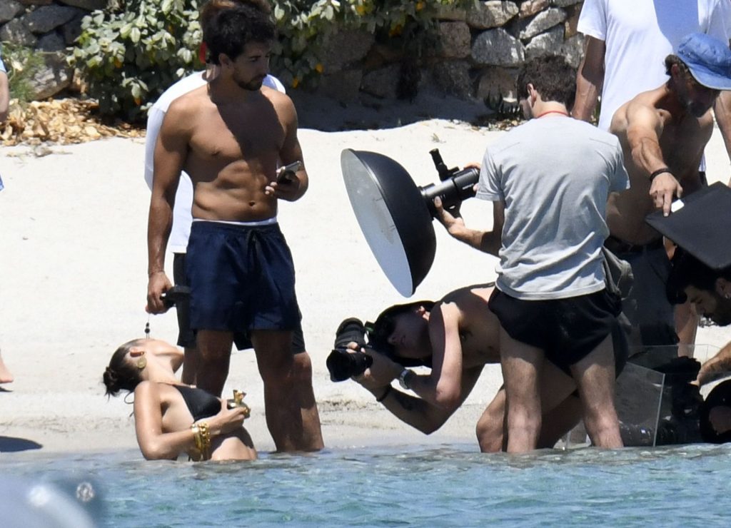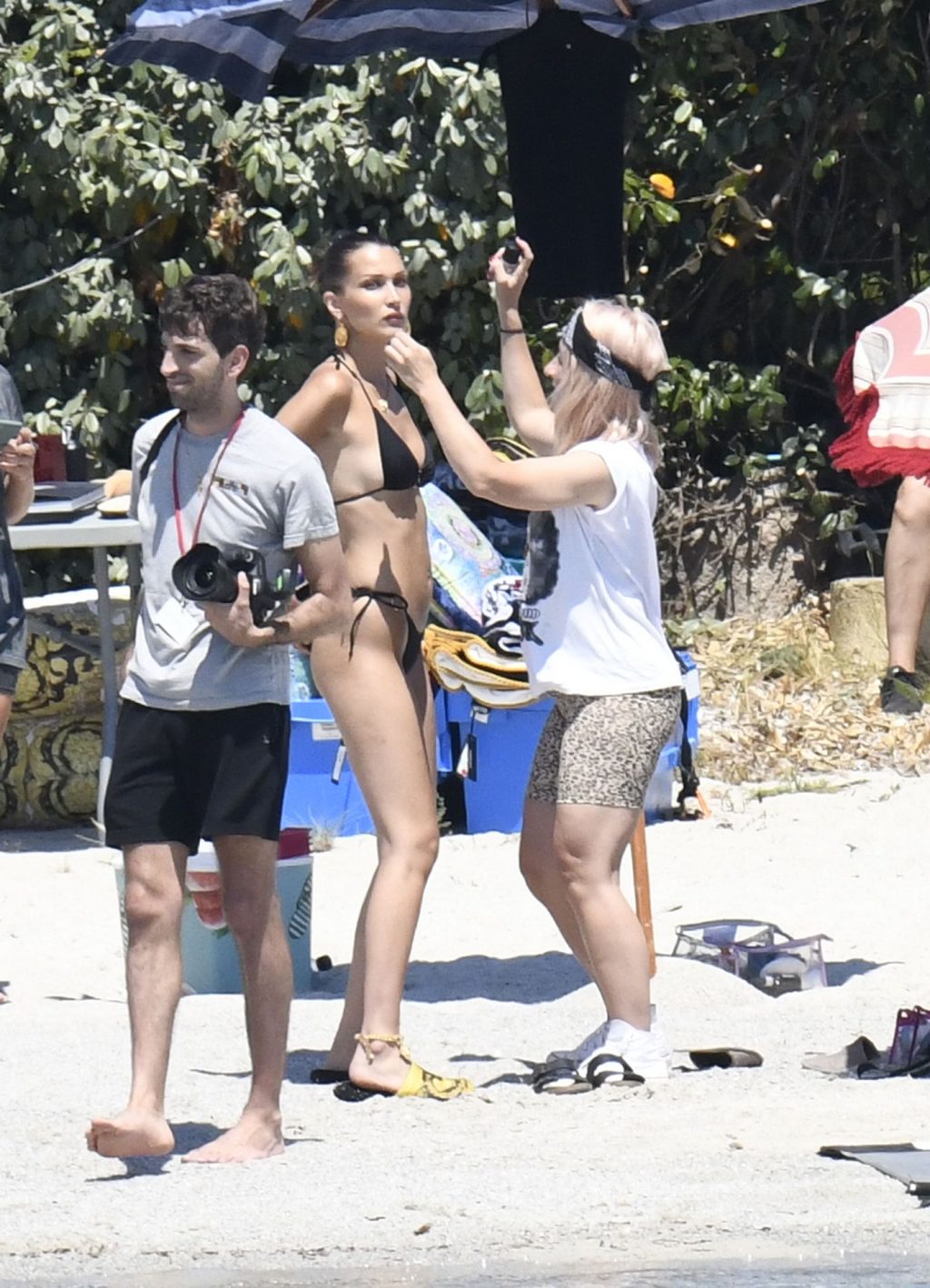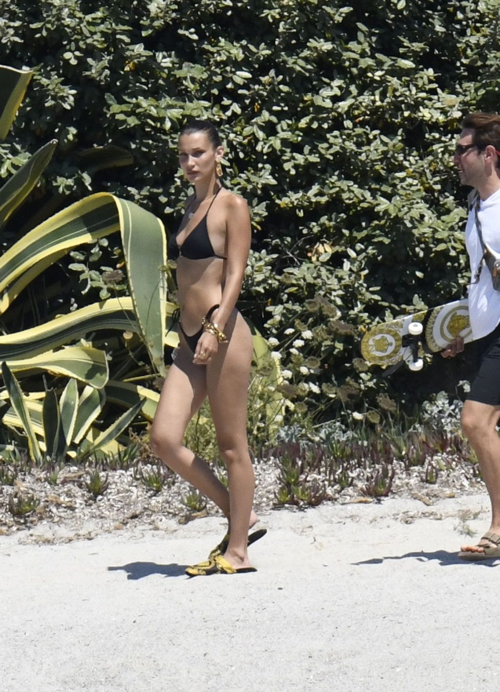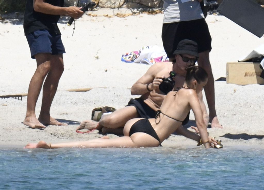 La modella Bella Hadid sfoggia il suo incredibile fisico in un bikini nero durante un servizio fotografico in Corsica, 24/06/2020.