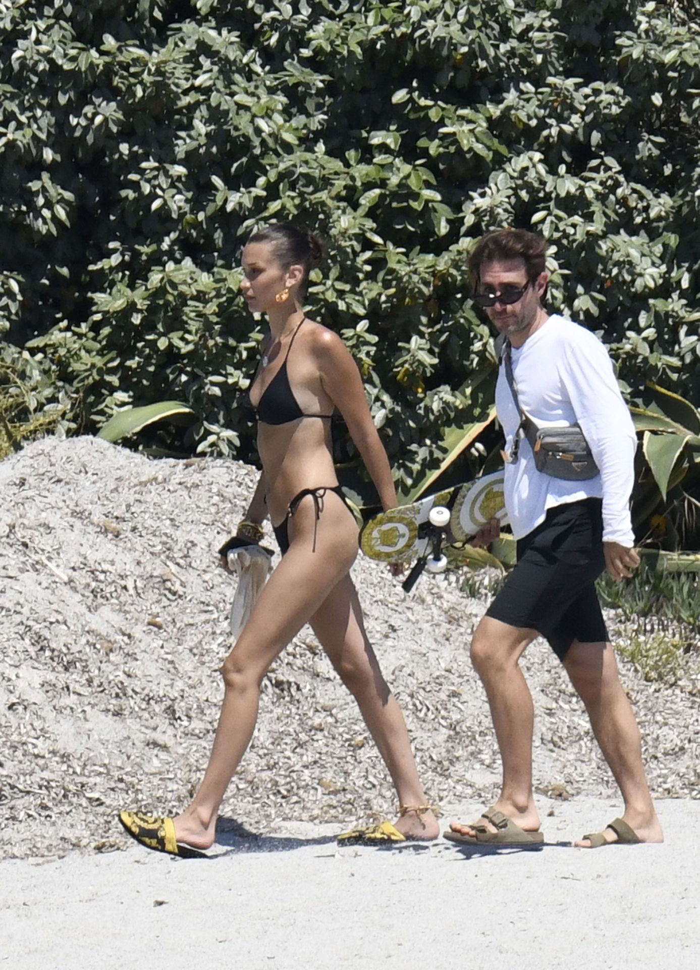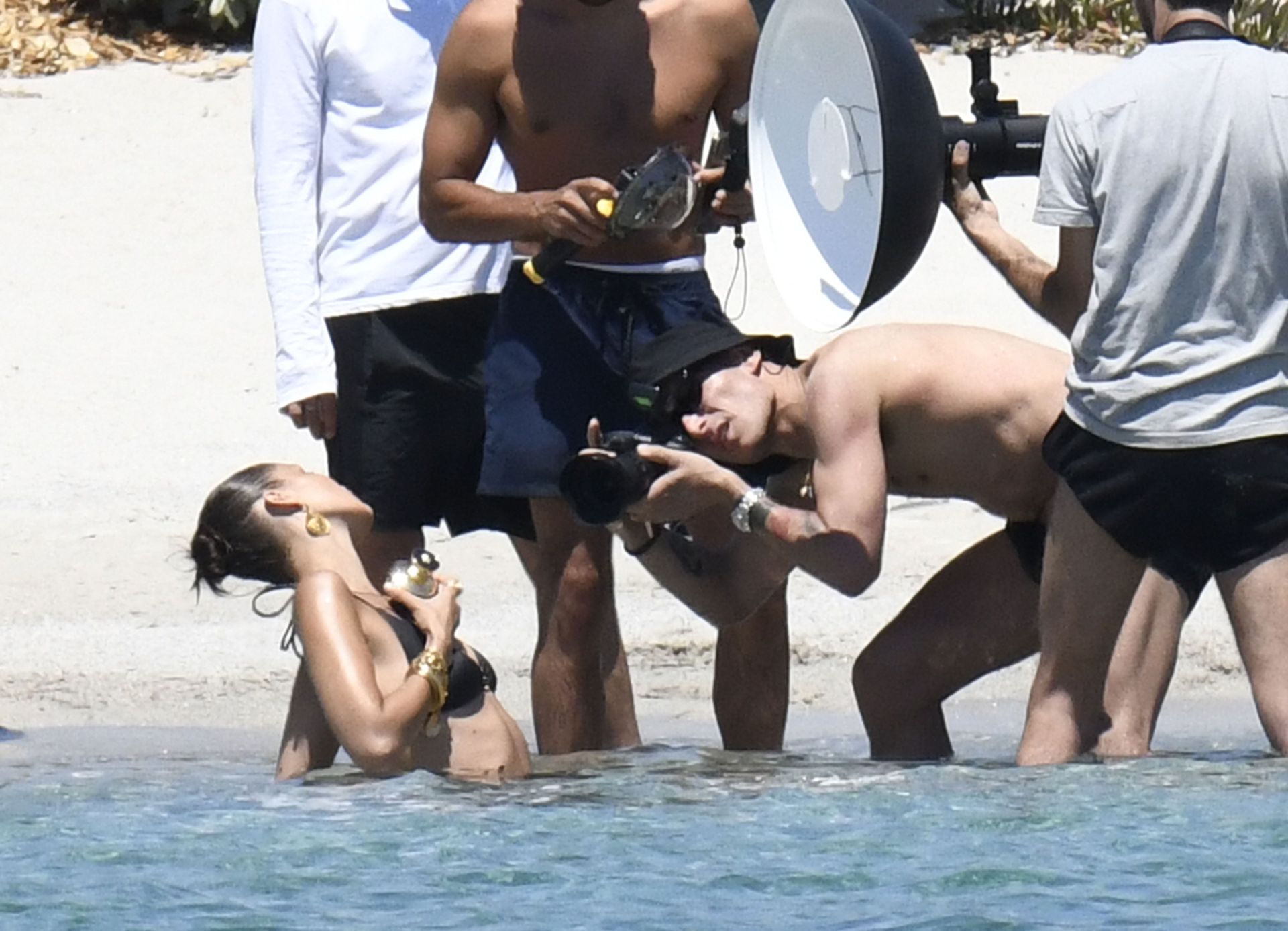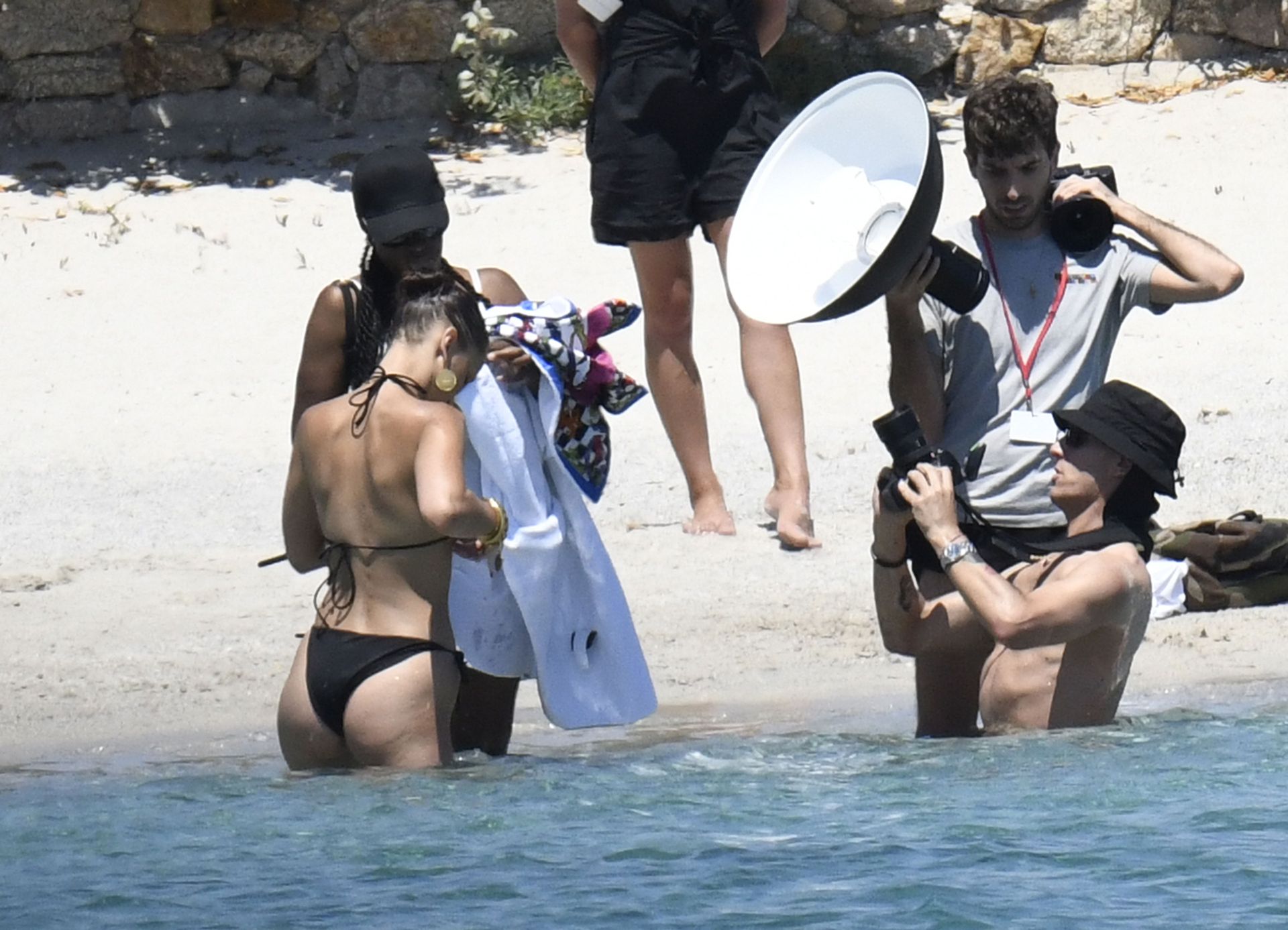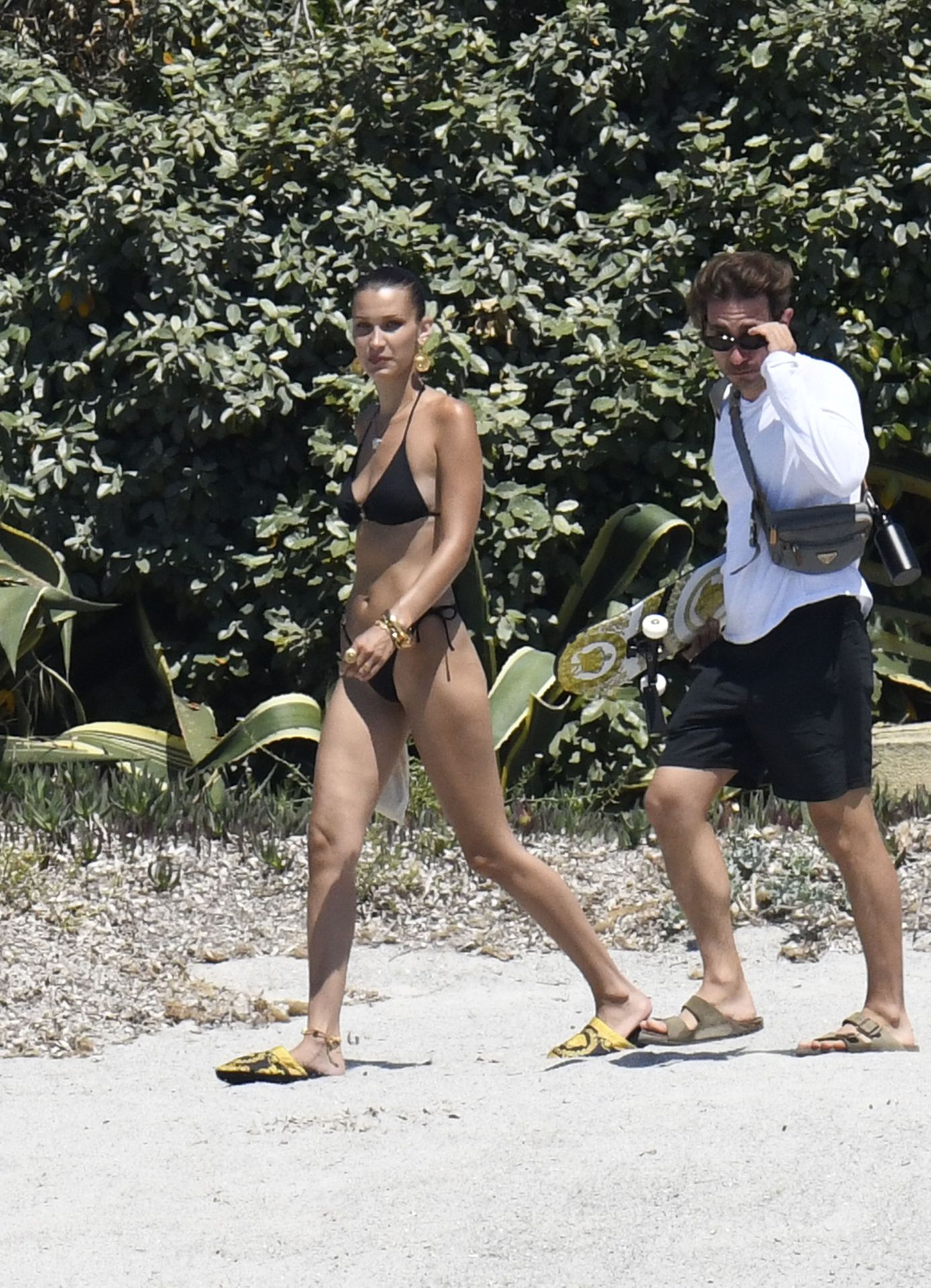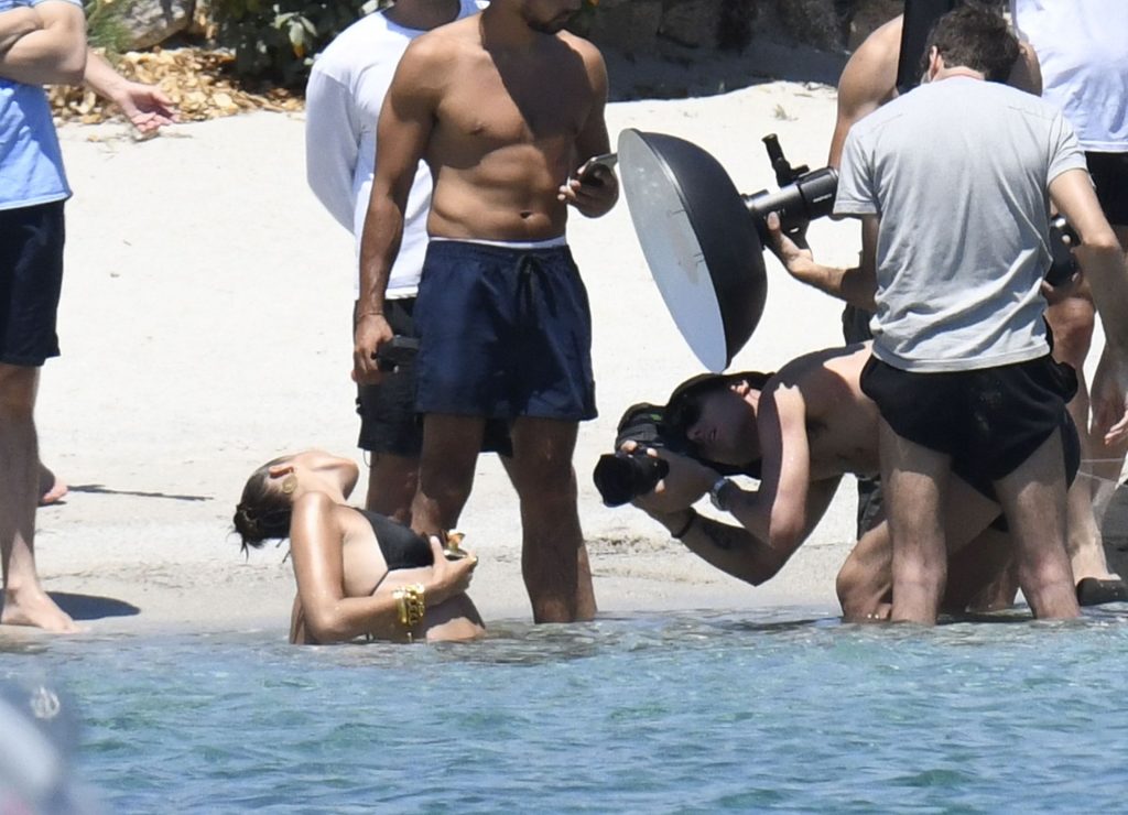 La modella Bella Hadid sfoggia il suo incredibile fisico in un bikini nero durante un servizio fotografico in Corsica, 24/06/2020.