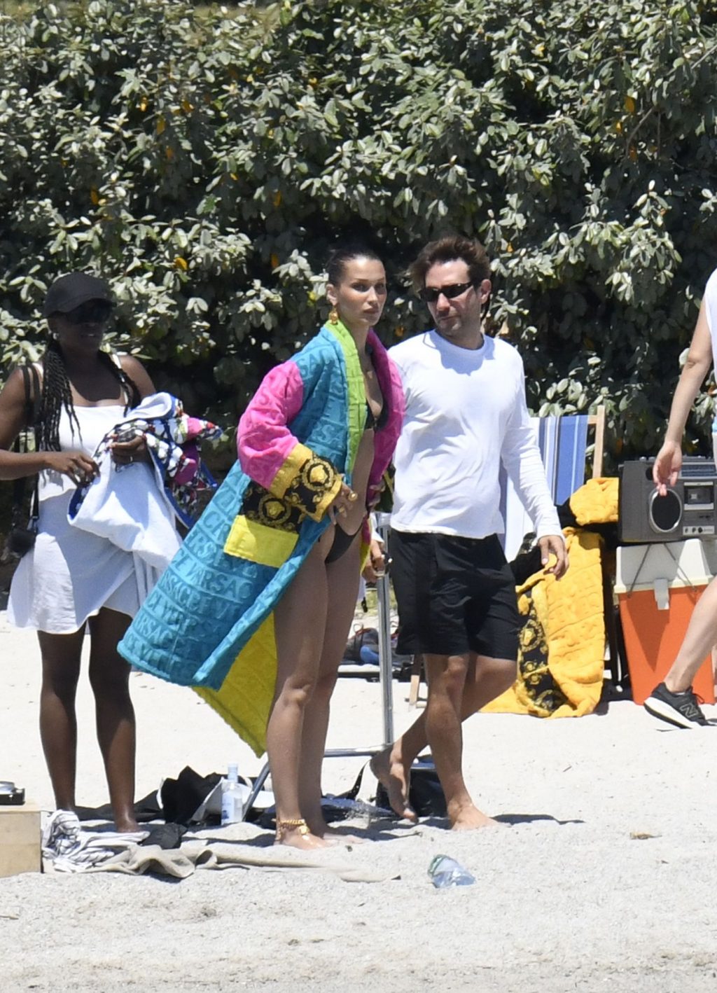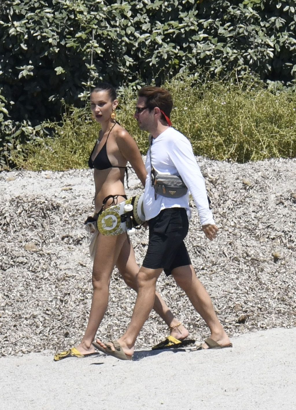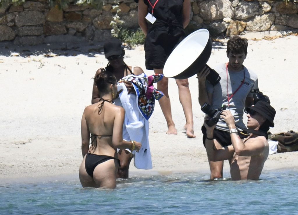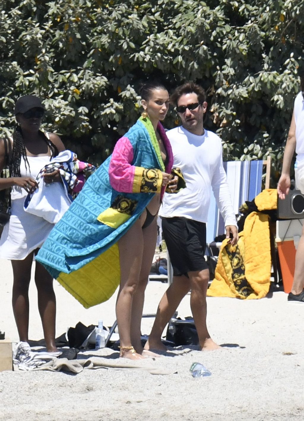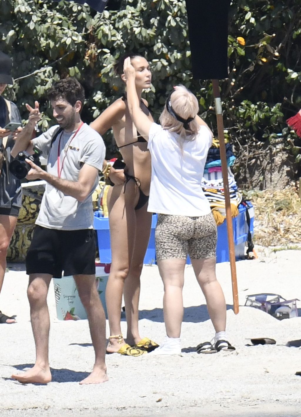 La modella Bella Hadid sfoggia il suo incredibile fisico in un bikini nero durante un servizio fotografico in Corsica, 24/06/2020.