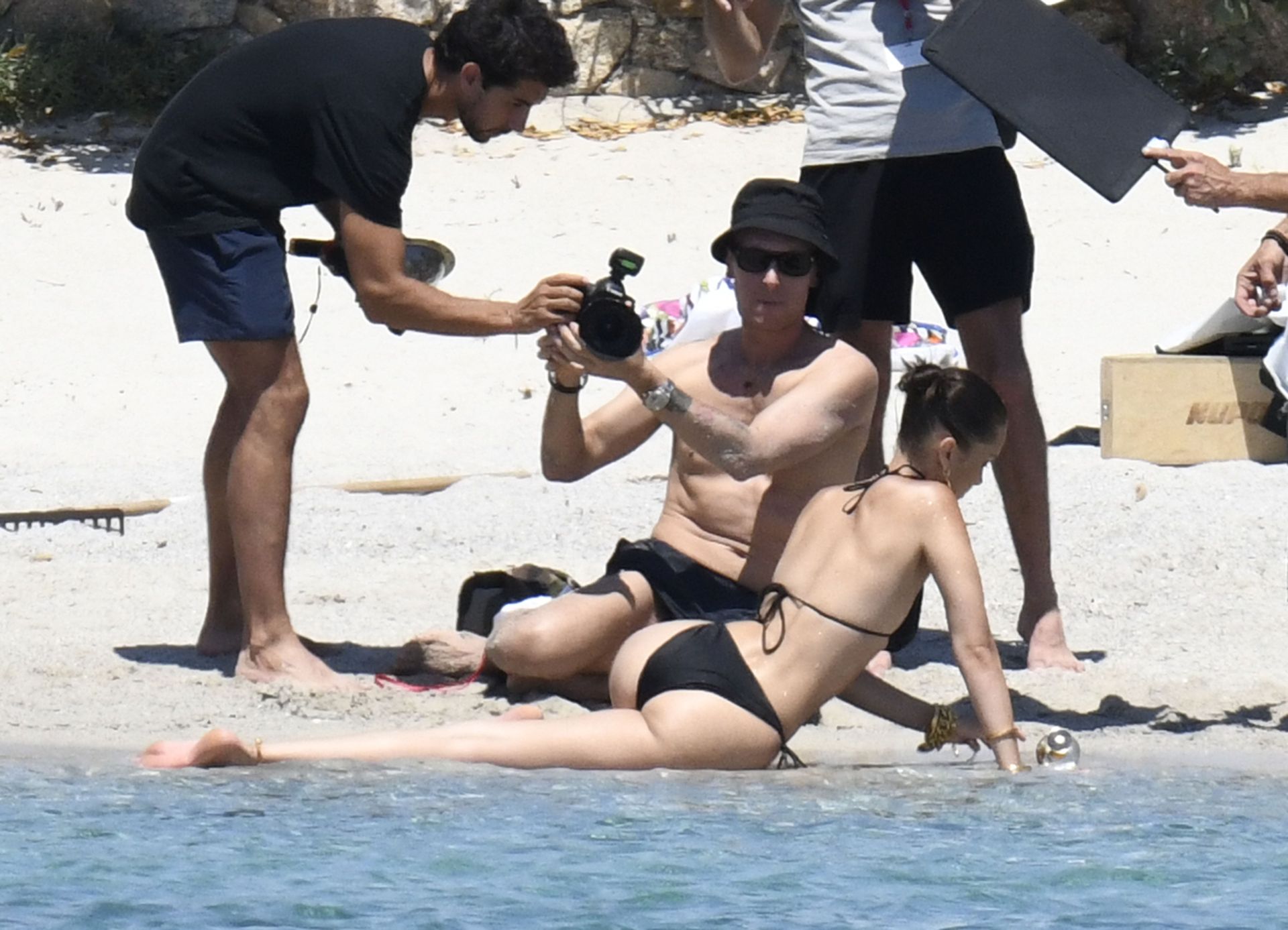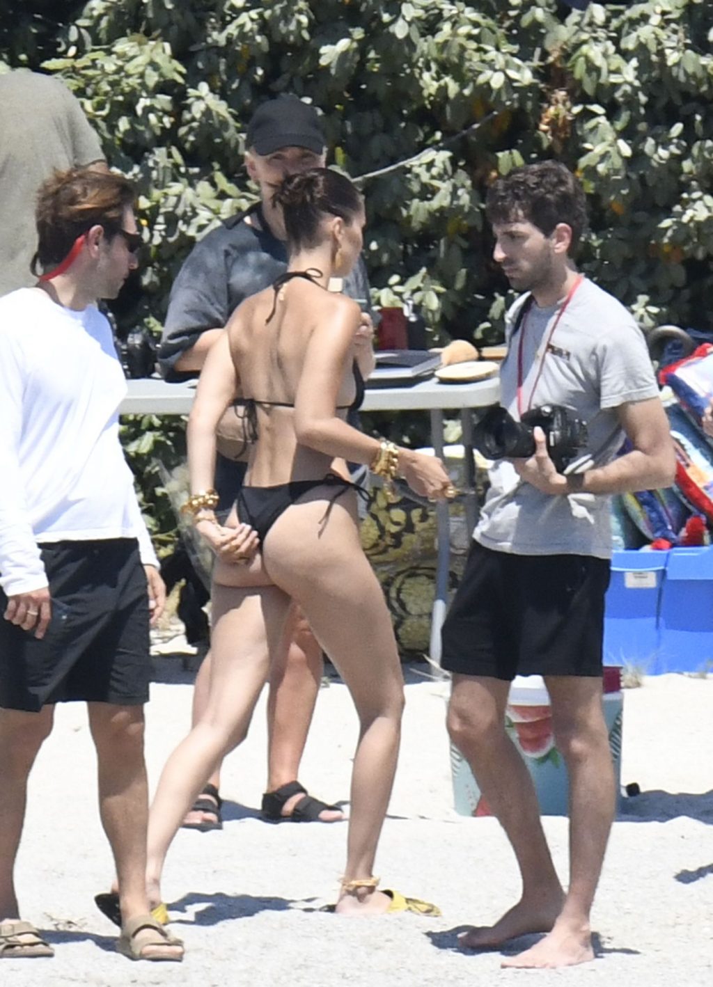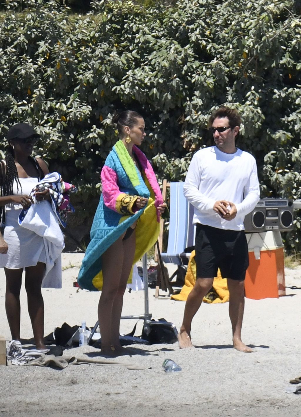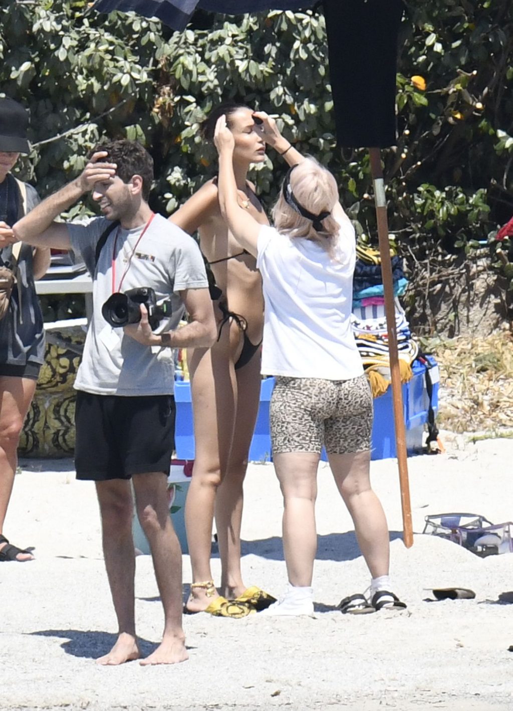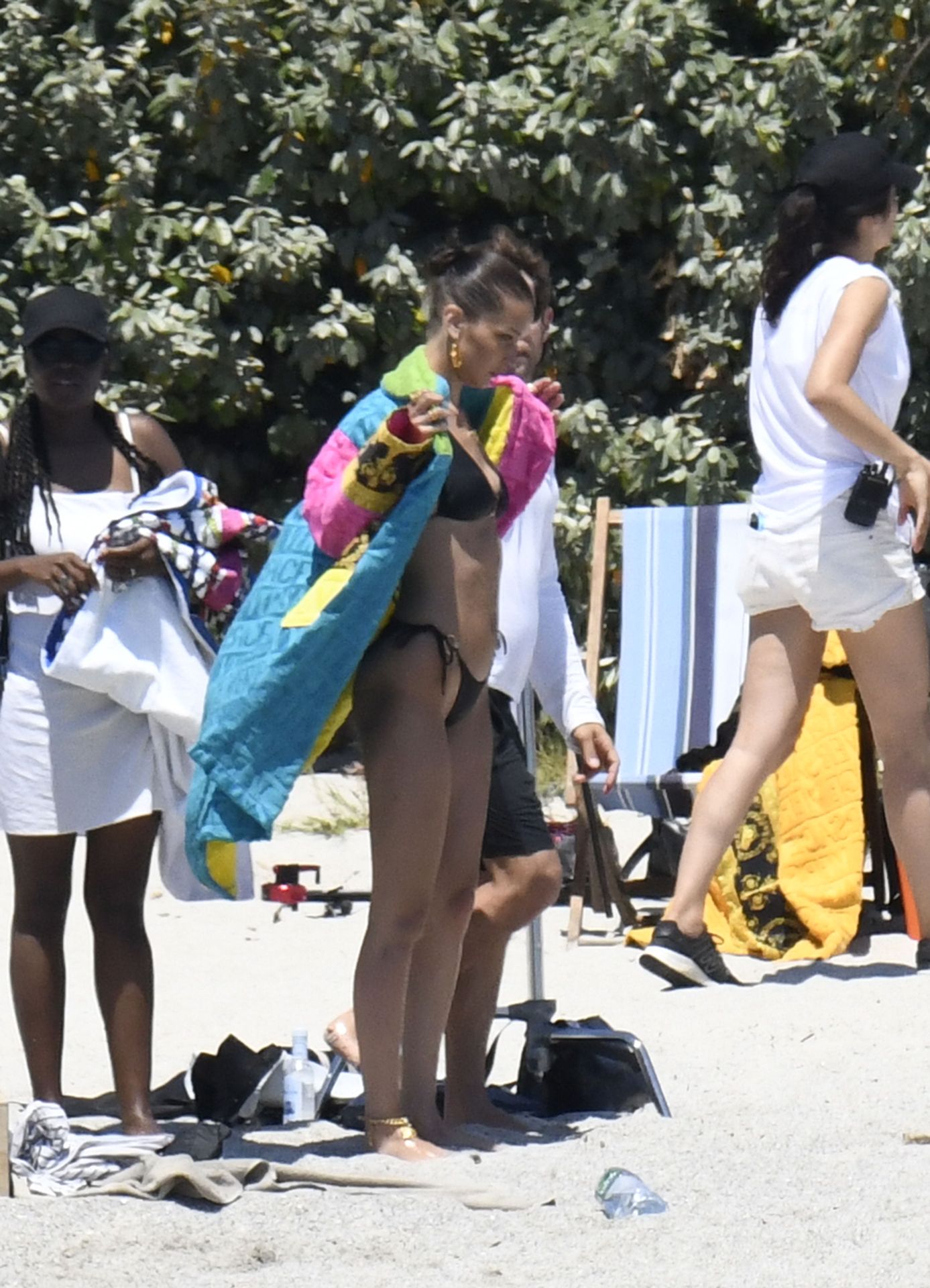 La modella Bella Hadid sfoggia il suo incredibile fisico in un bikini nero durante un servizio fotografico in Corsica, 24/06/2020.
