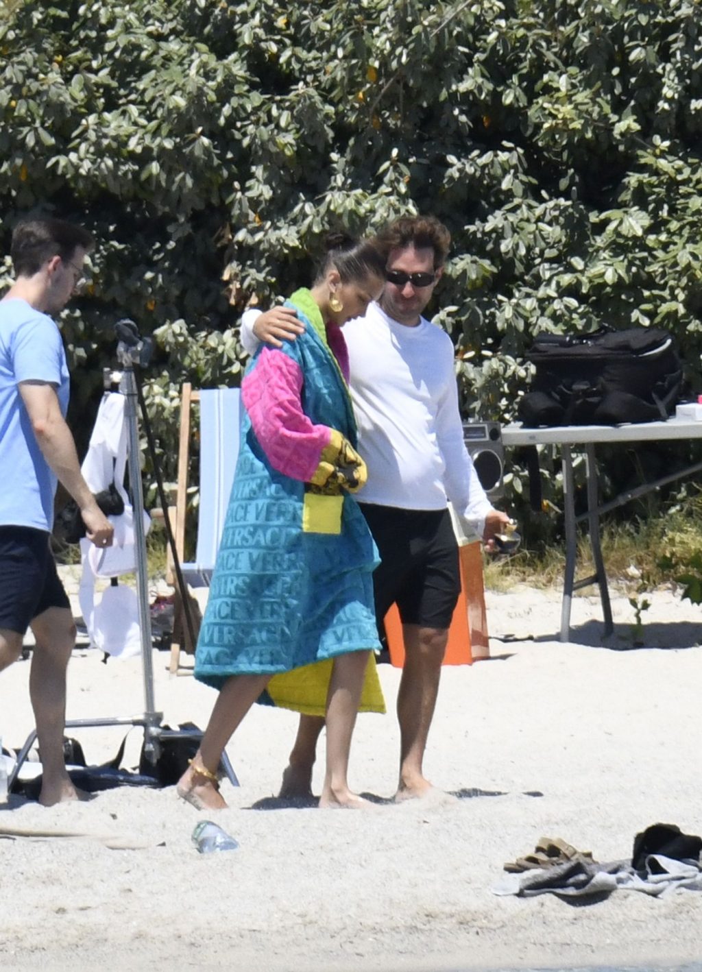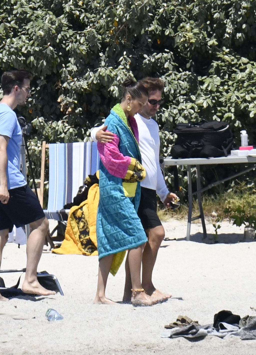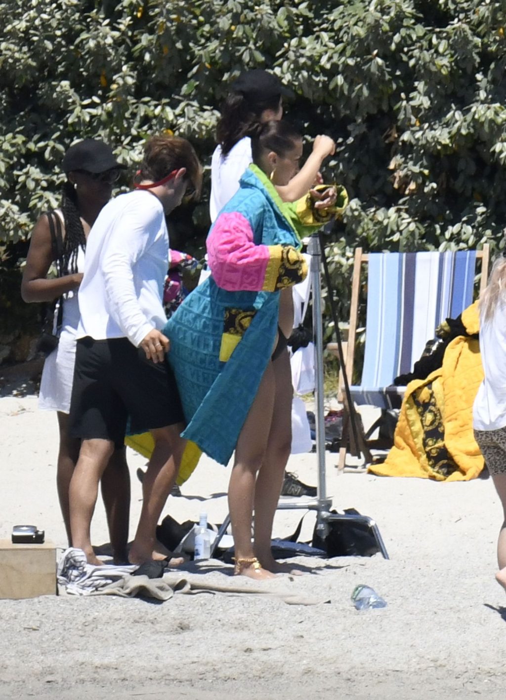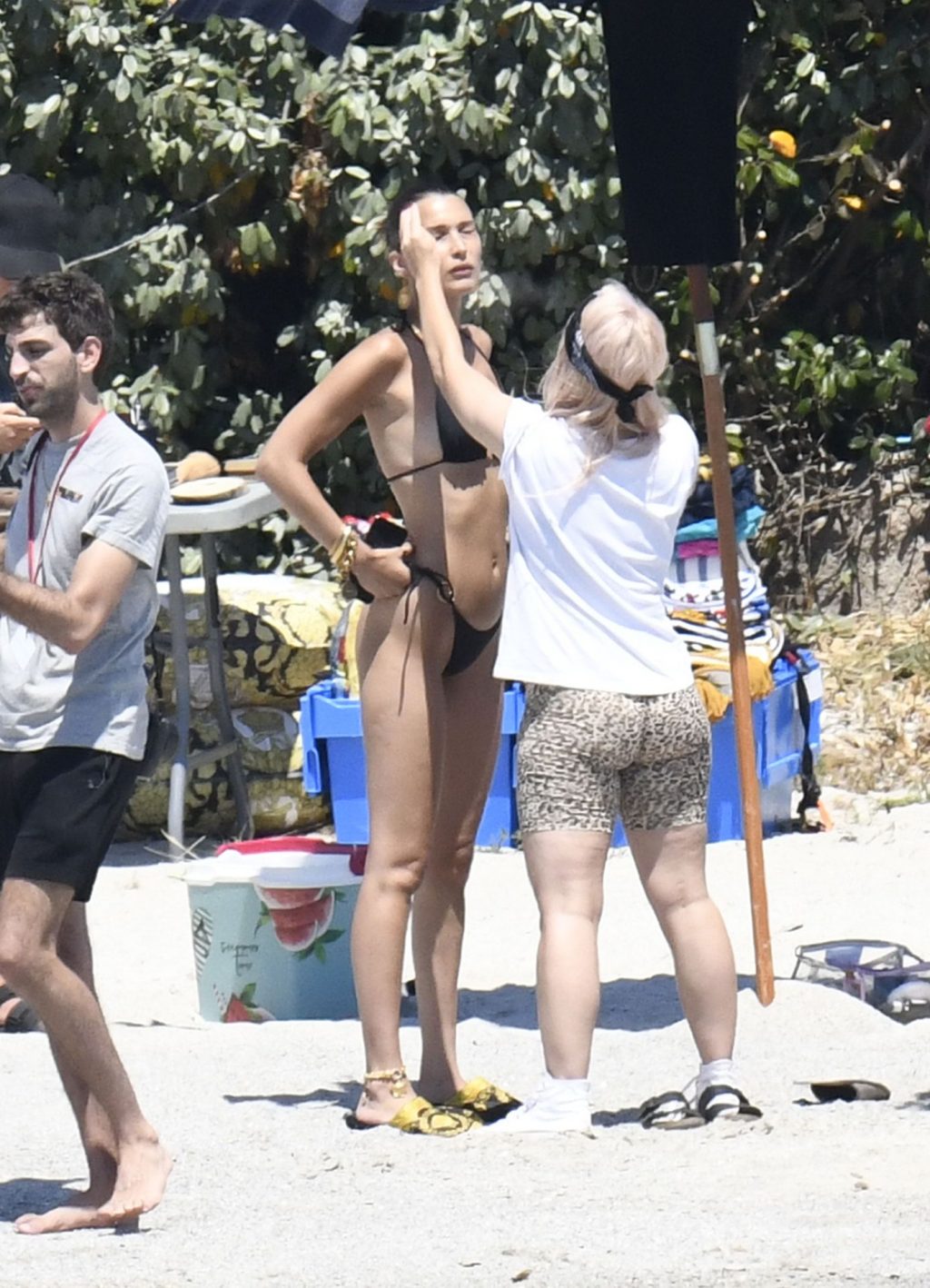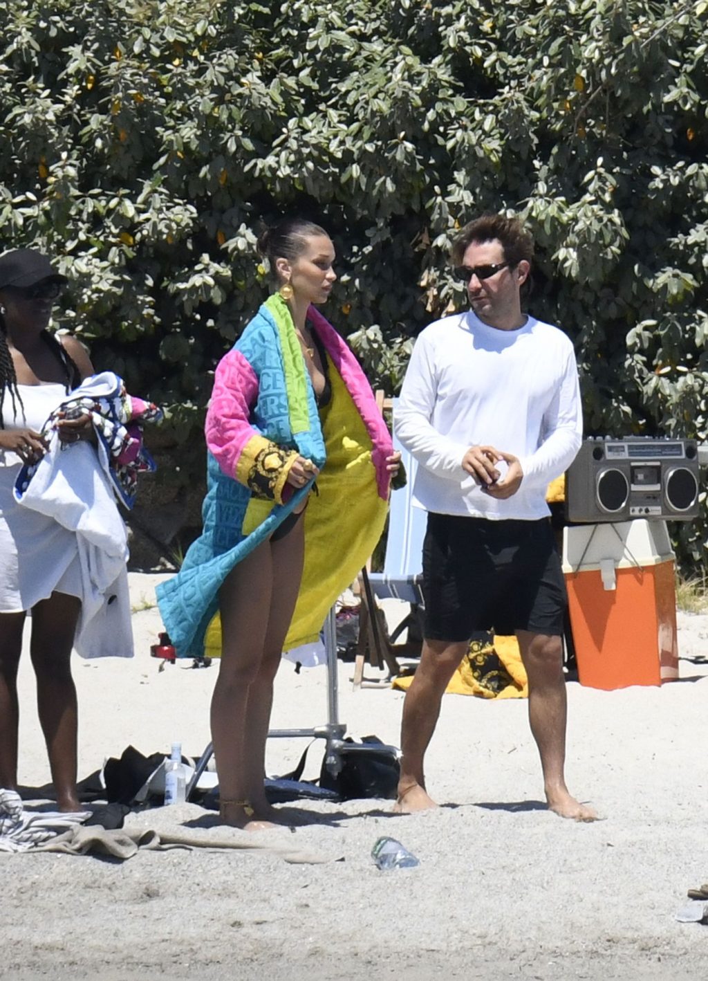 La modella Bella Hadid sfoggia il suo incredibile fisico in un bikini nero durante un servizio fotografico in Corsica, 24/06/2020.