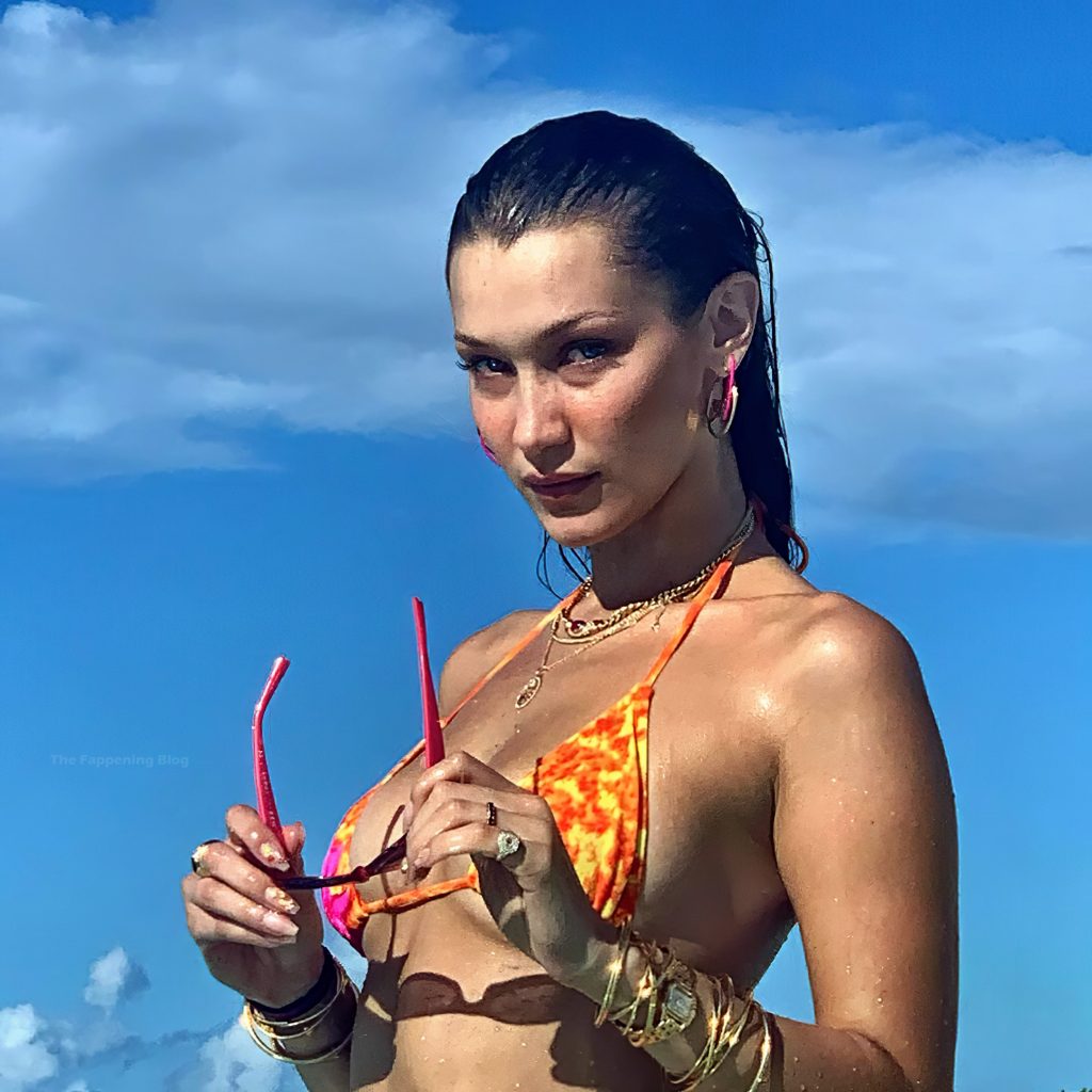 Model e star di The Fappening Bella Hadid sfoggia la sua figura sexy in un minuscolo bikini a due pezzi in un nuovo photoshoot sui social media, 10/10/2020.
