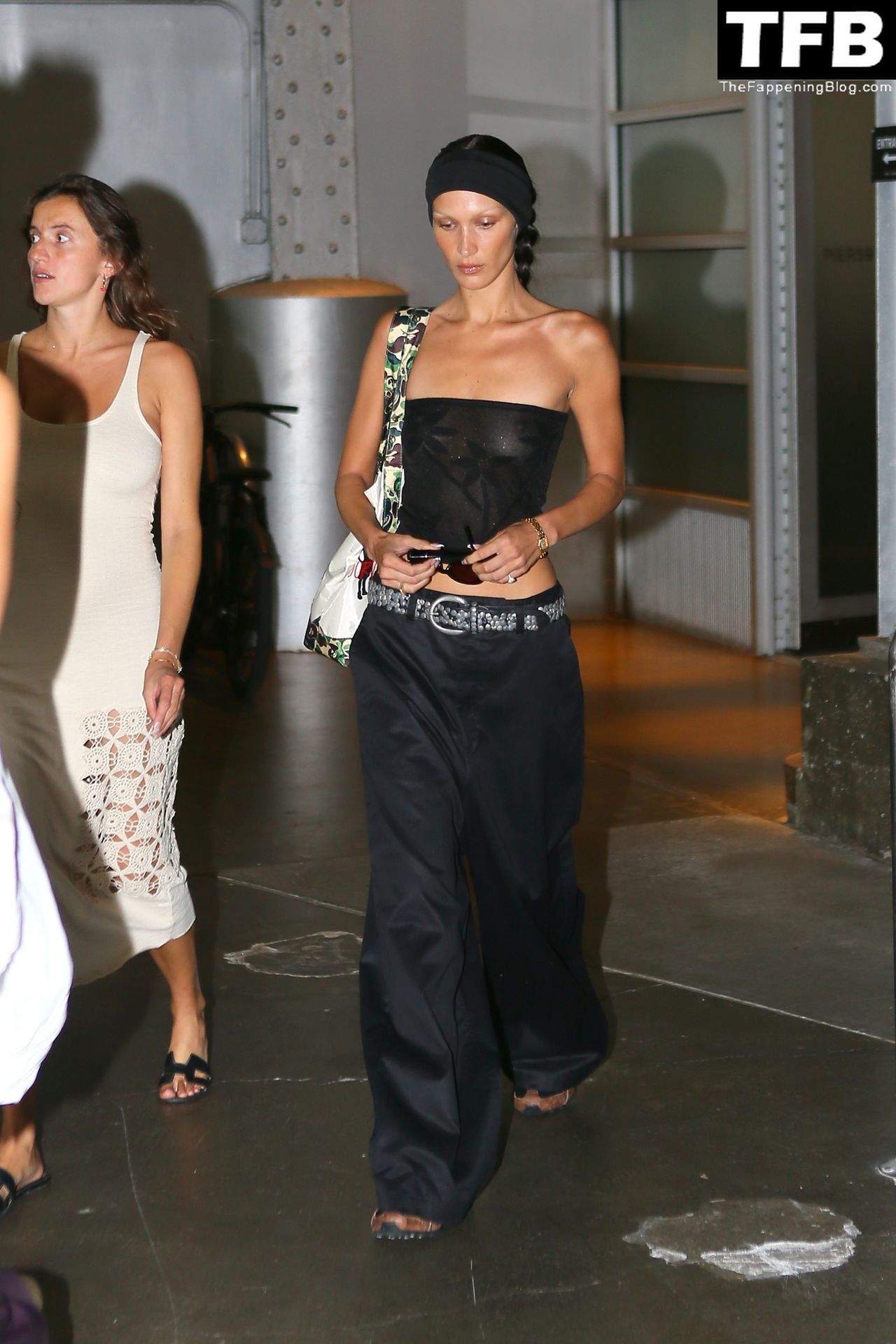 La modella Bella Hadid è stata vista senza reggiseno mentre usciva dagli studi Pier 59 dopo un servizio fotografico a New York, 21/07/2022.