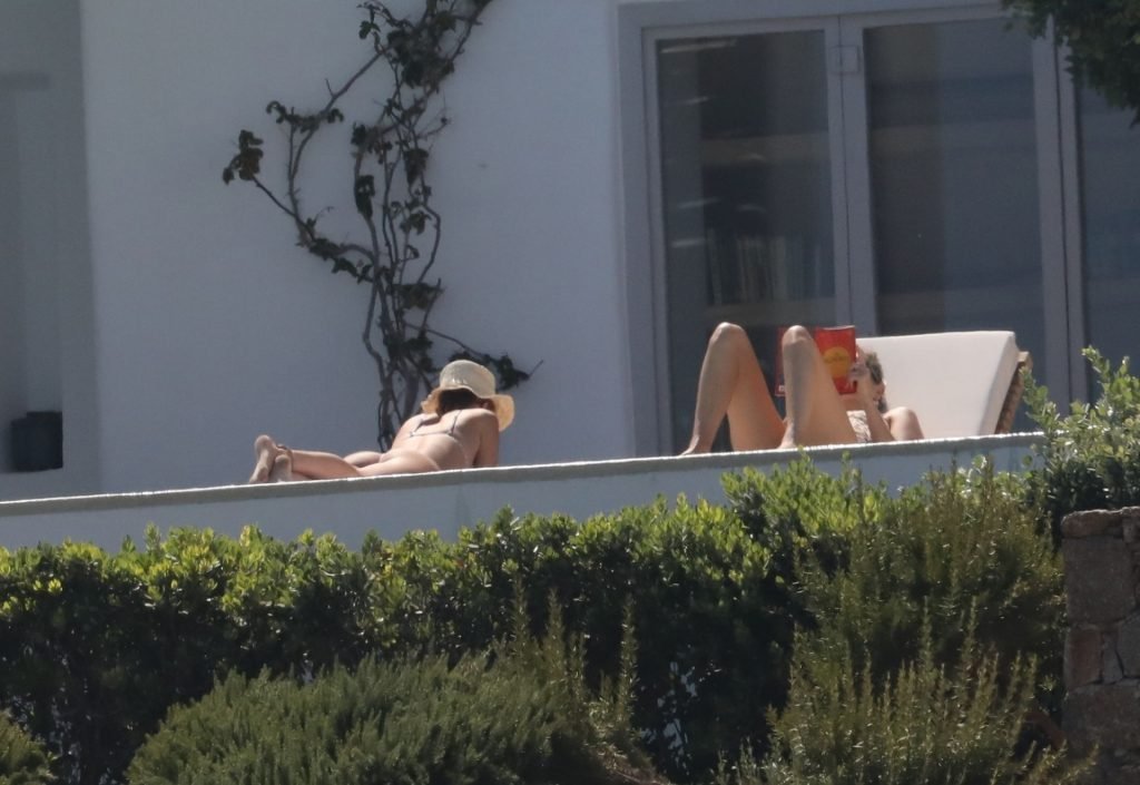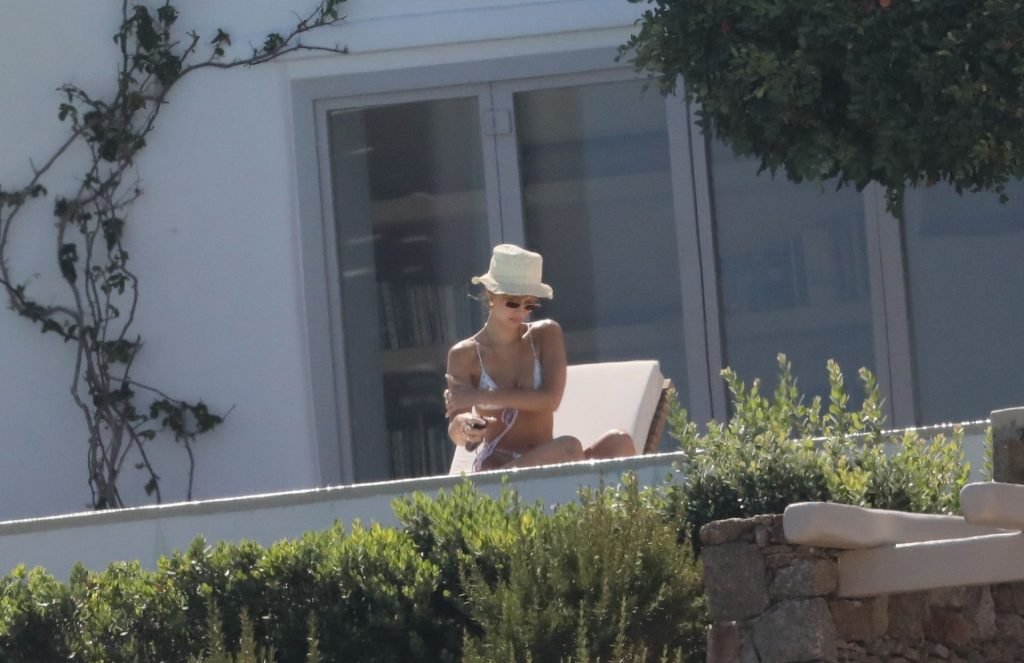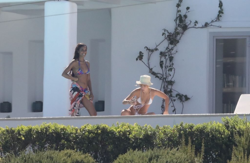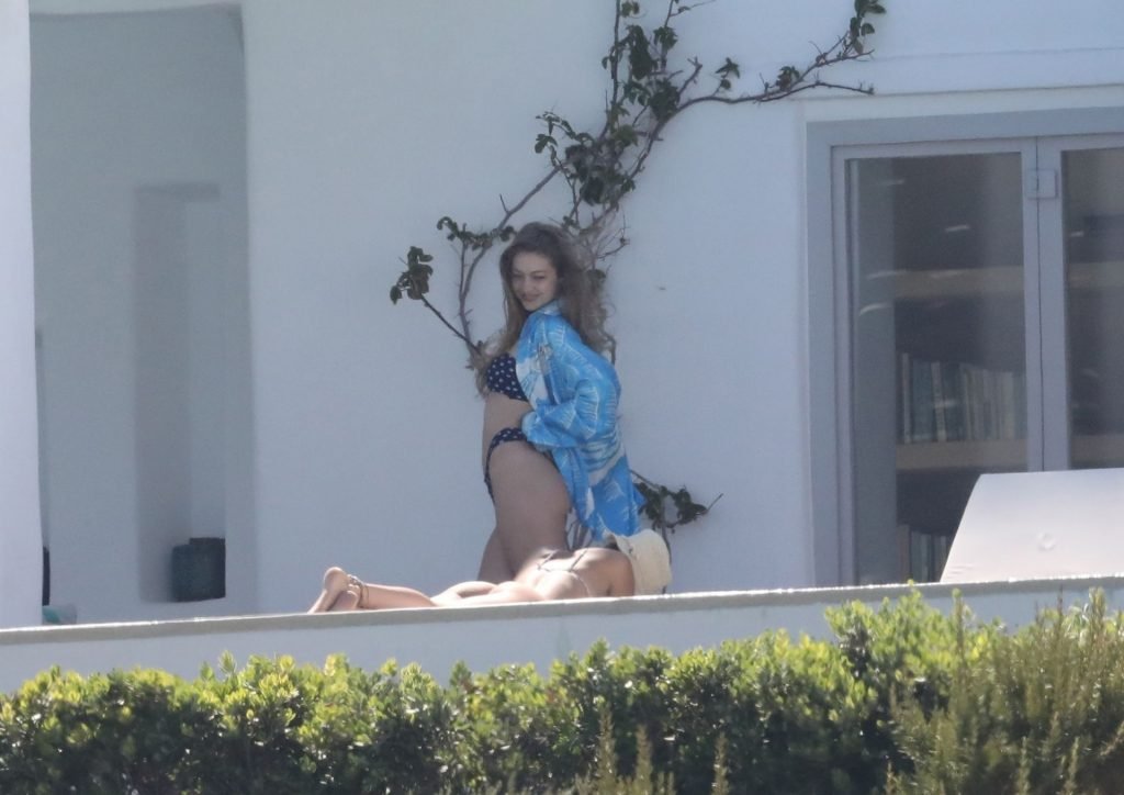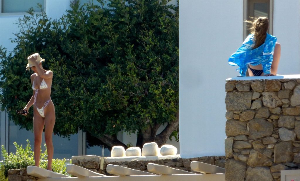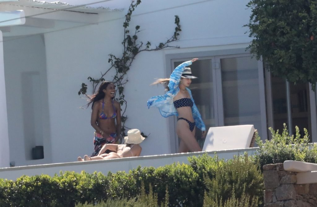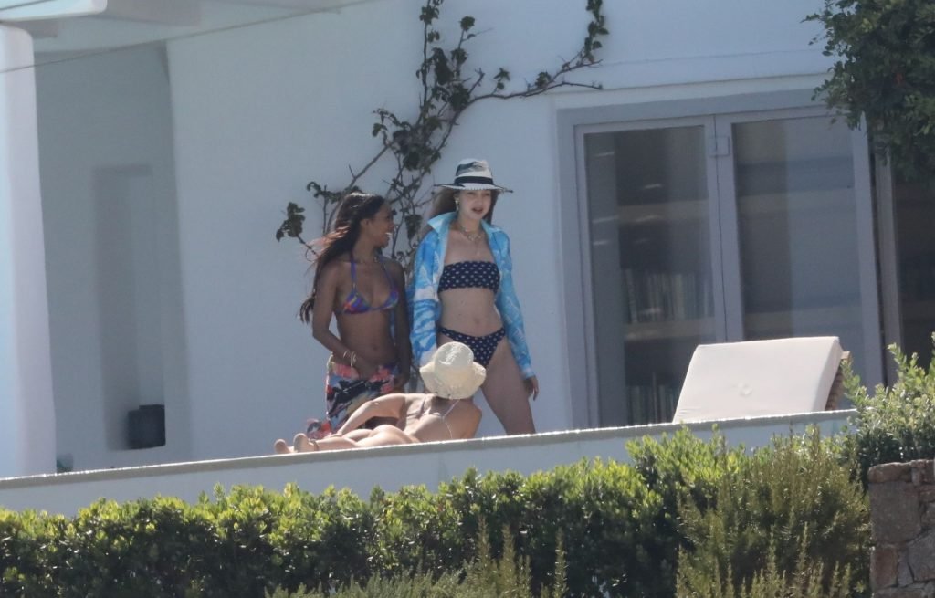 Gigi Hadid con sua sorella Bella Hadid sono state viste mentre trascorrevano il tempo prendendo il sole nella loro Villa sull’isola di Mykonos, 28/07/2019. Si divertono e fanno selfie.