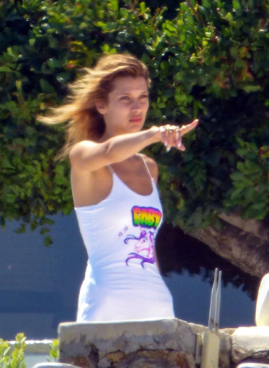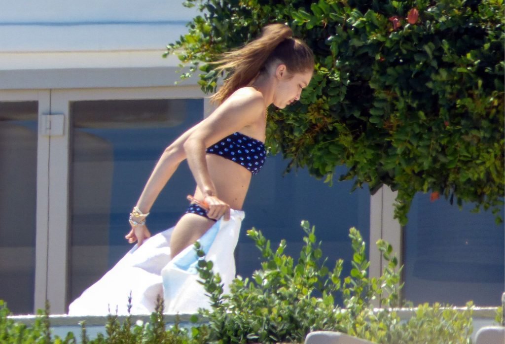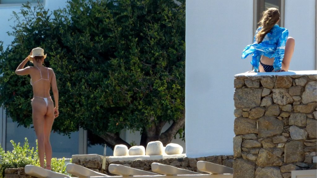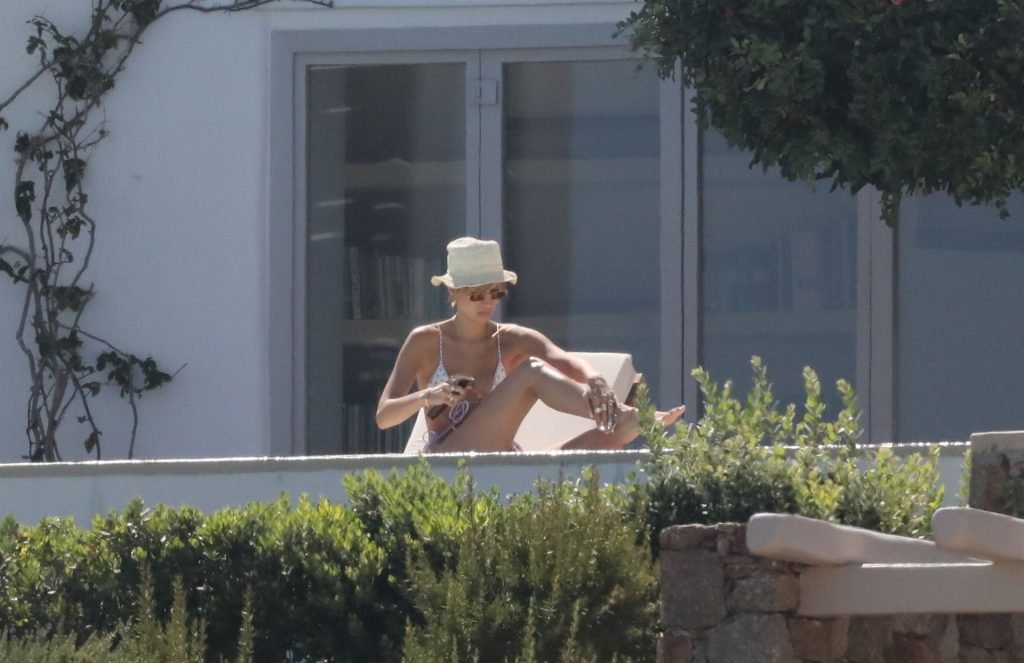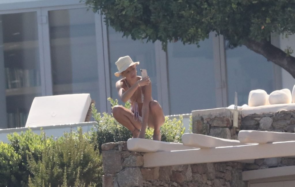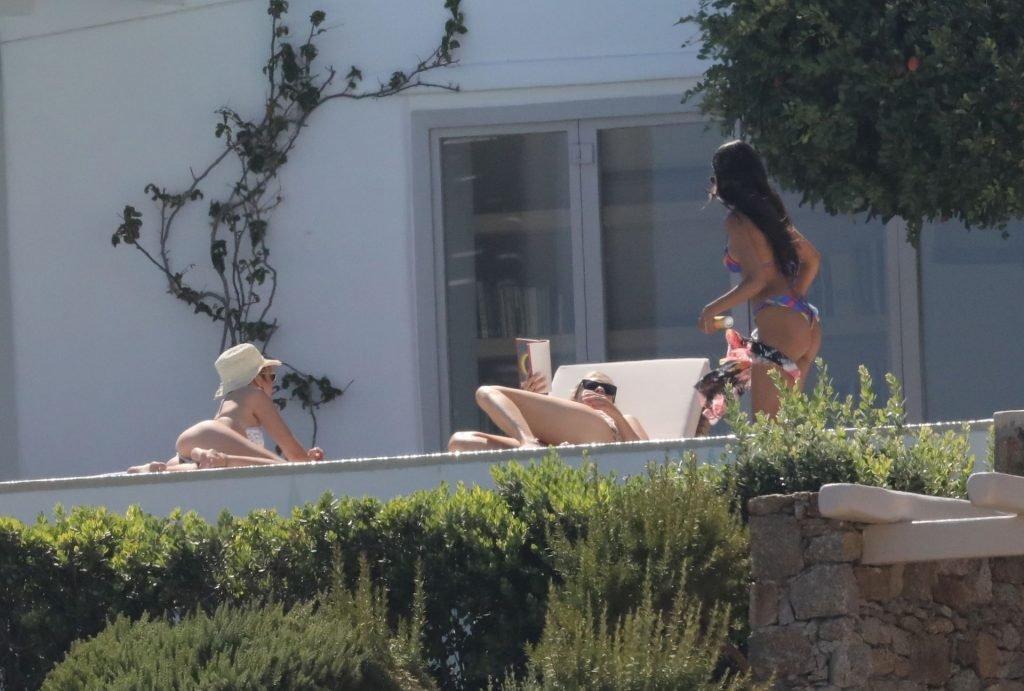 Gigi Hadid con sua sorella Bella Hadid sono state viste mentre trascorrevano il tempo prendendo il sole nella loro Villa sull’isola di Mykonos, 28/07/2019. Si divertono e fanno selfie.
