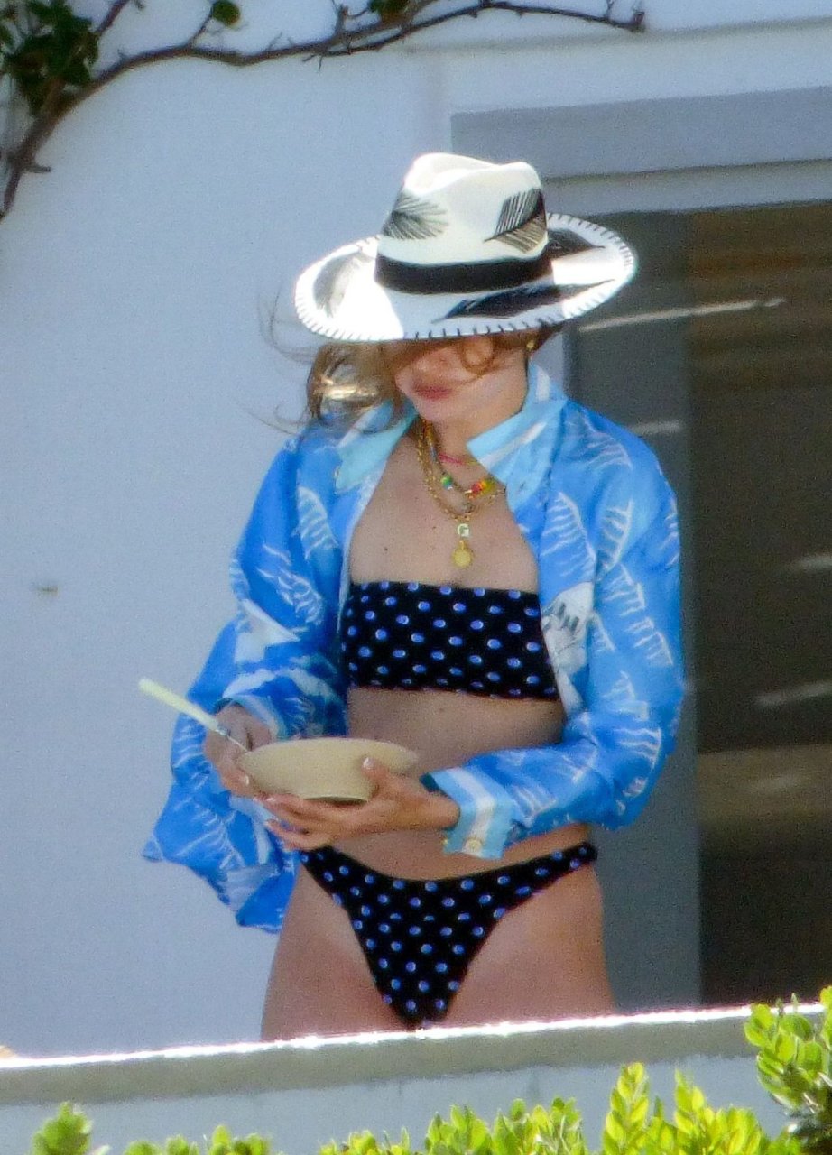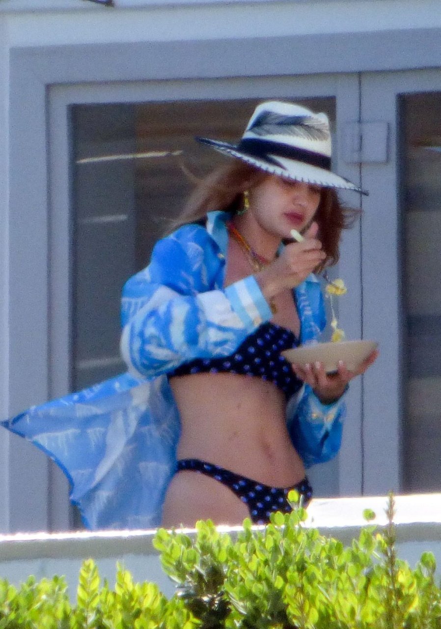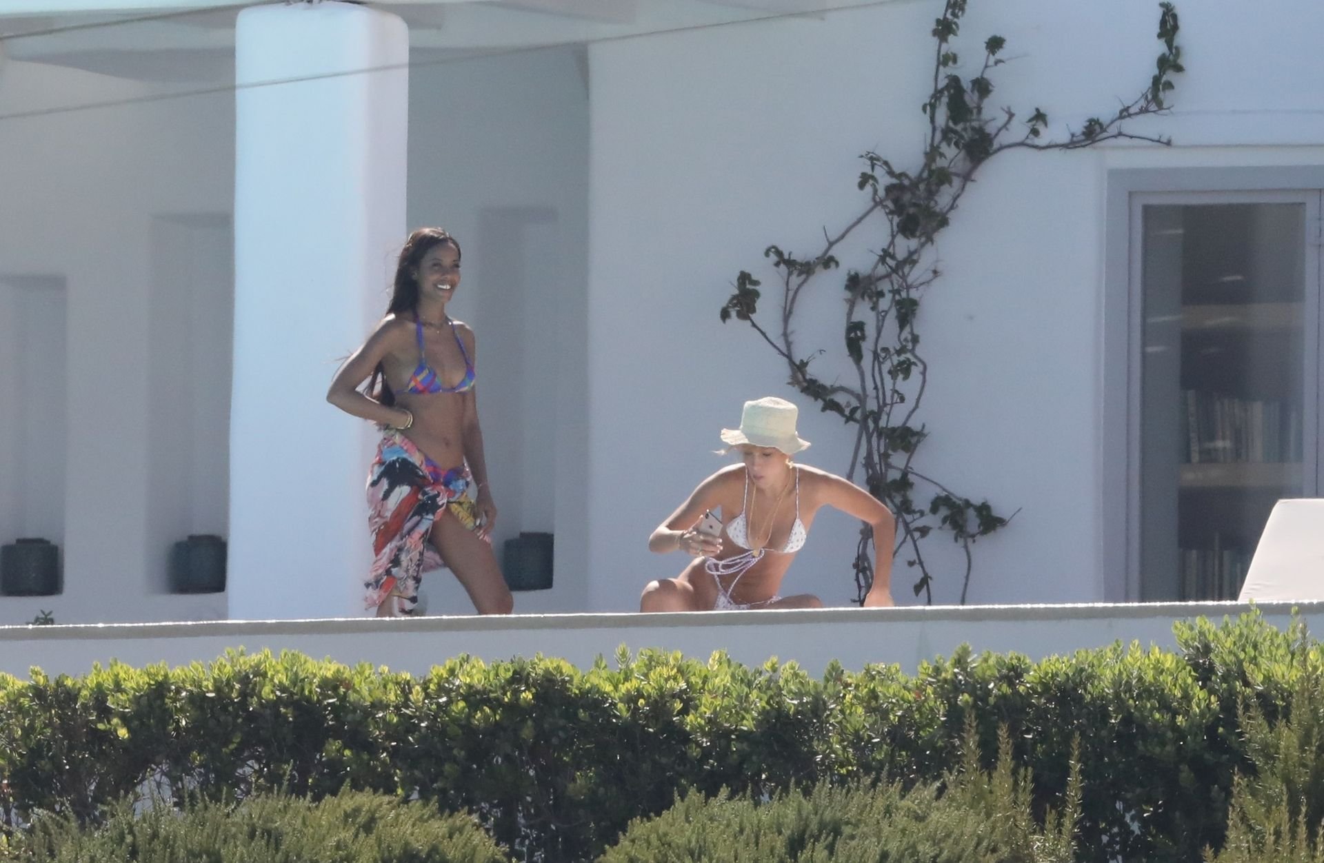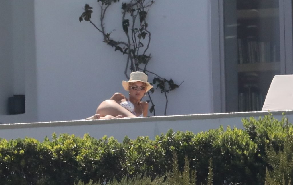 Gigi Hadid con sua sorella Bella Hadid sono state viste mentre trascorrevano il tempo prendendo il sole nella loro Villa sull’isola di Mykonos, 28/07/2019. Si divertono e fanno selfie.