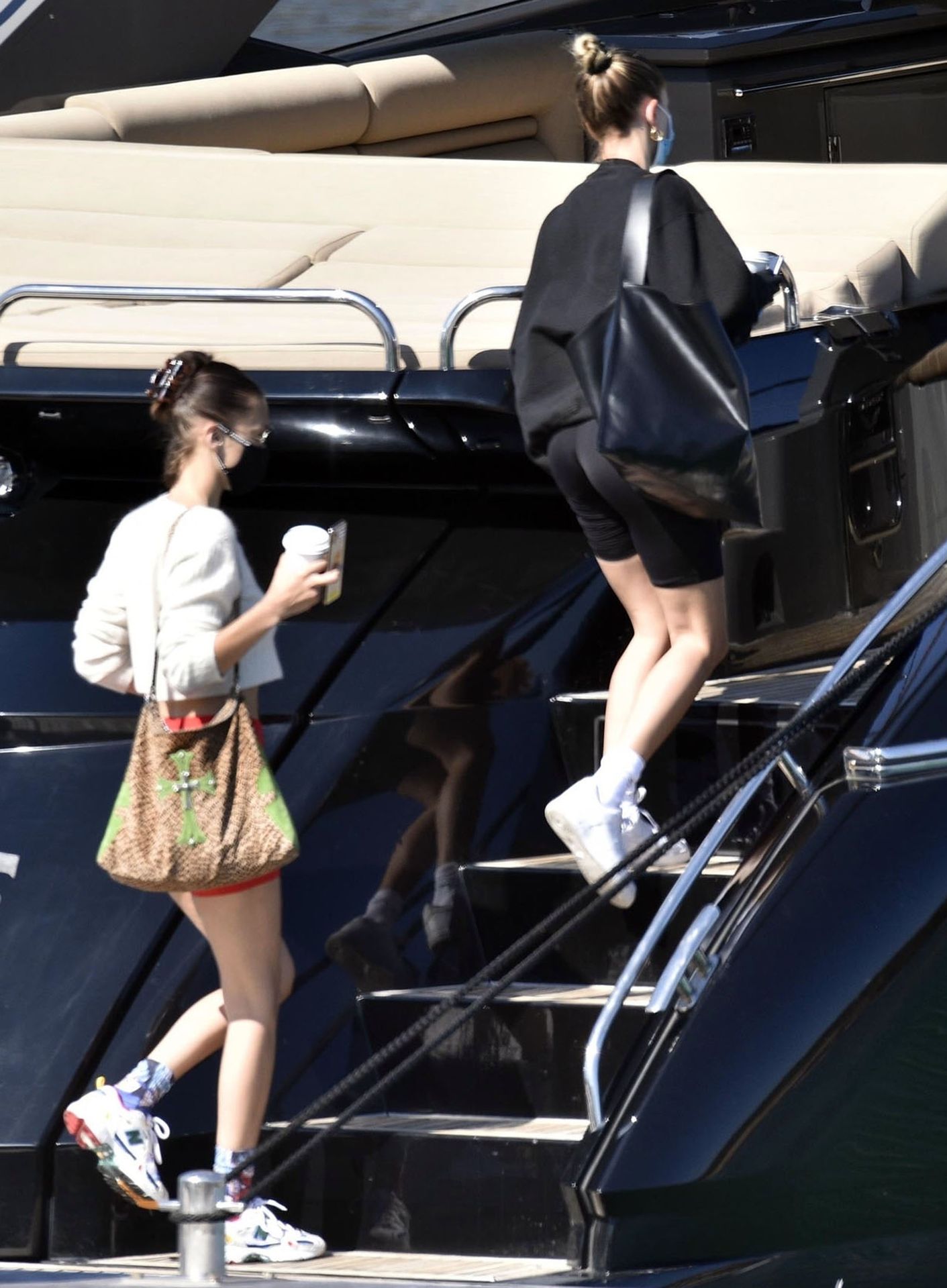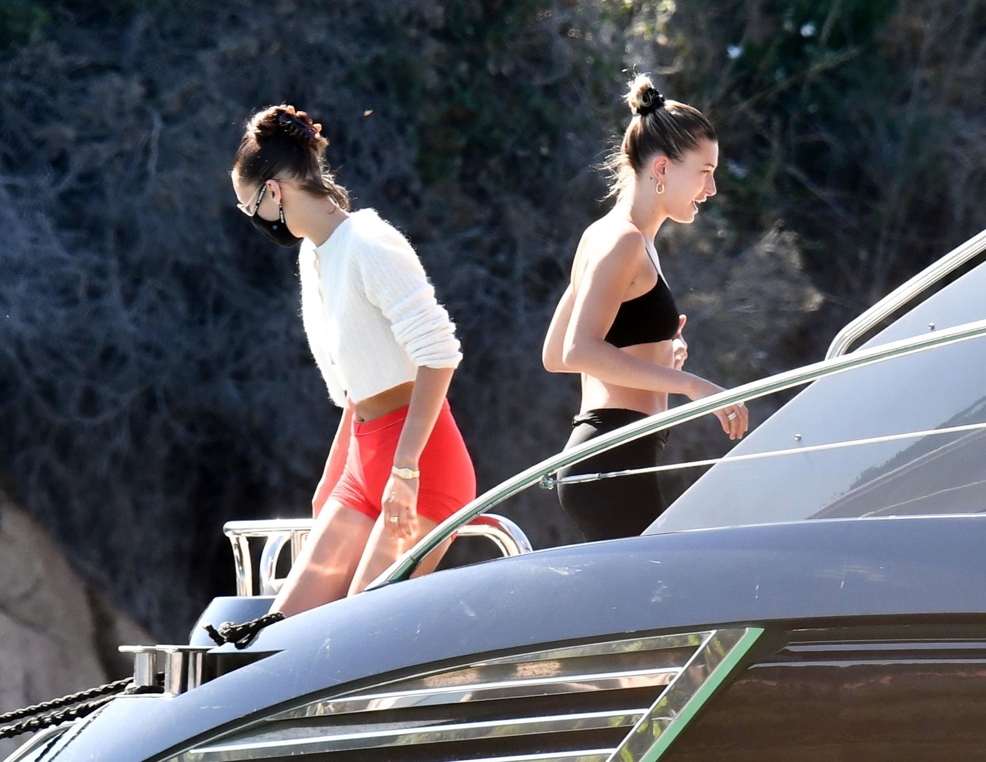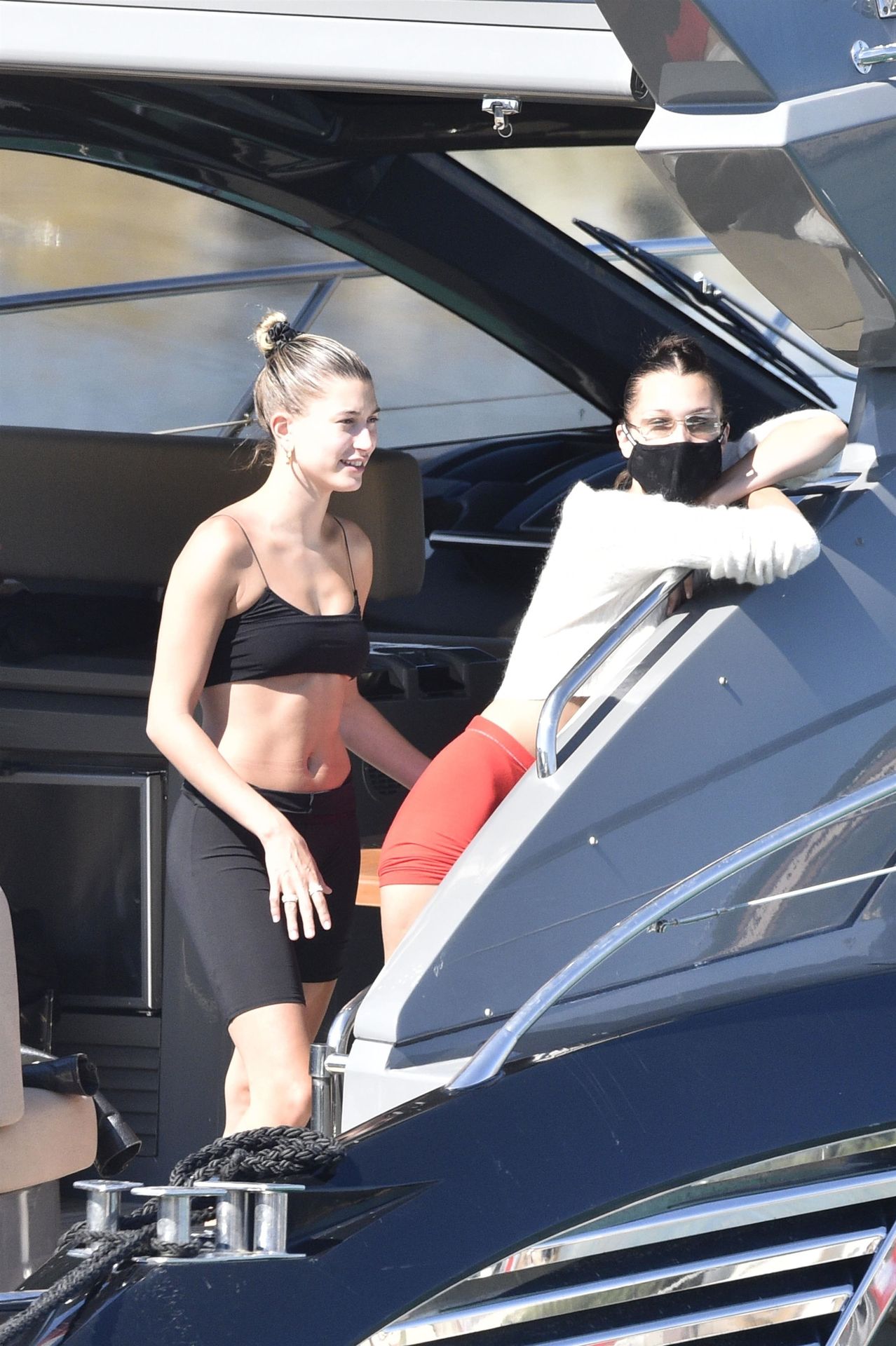 Bella Hadid e Hailey Baldwin sono state viste salire a bordo di uno yacht oggi dopo essere arrivate in città in precedenza – Sardegna, Italia, 23/06/2020. Le modelle sembravano entusiaste di godersi un po’ di tempo sull’acqua e pranzare.