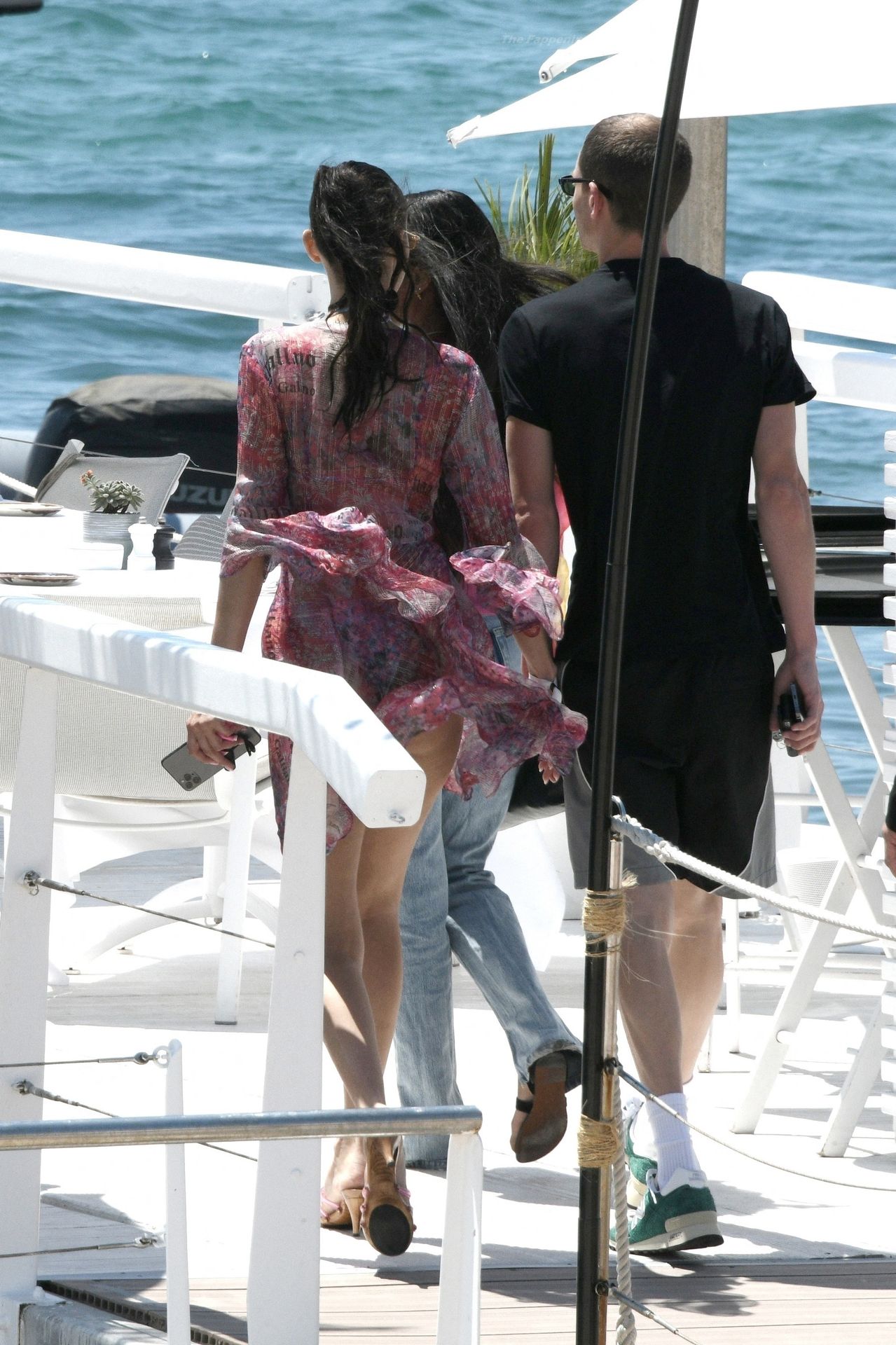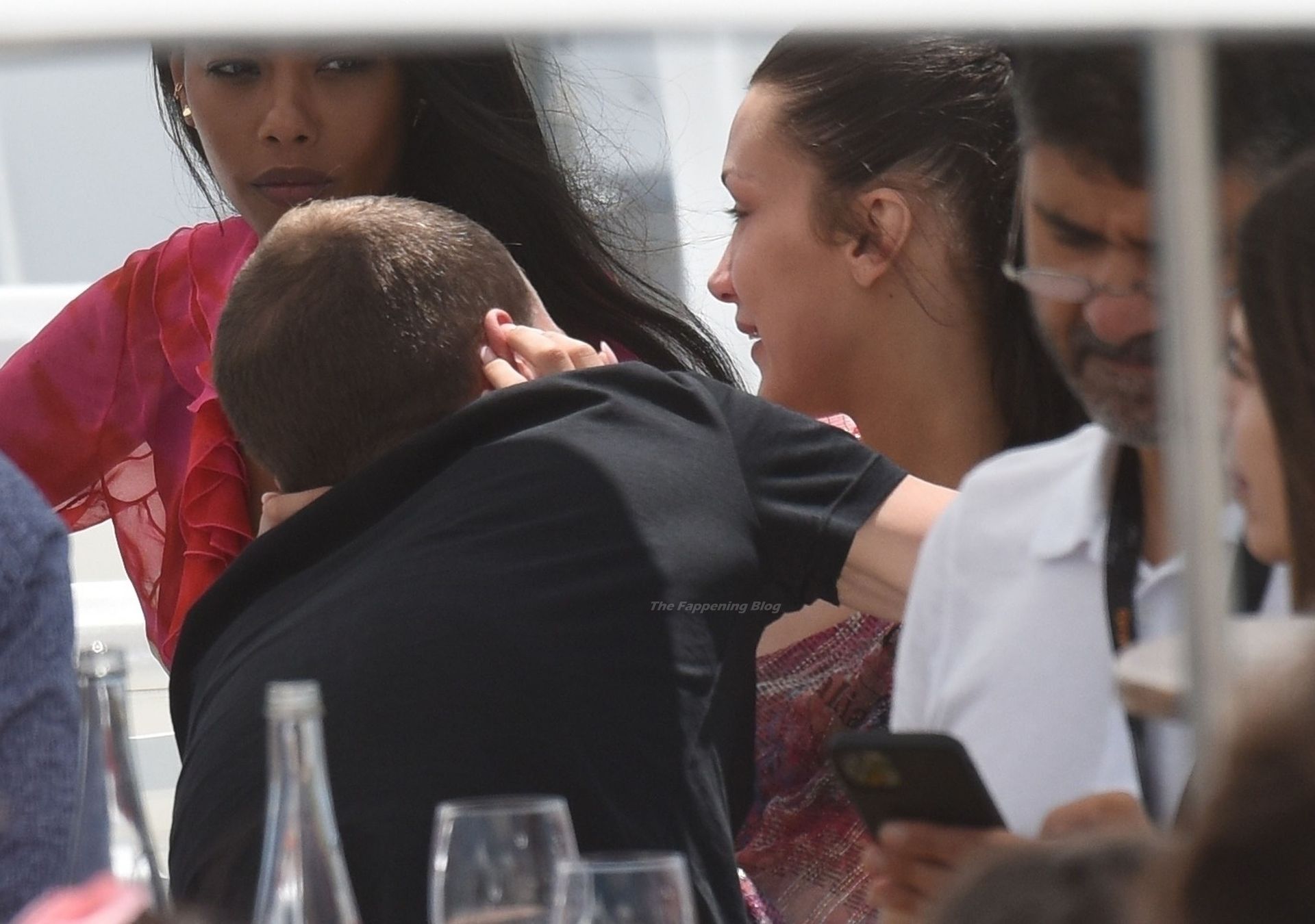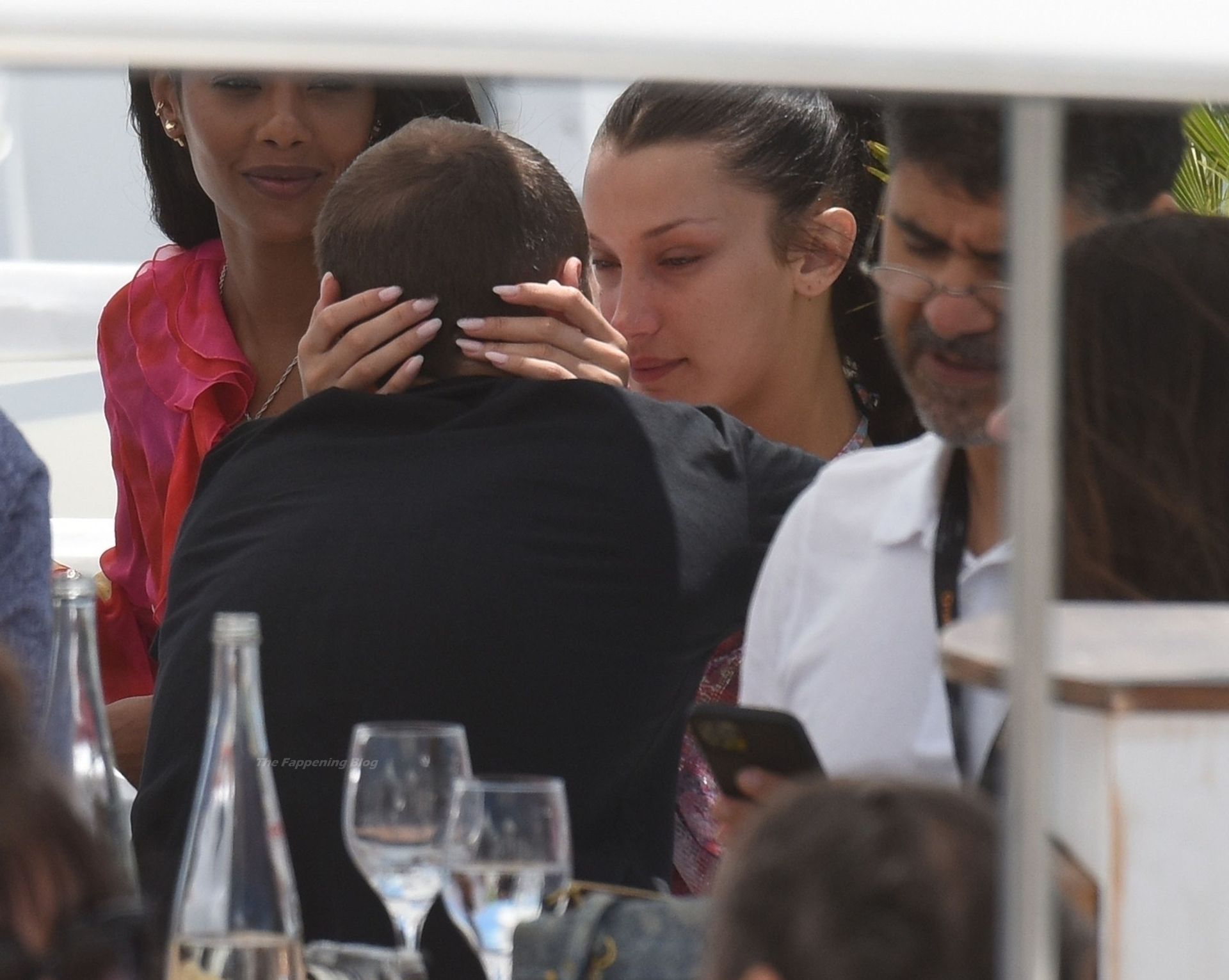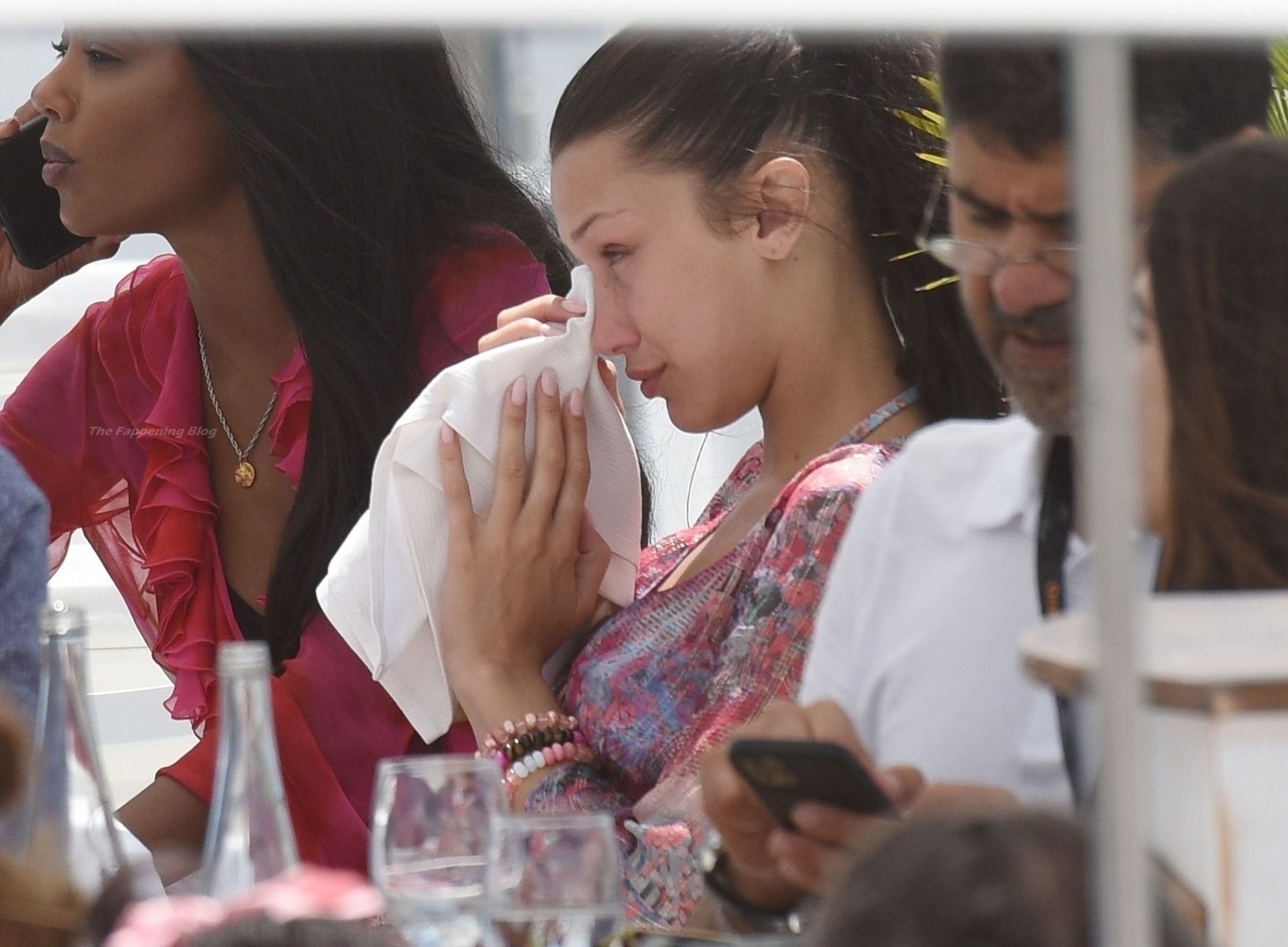 La modella Bella Hadid è stata vista durante il 74º Festival del Cinema di Cannes a Cannes, 11/07/2021. La modella sfoggia un look tipicamente elegante con un abito trasparente e décolleté rosa con tacco kitten mentre esce per pranzo.