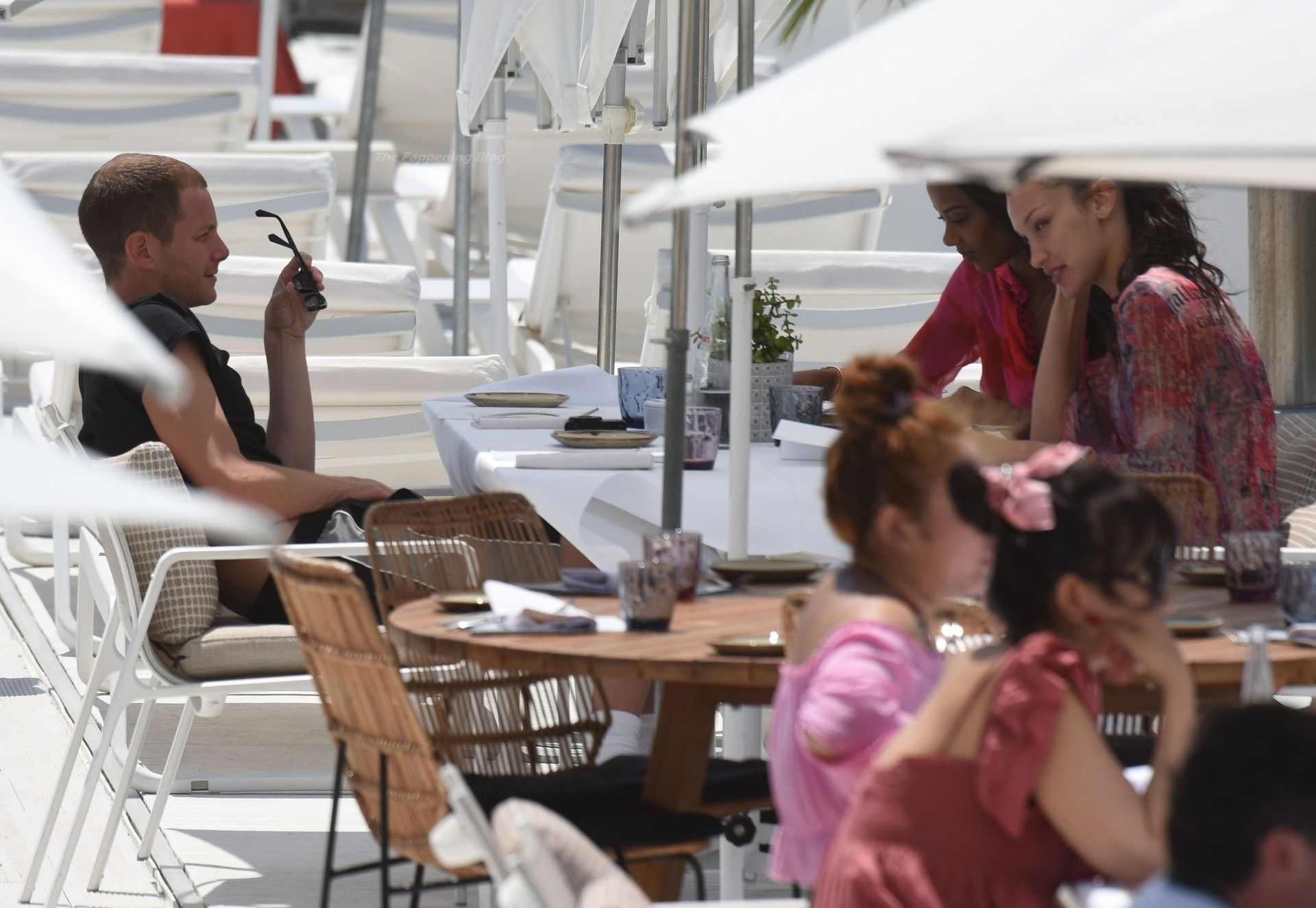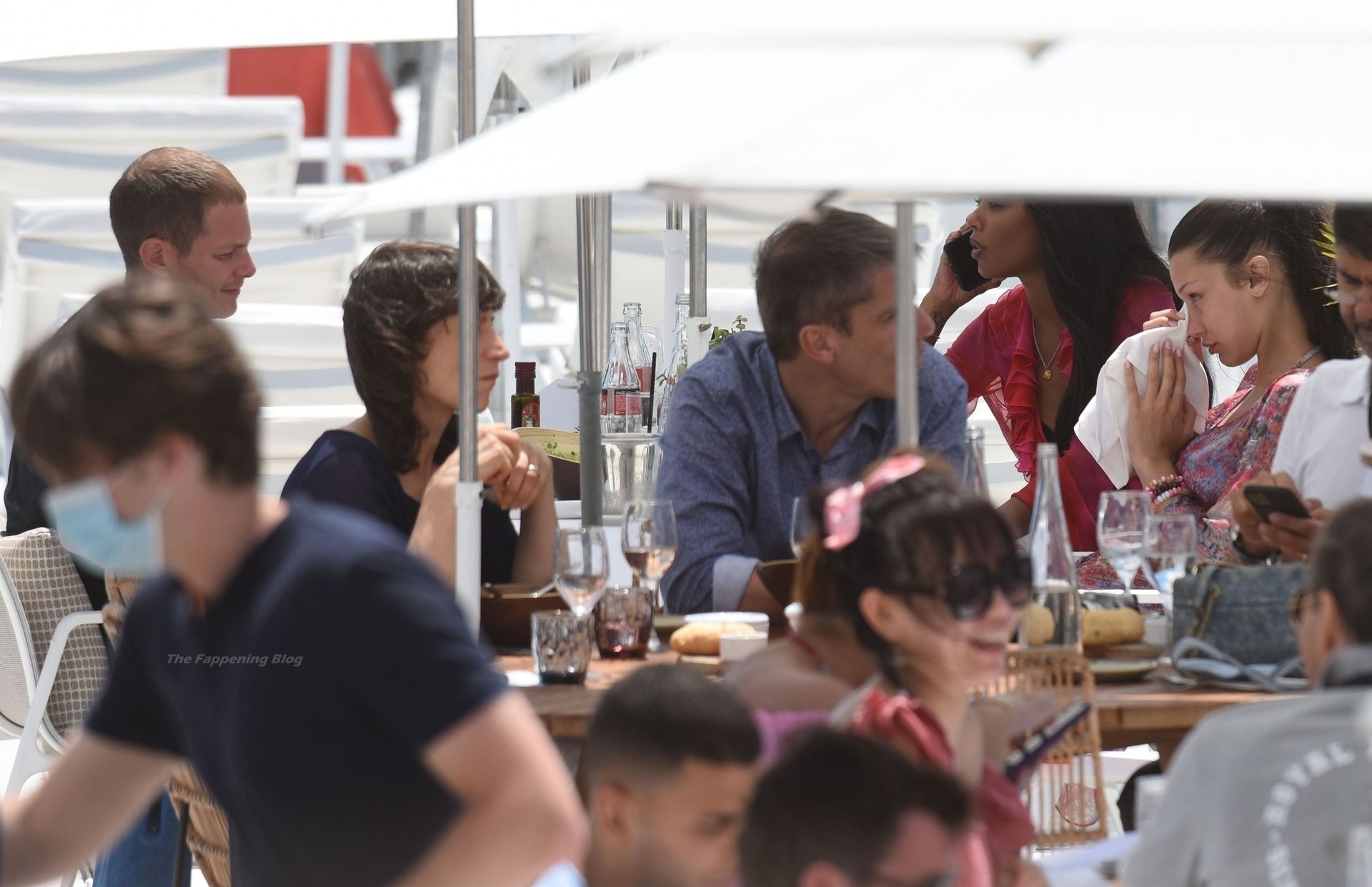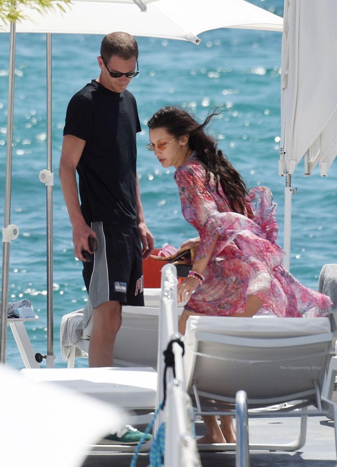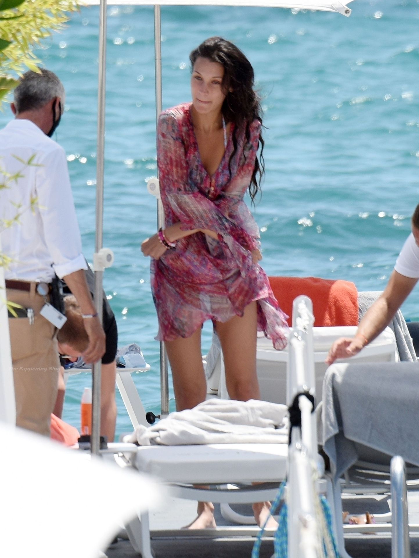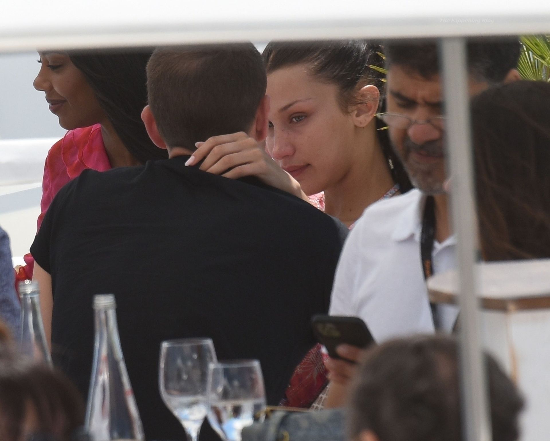 La modella Bella Hadid è stata vista durante il 74º Festival del Cinema di Cannes a Cannes, 11/07/2021. La modella sfoggia un look tipicamente elegante con un abito trasparente e décolleté rosa con tacco kitten mentre esce per pranzo.