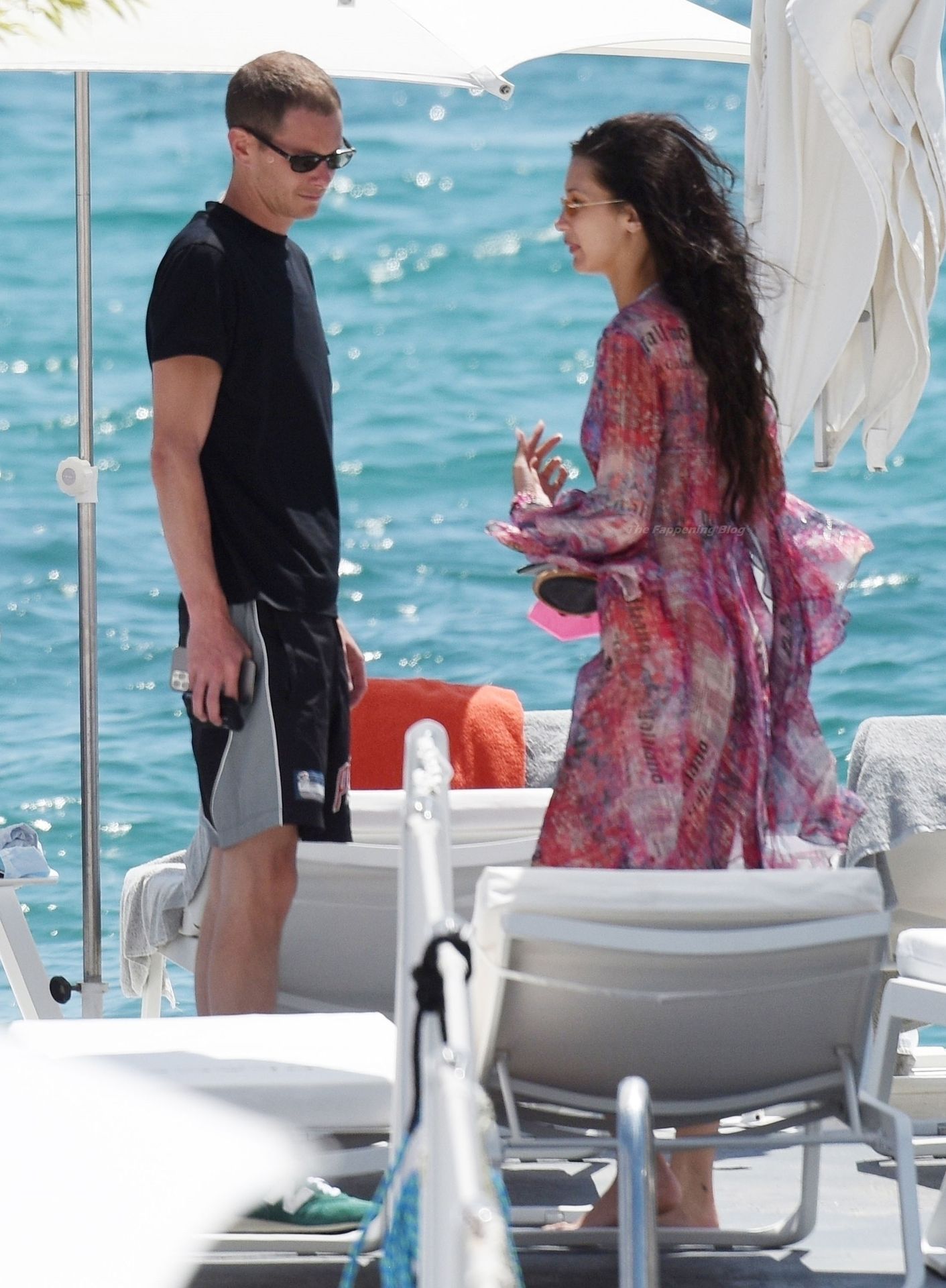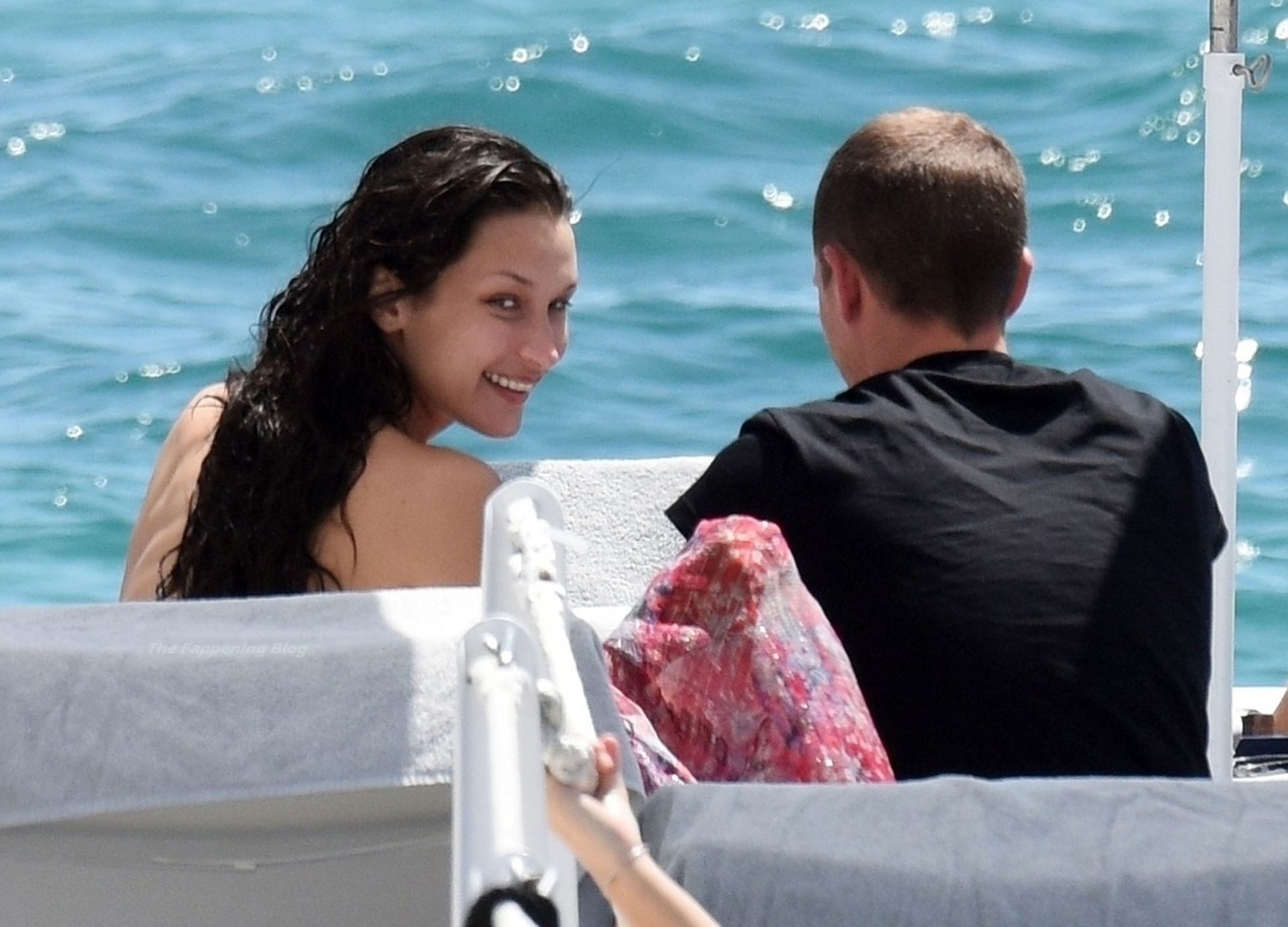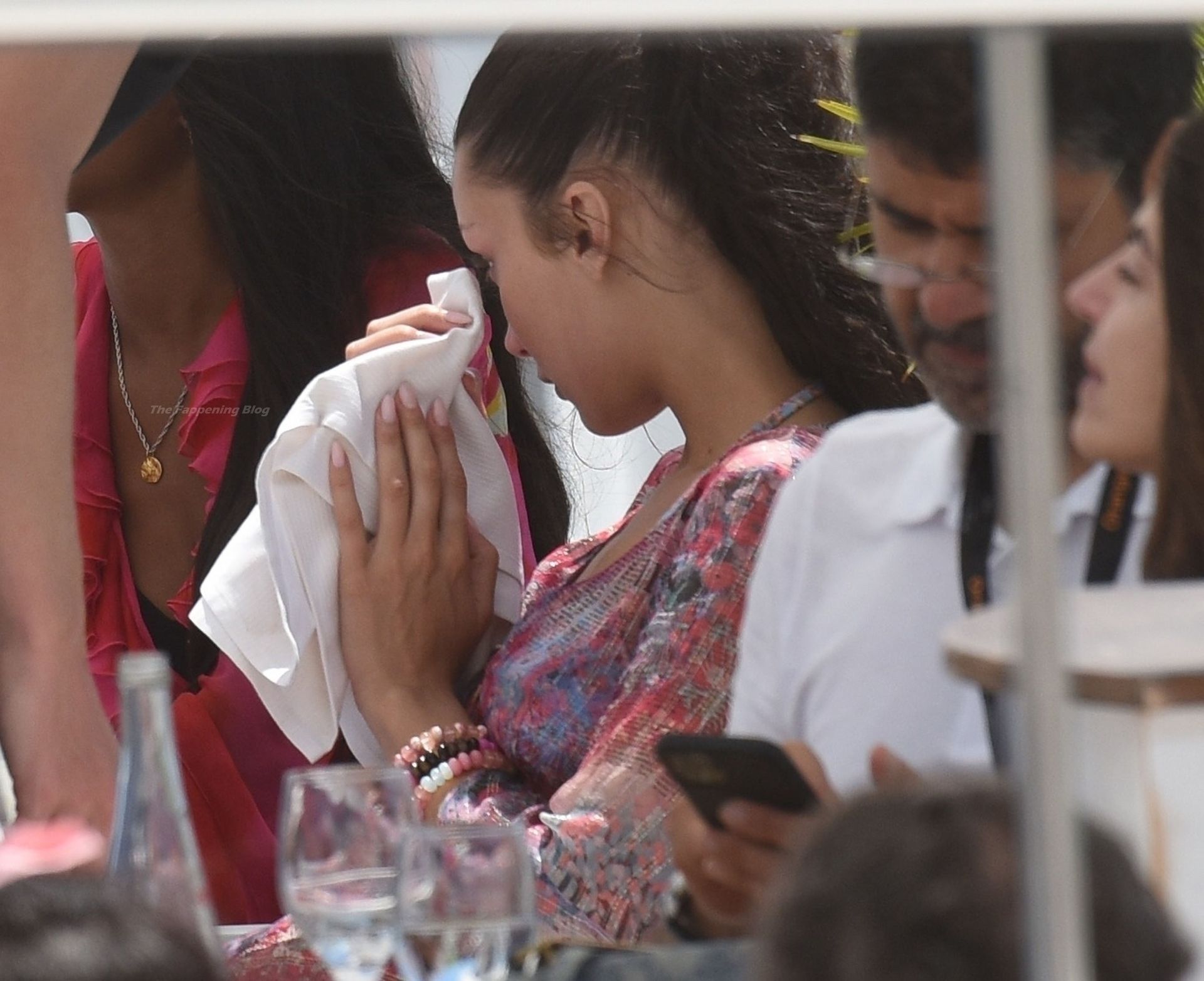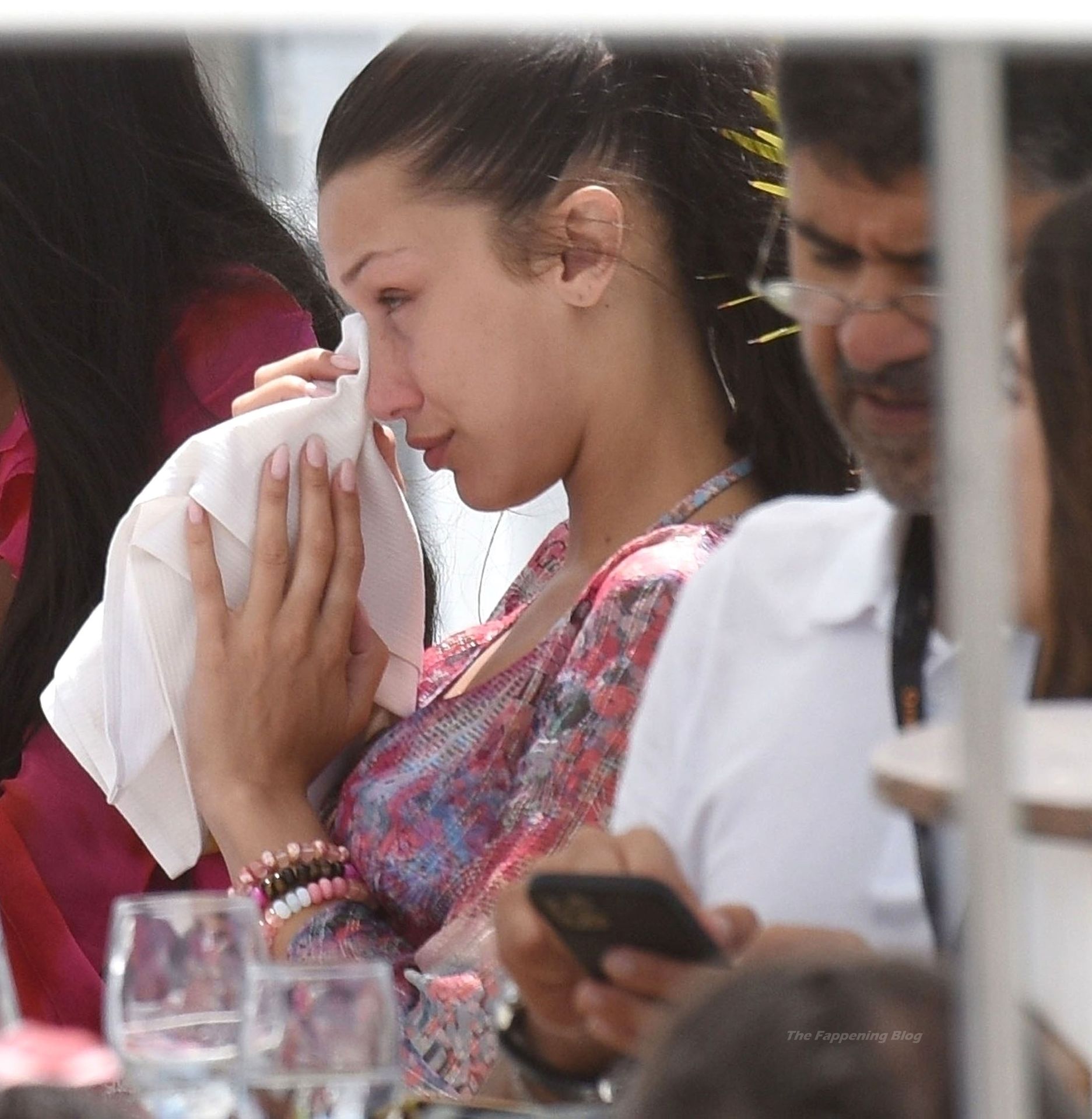 La modella Bella Hadid è stata vista durante il 74º Festival del Cinema di Cannes a Cannes, 11/07/2021. La modella sfoggia un look tipicamente elegante con un abito trasparente e décolleté rosa con tacco kitten mentre esce per pranzo.