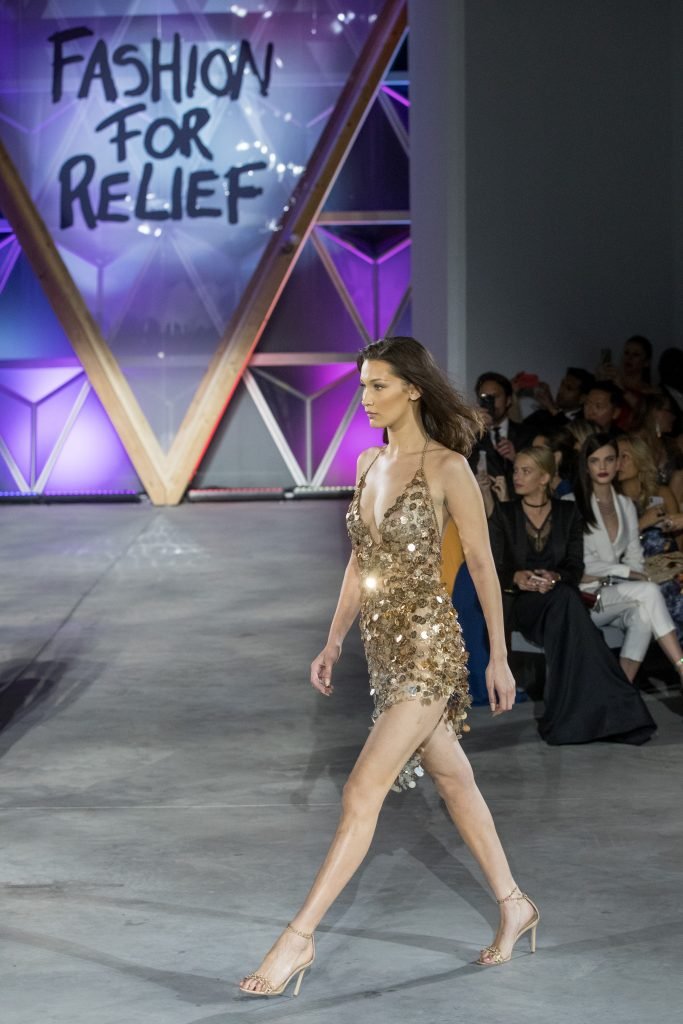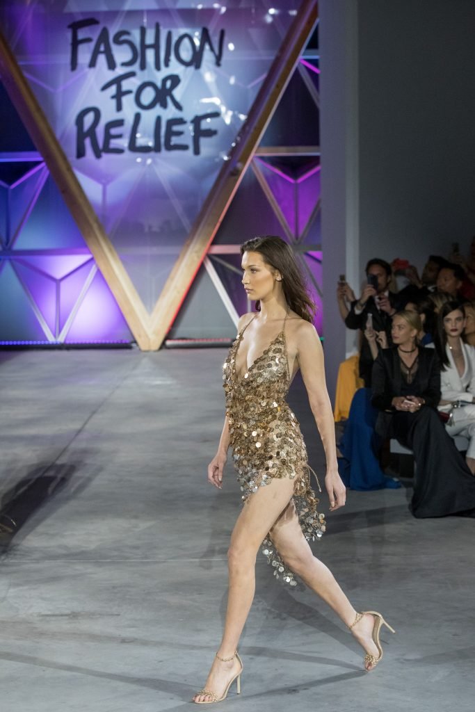 Bella Hadid sfila per lo spettacolo di moda Fashion For Relief durante il 71° Festival di Cannes a Cannes, 13/05/2018. La modella di 21 anni ha mostrato il suo seno con pasties e il sedere nudo.
