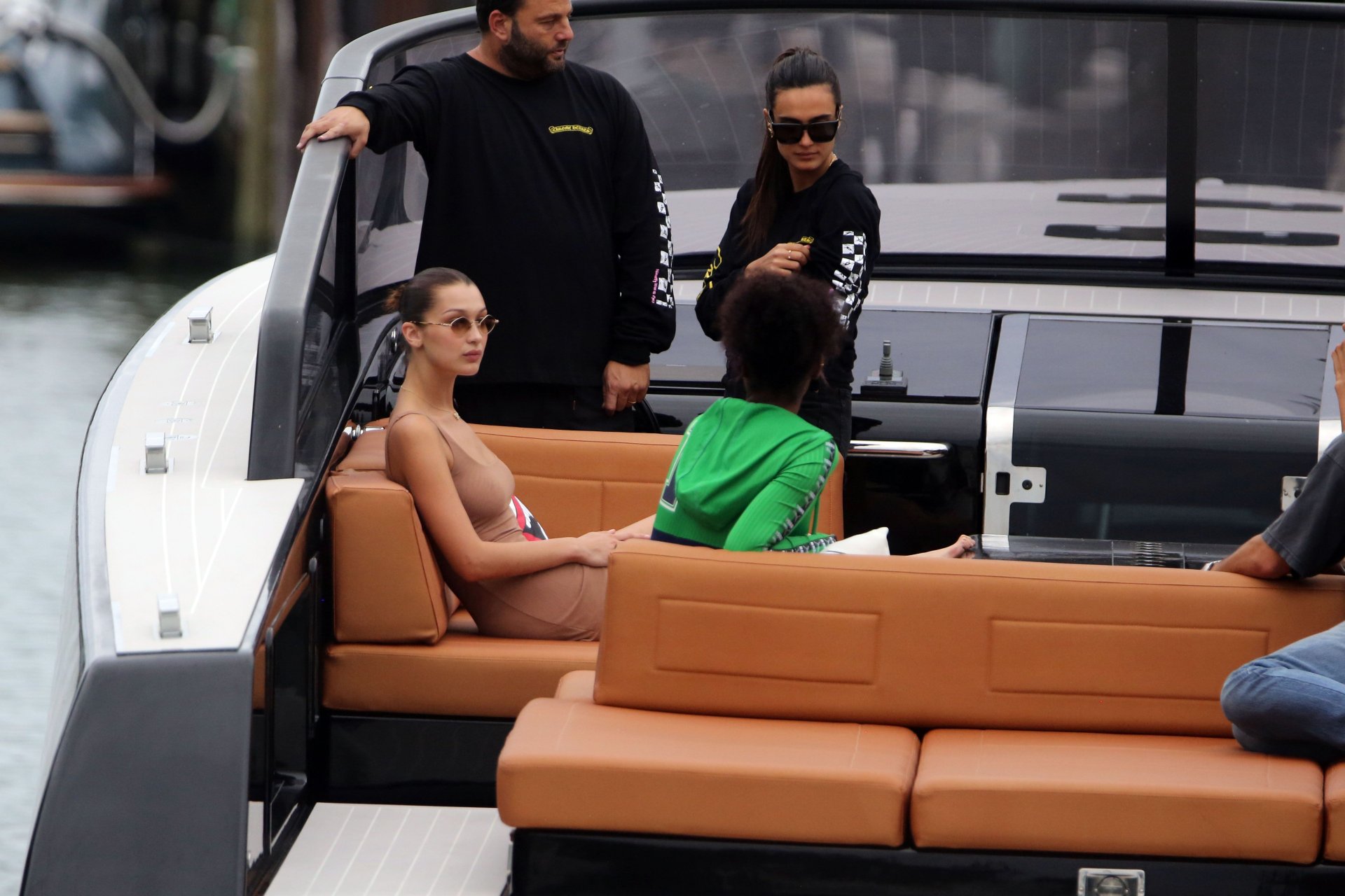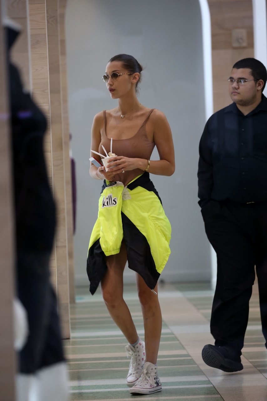 Modella Bella Hadid, 21 anni, indossa un vestito molto corto mentre fa shopping con Hailey Baldwin a Miami, 27/11/2017.