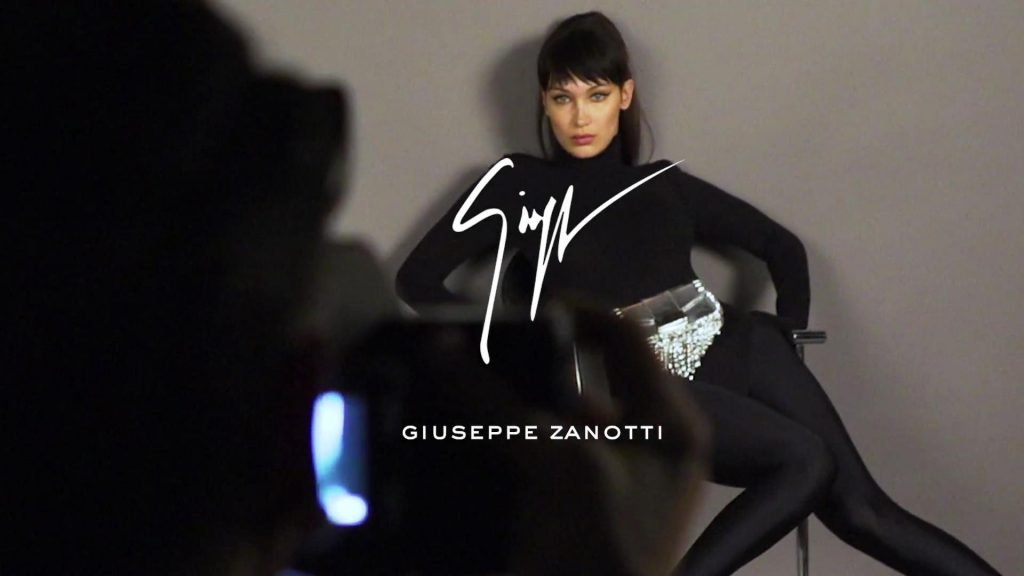 Model Bella Hadid posa per un nuovo servizio fotografico per la Collezione Primavera/Estate 2018 di Giuseppe Zanotti.
