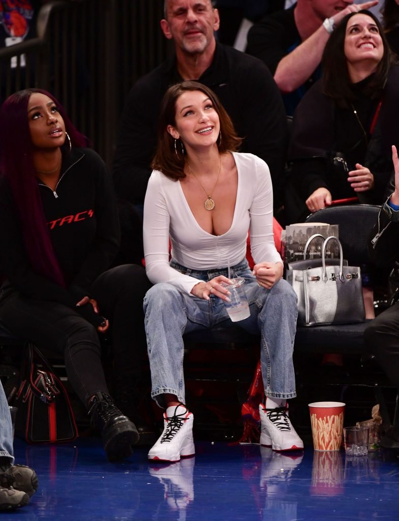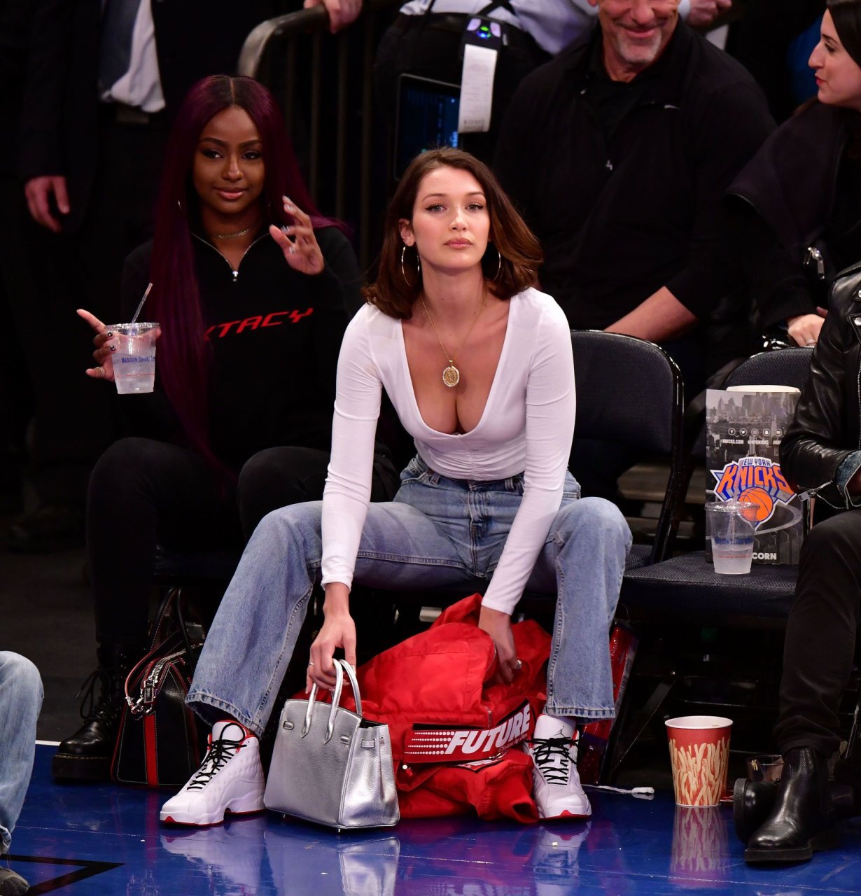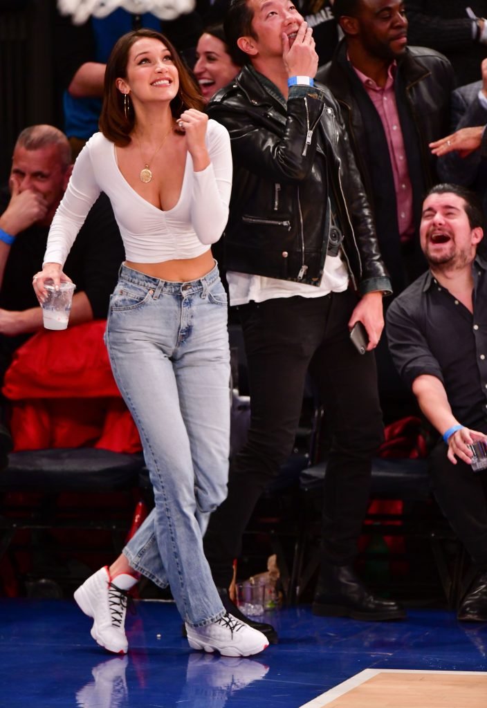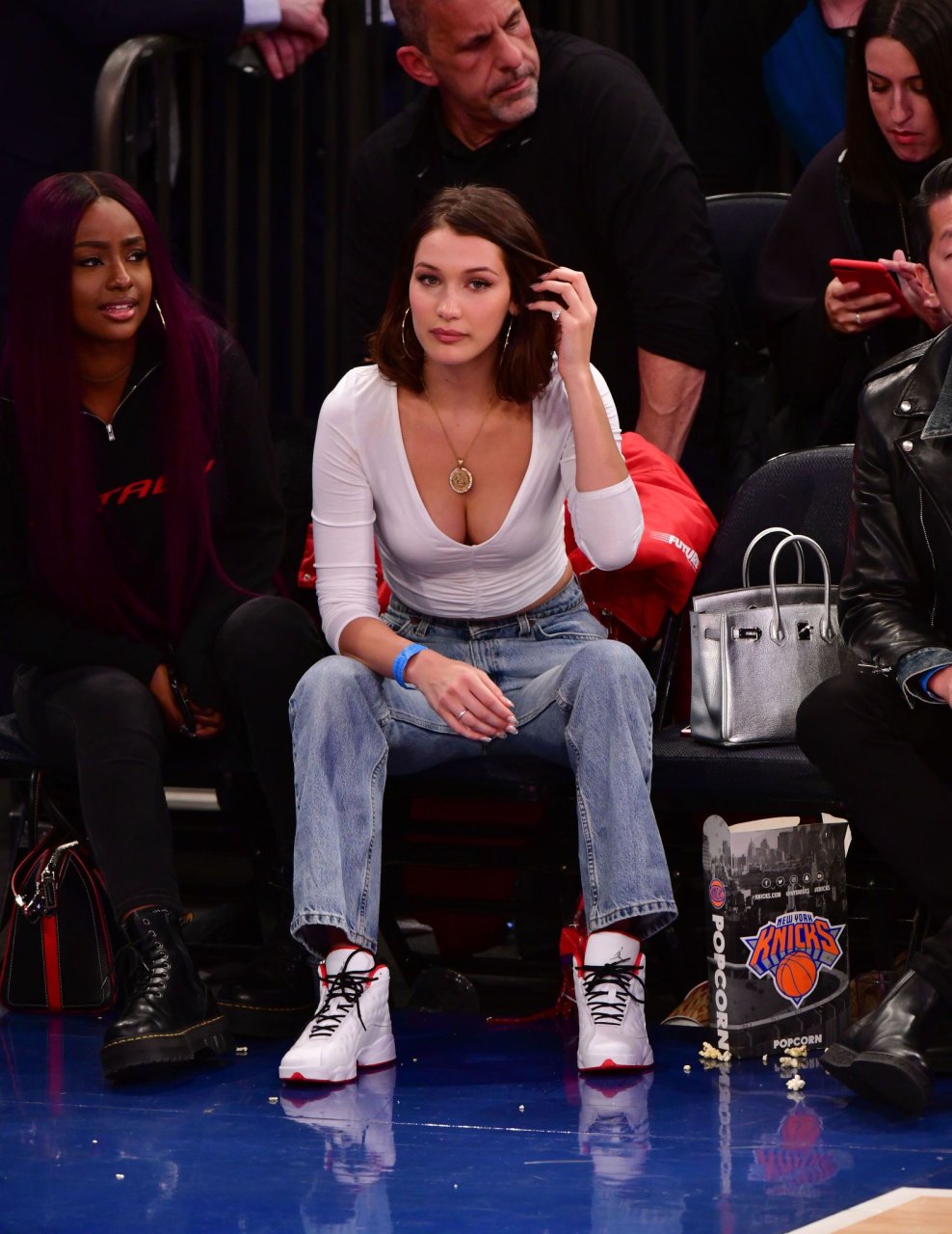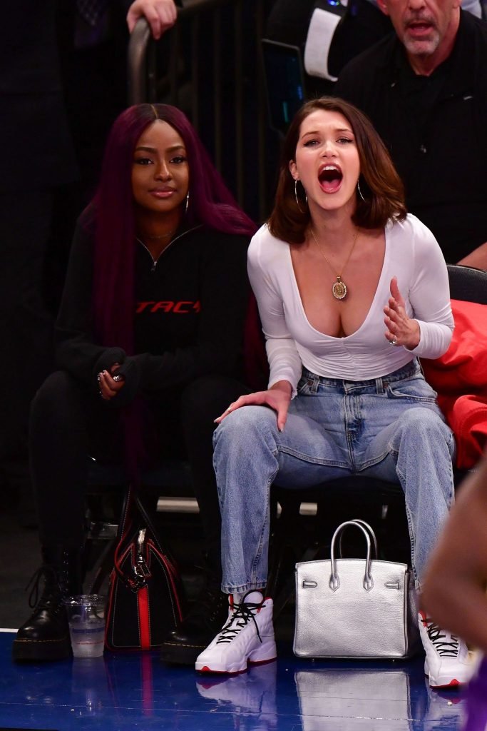 Bella Hadid partecipa alla partita New York Knicks contro Los Angeles Lakers a NYC, 12/12/2017. Isabella Hadid è una modella americana, attrice, star della televisione reality/online. Età – 21.