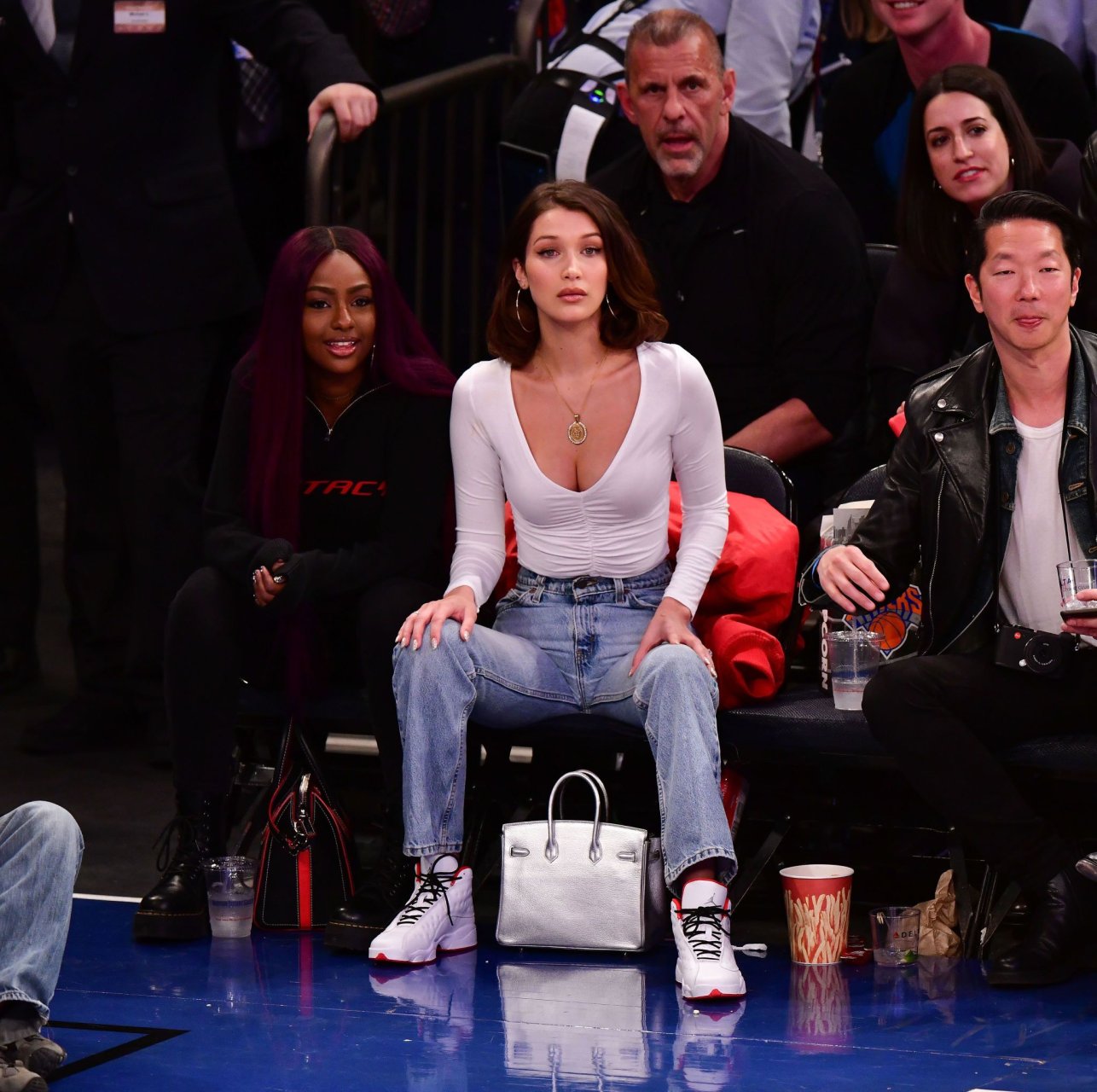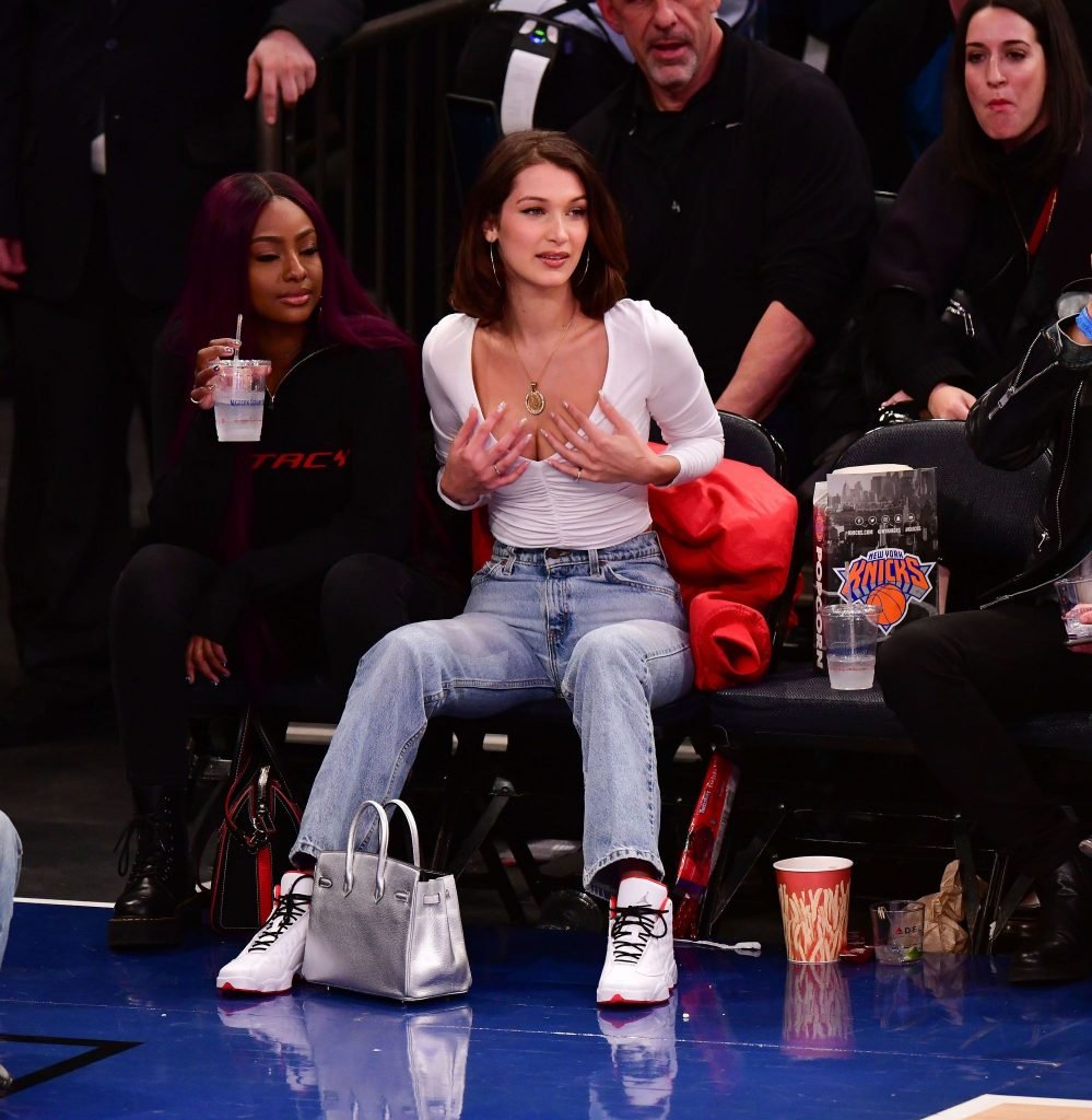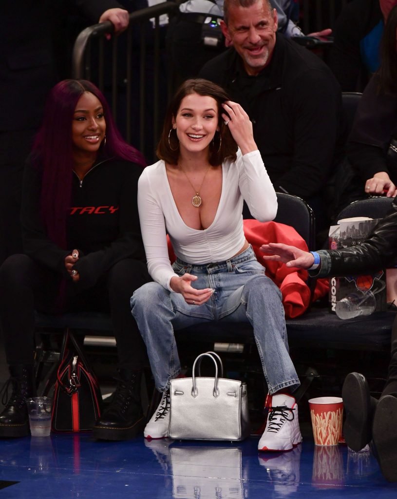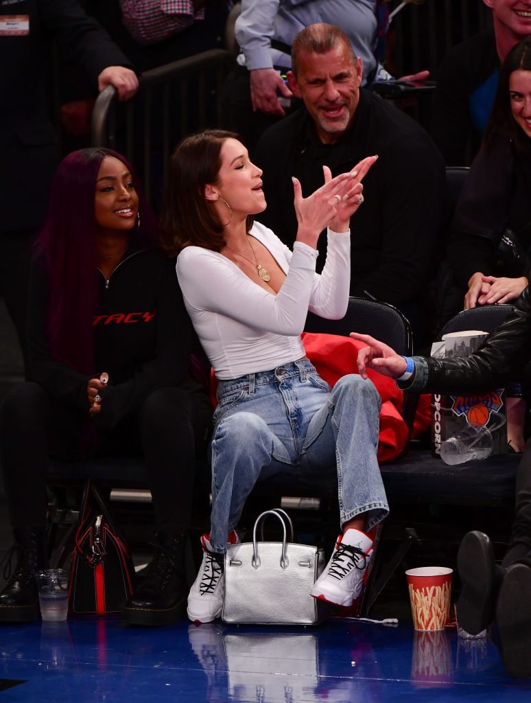 Bella Hadid partecipa alla partita New York Knicks contro Los Angeles Lakers a NYC, 12/12/2017. Isabella Hadid è una modella americana, attrice, star della televisione reality/online. Età – 21.