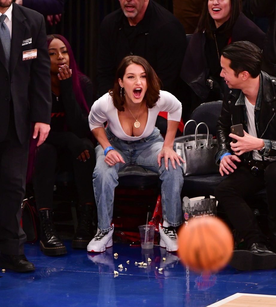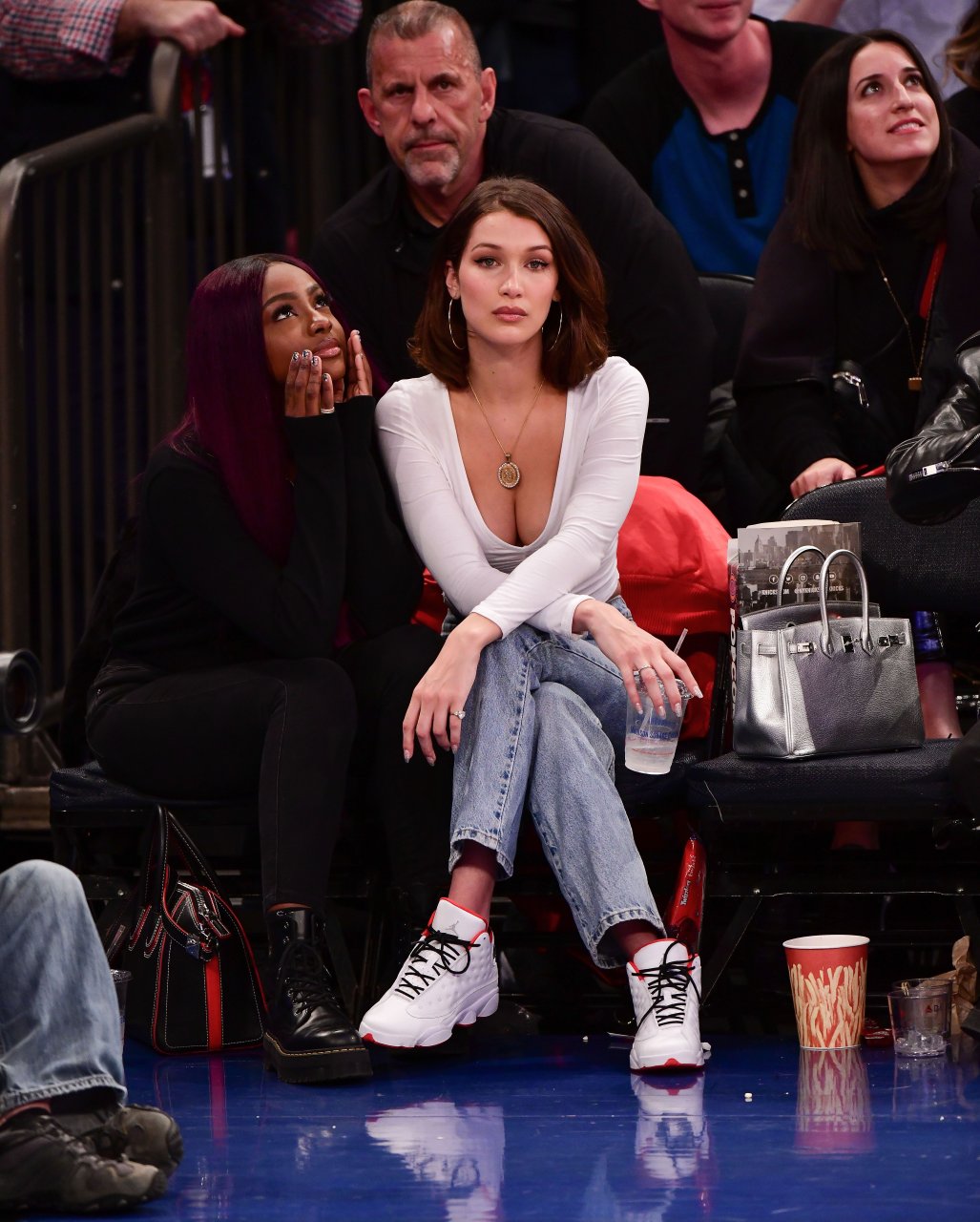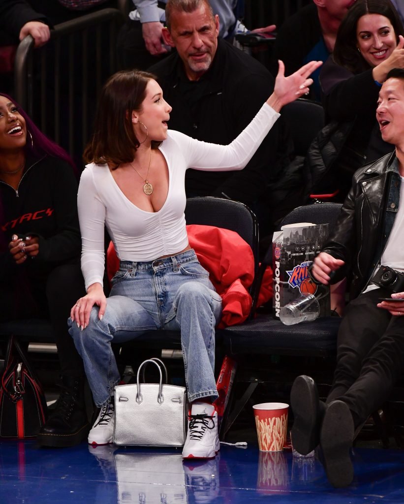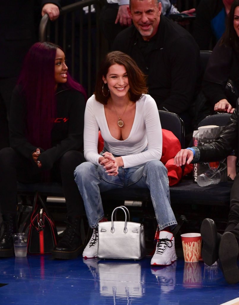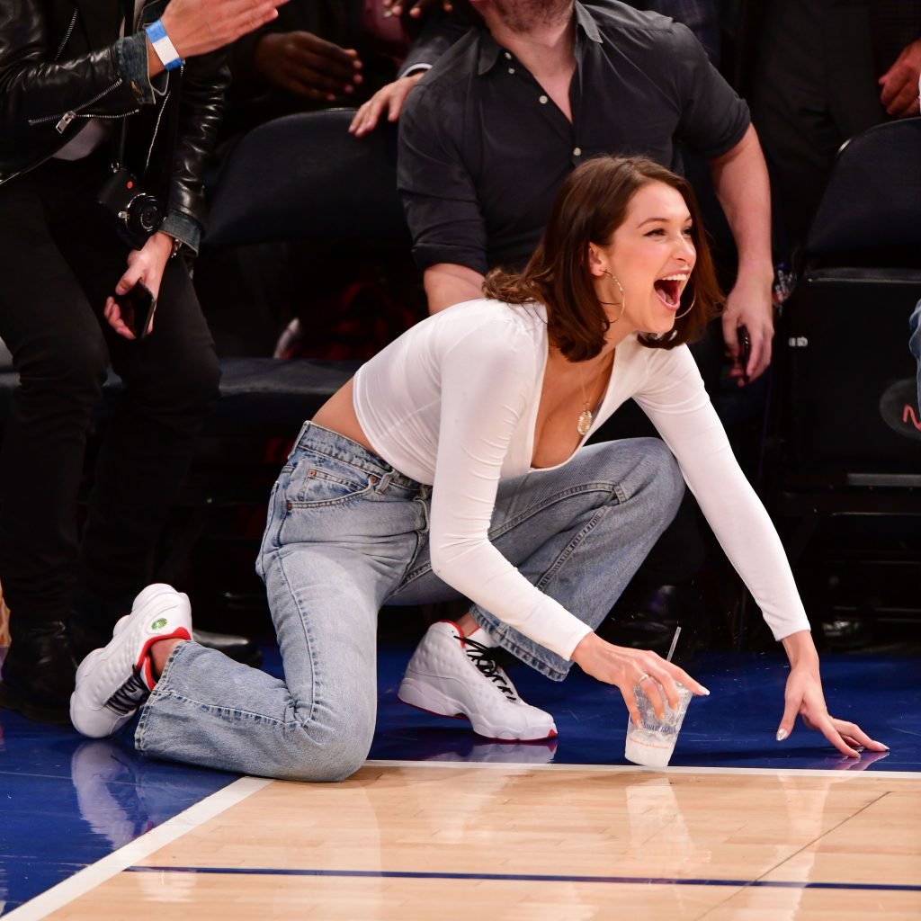 Bella Hadid partecipa alla partita New York Knicks contro Los Angeles Lakers a NYC, 12/12/2017. Isabella Hadid è una modella americana, attrice, star della televisione reality/online. Età – 21.