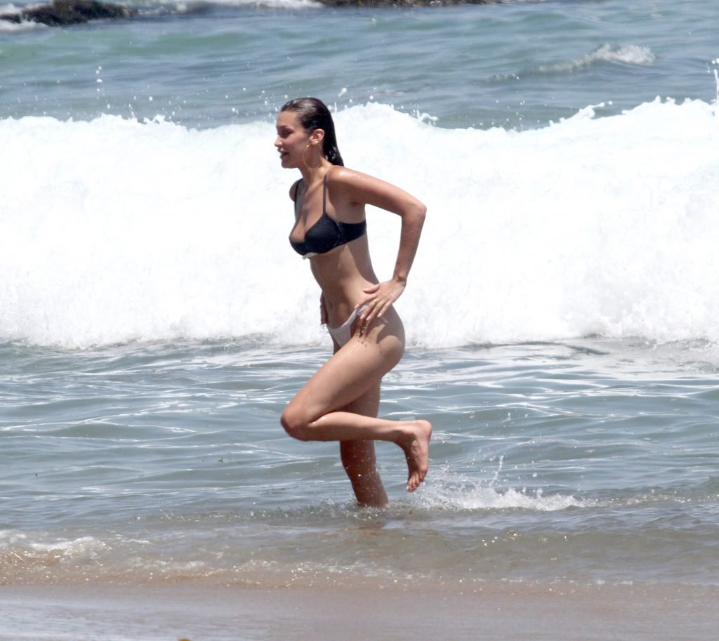 Bella Hadid trascorre le sue vacanze estive a Malibu, 07/10/2018. Naturalmente, i paparazzi ogni giorno osservano la modella sulla spiaggia. Hanno scattato le foto di Bella dopo il bagno e mostrano la sua figura senza effetti.