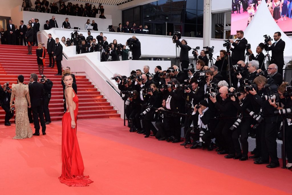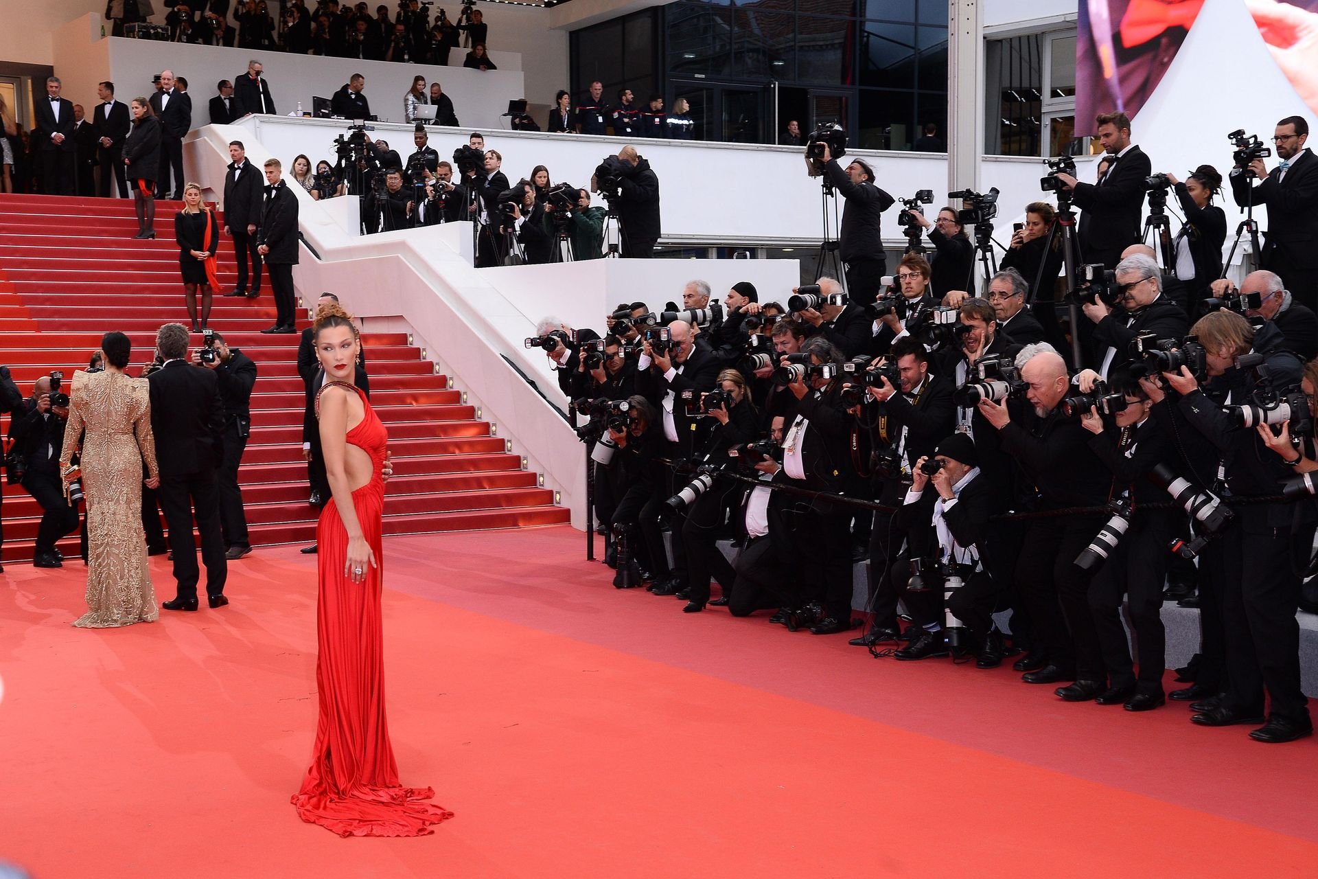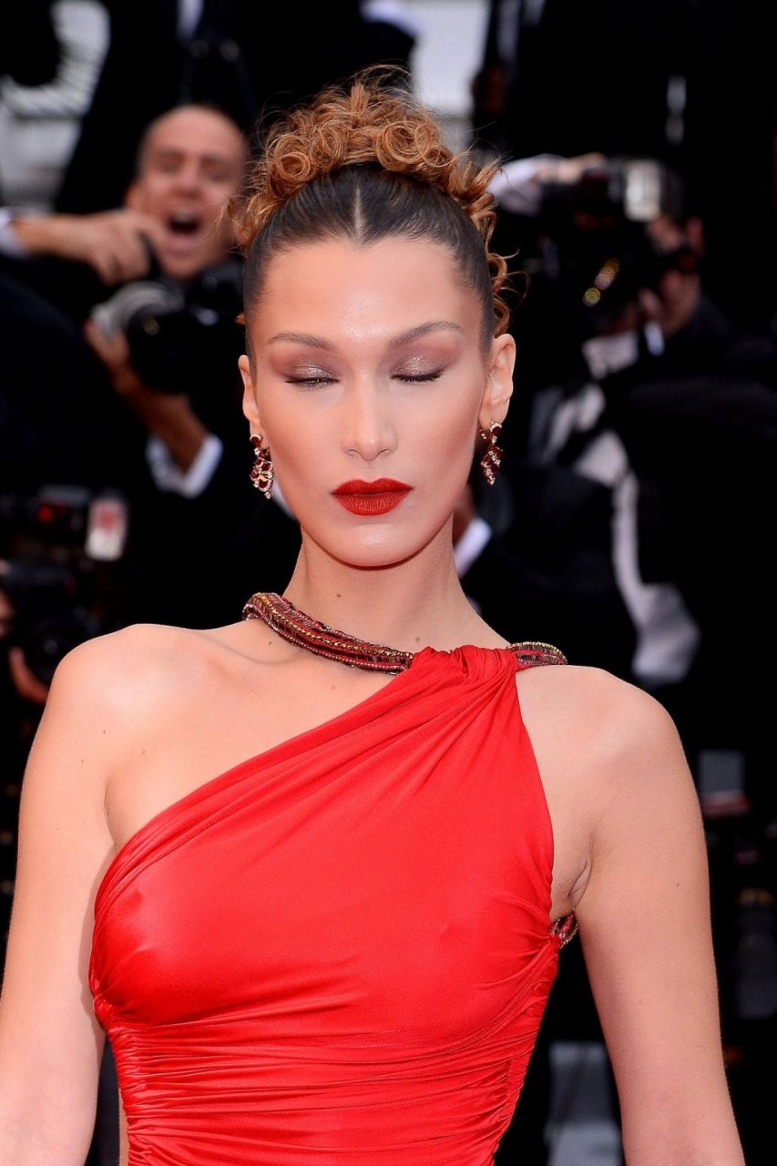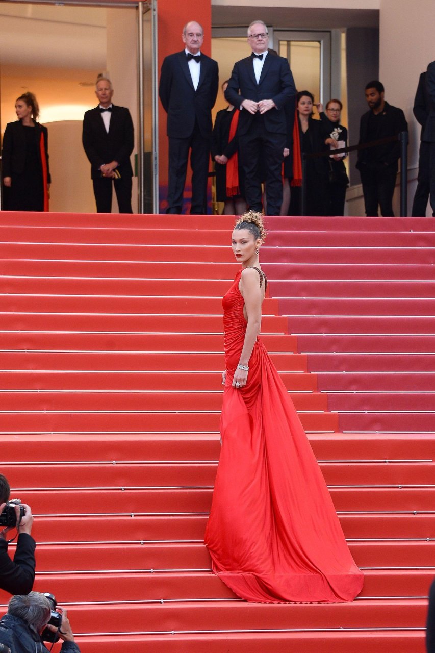 La modella Bella Hadid è stata vista con un abito rosso durante la prima di “Dolor Y Gloria” al 72° Festival di Cannes a Cannes, Francia, 17/05/2019.