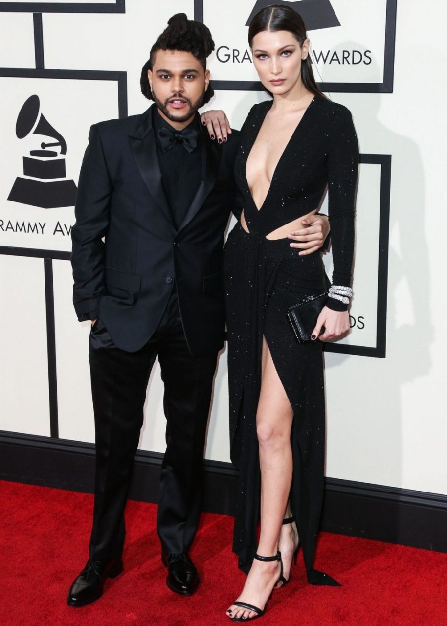 Il cantante The Weeknd (Abel Makkonen Tesfaye) e la fidanzata/modella Bella Hadid arrivano alla 58ª edizione dei GRAMMY Awards tenutasi al Staples Center il 15 febbraio 2016 a Los Angeles, California.