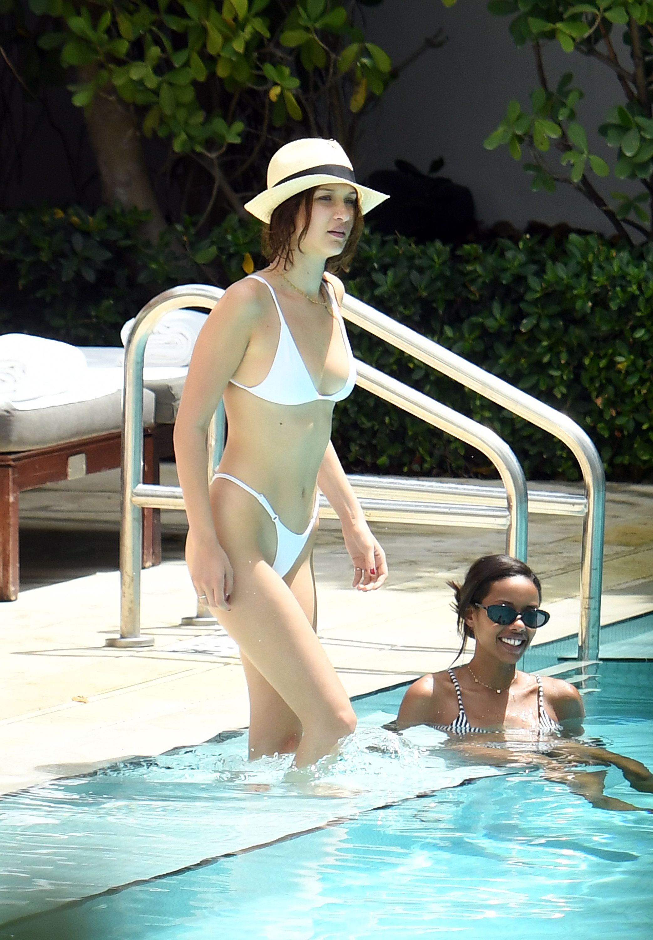 Bella Hadid si gode una giornata in piscina in bikini bianco con amici a Miami, 28/04/2017. Bella Hadid è una modella e attrice americana. Età – 20 (9 ottobre 1996).