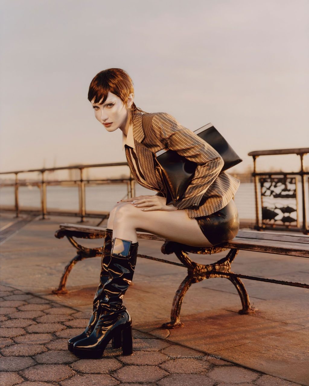 Modella e star di The Fappening Bella Hadid mostra un po’ di pelle e le sue gambe sexy in un servizio fotografico di Luke Gilford per l’edizione Primavera 2021 di V Magazine.