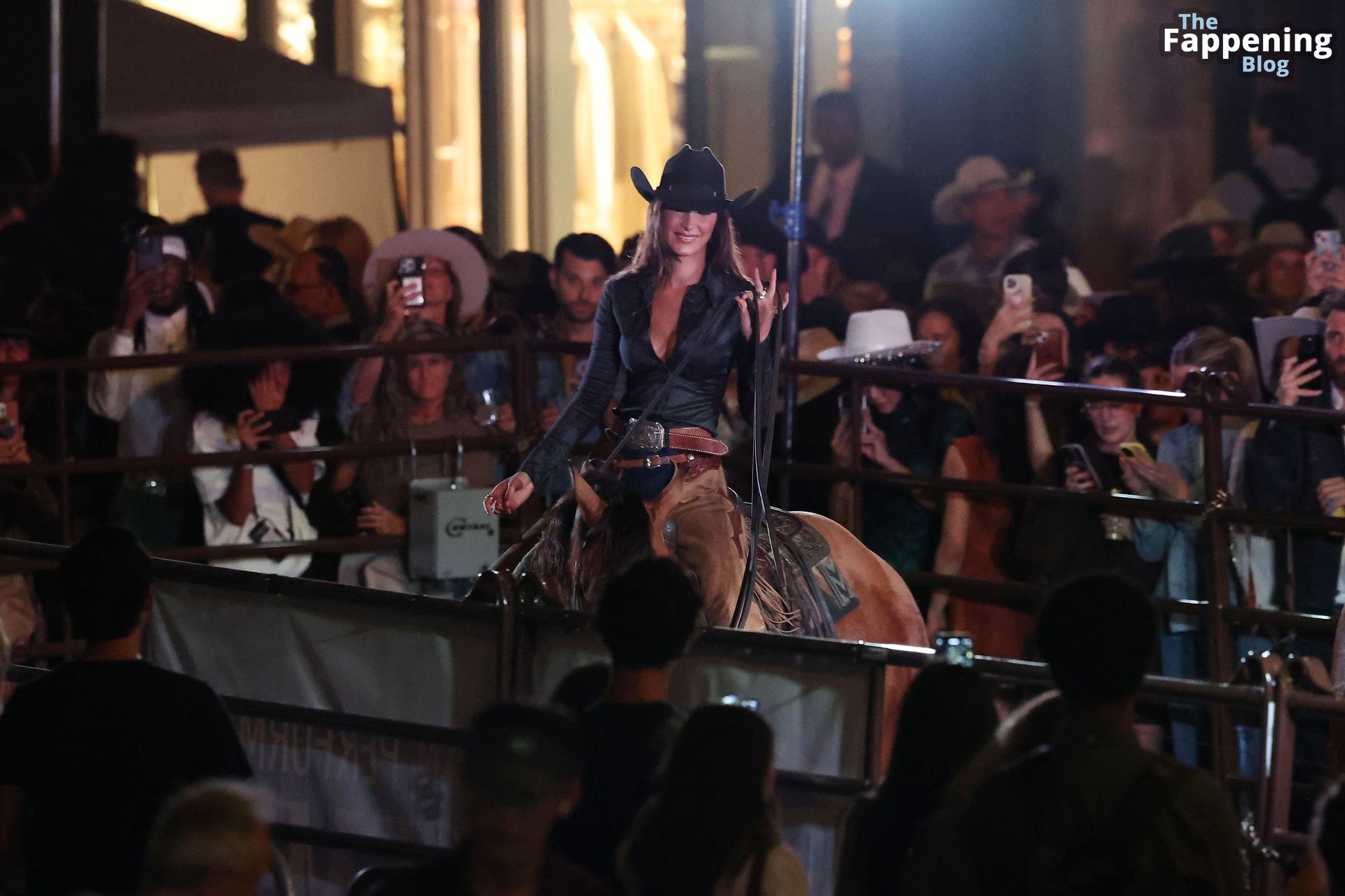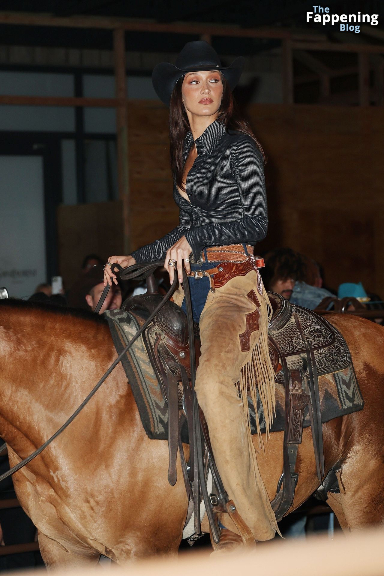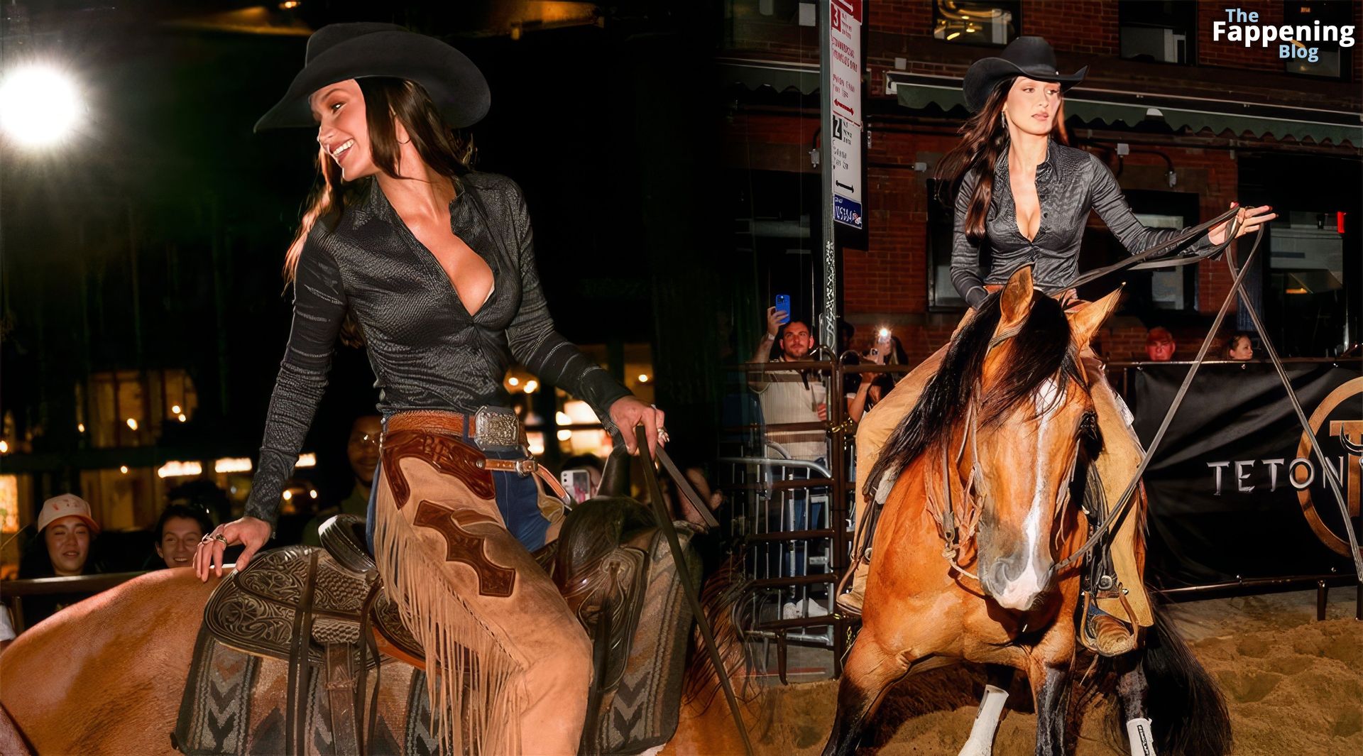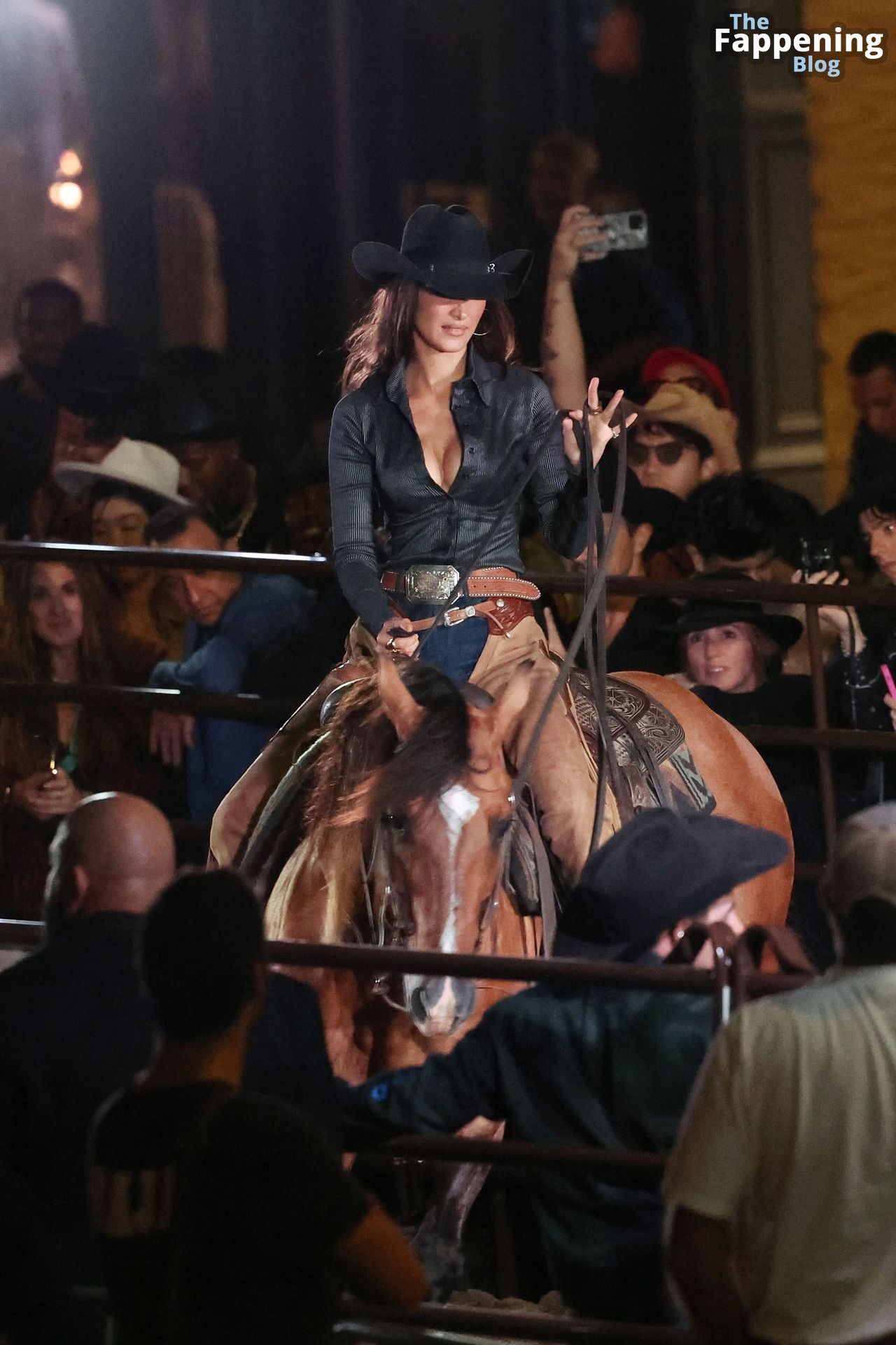 Bella Hadid mette in mostra il suo décolleté in un sensuale outfit da cowgirl all