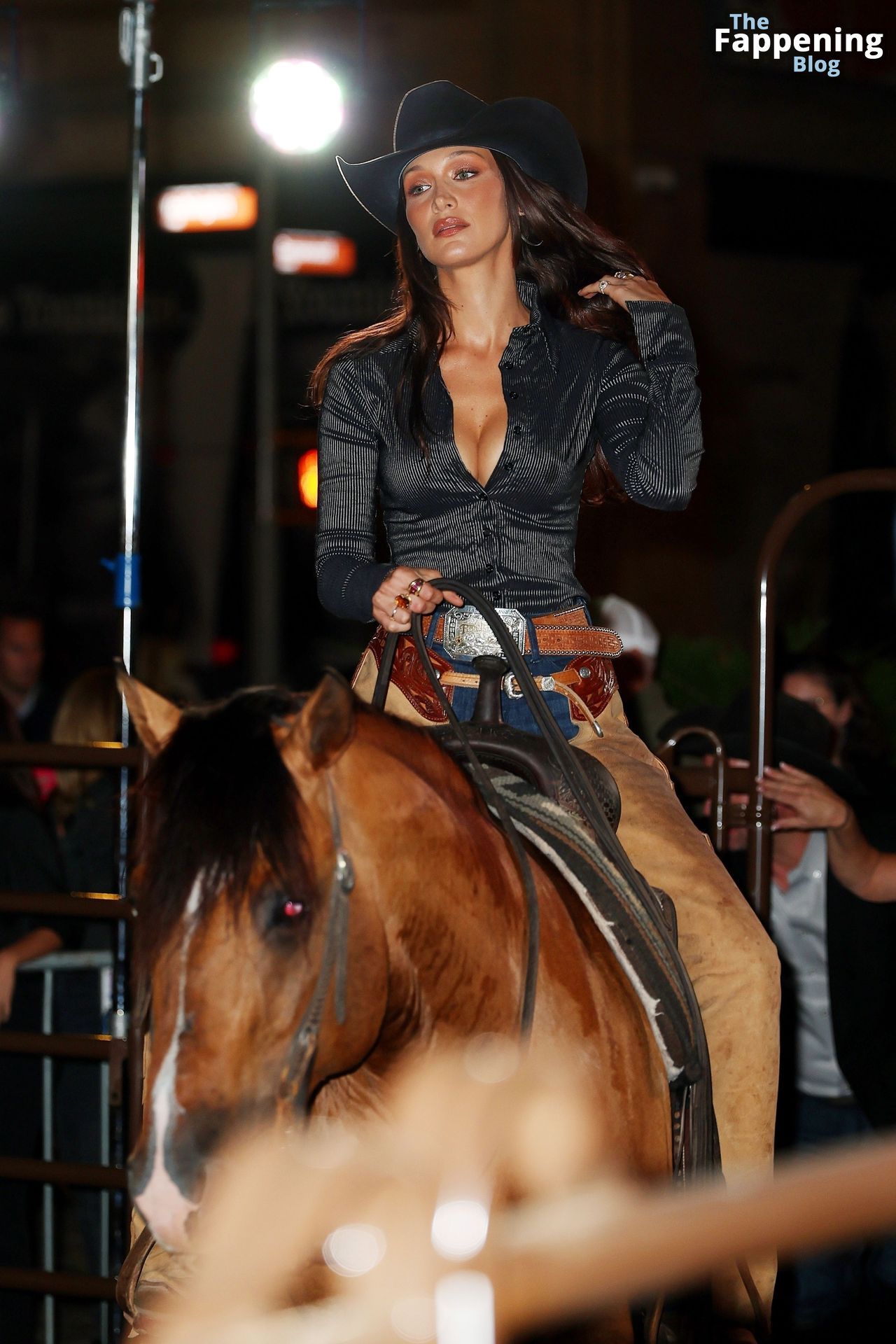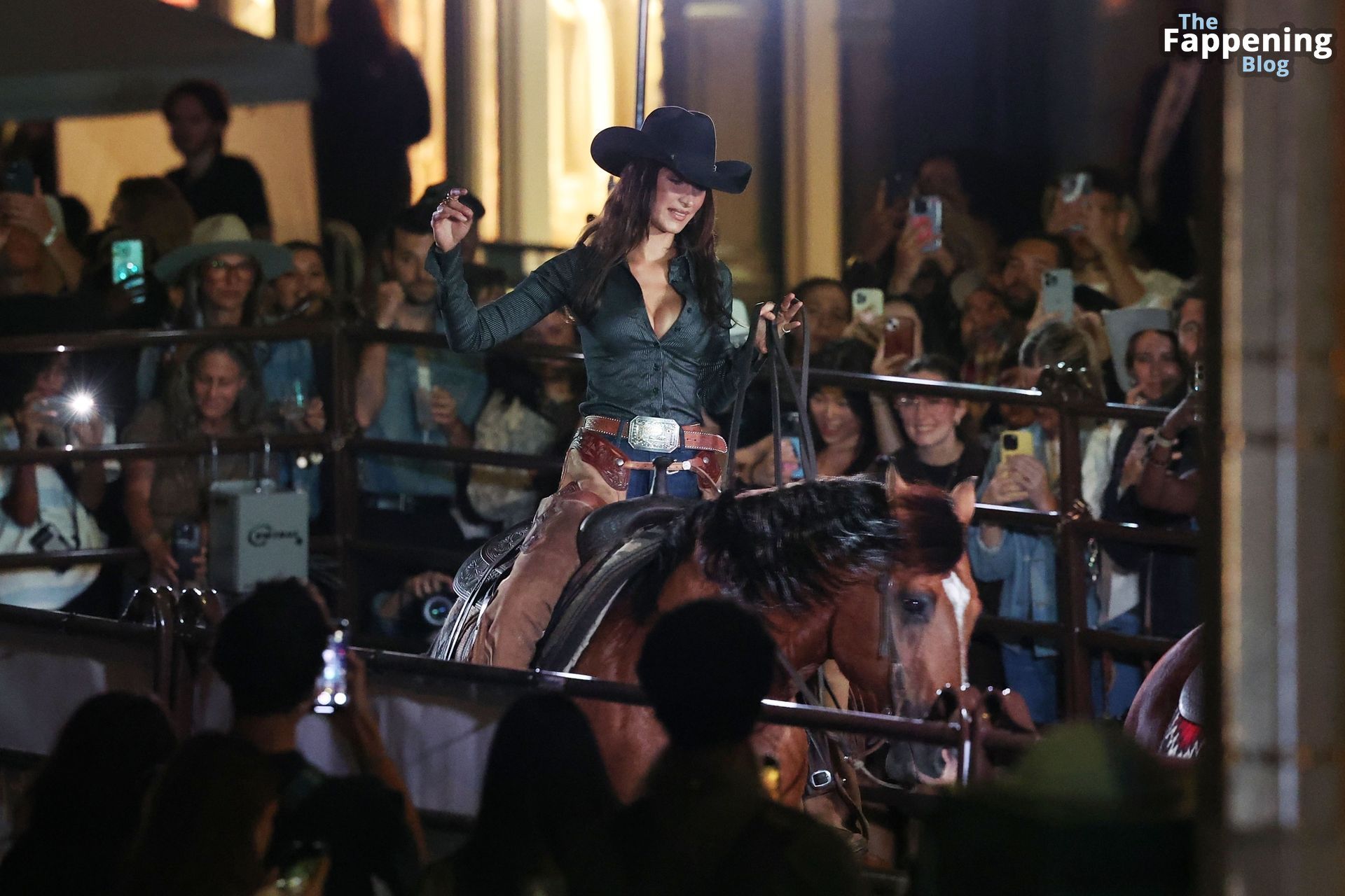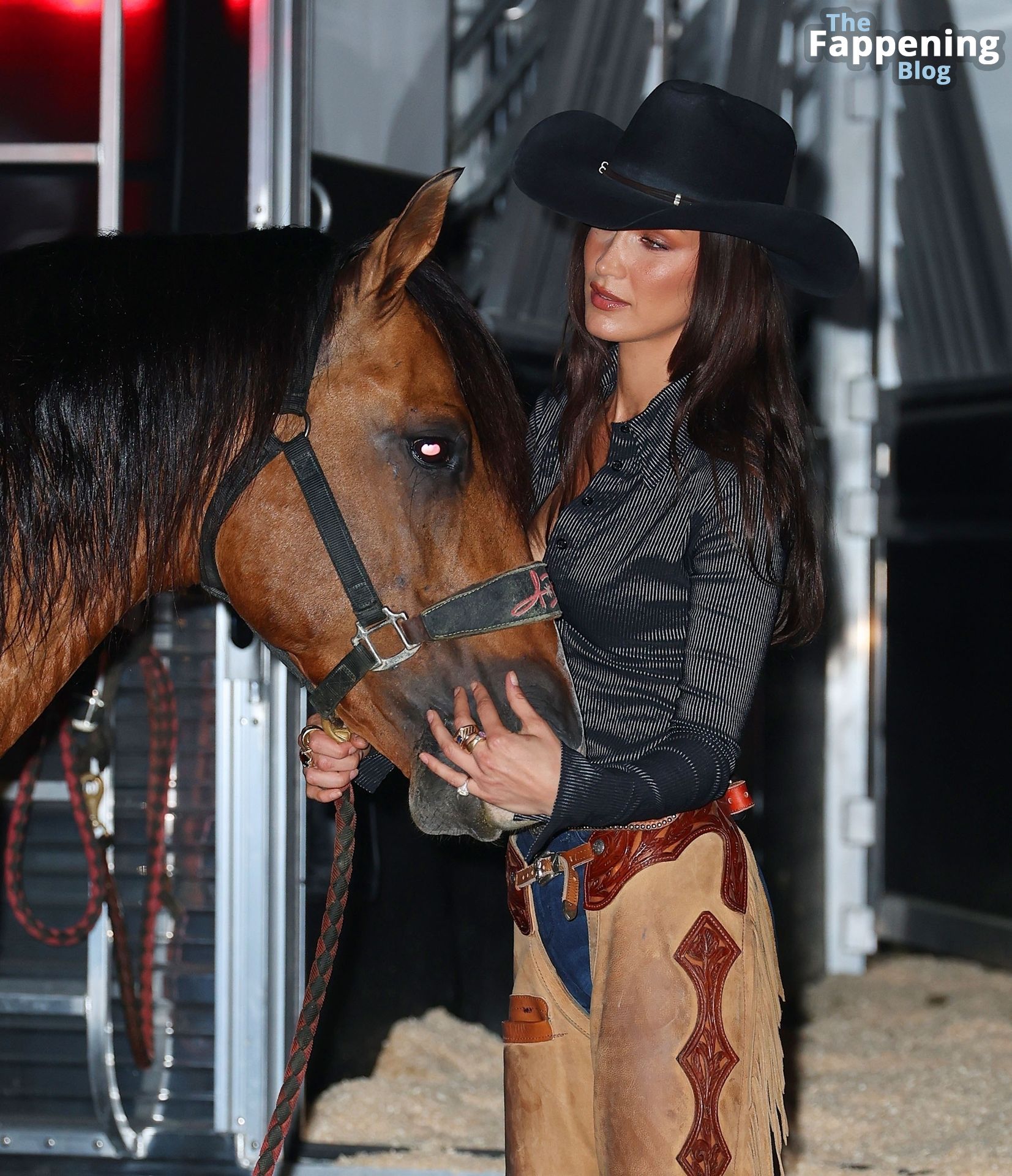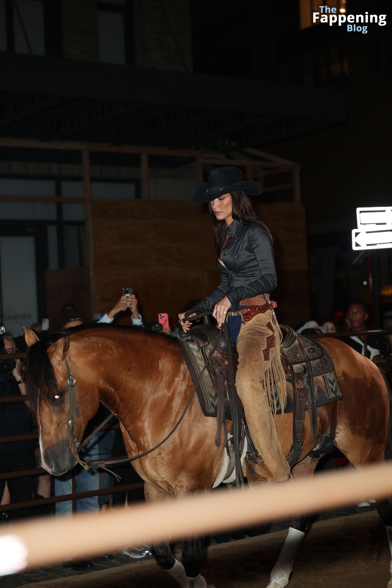 Bella Hadid mette in mostra il suo décolleté in un sensuale outfit da cowgirl all