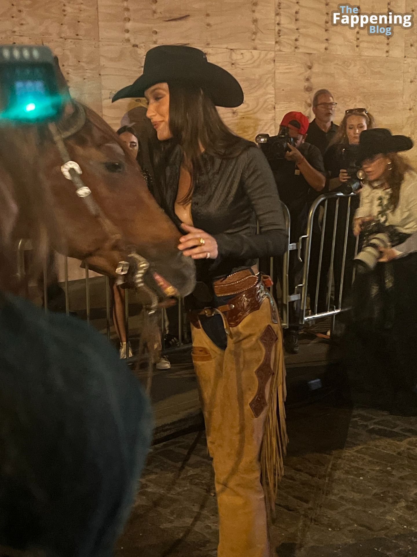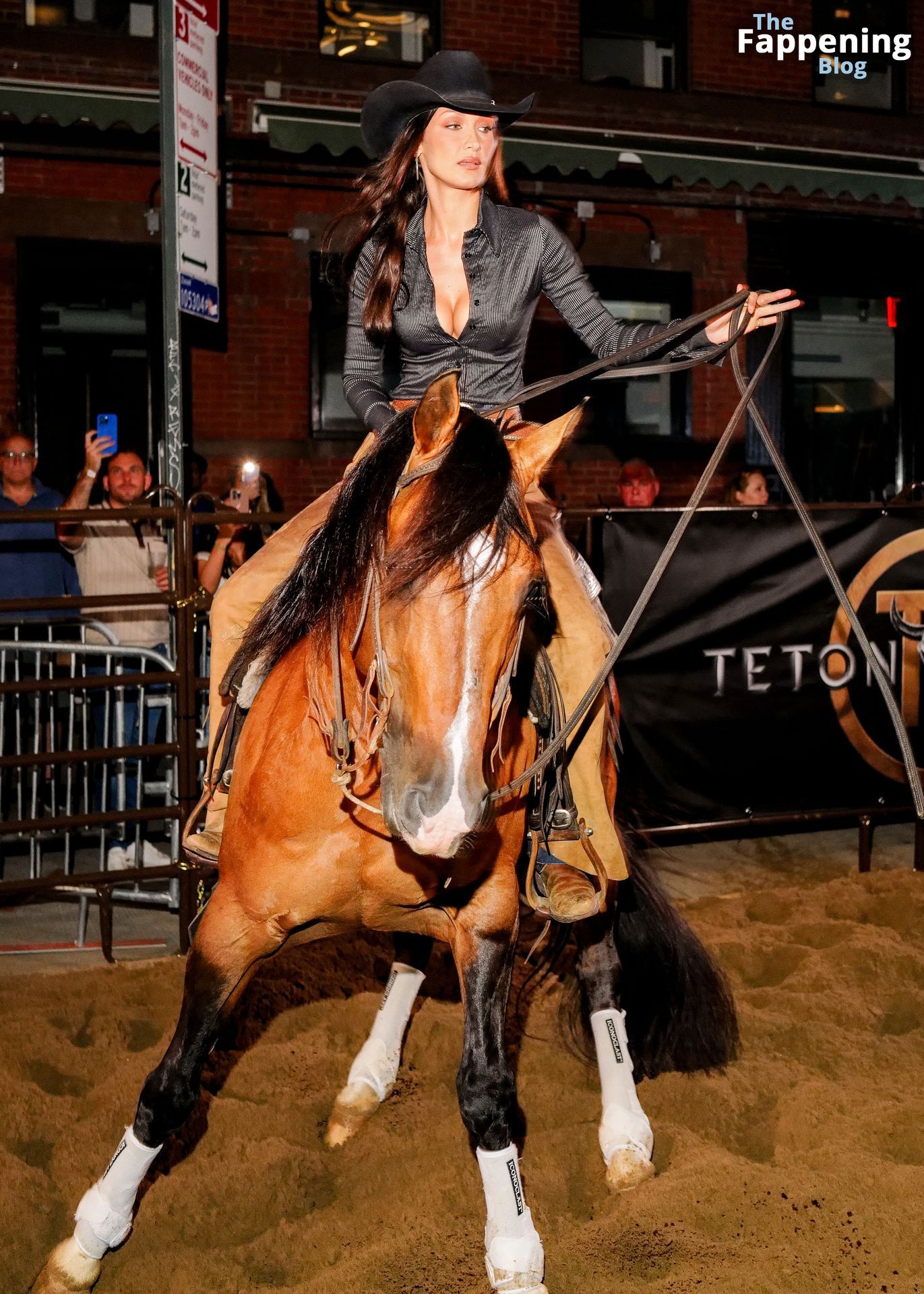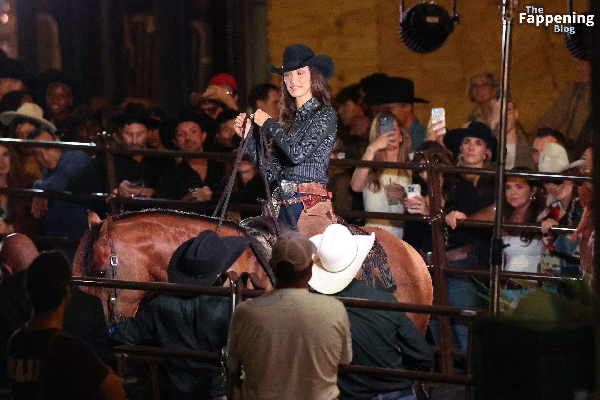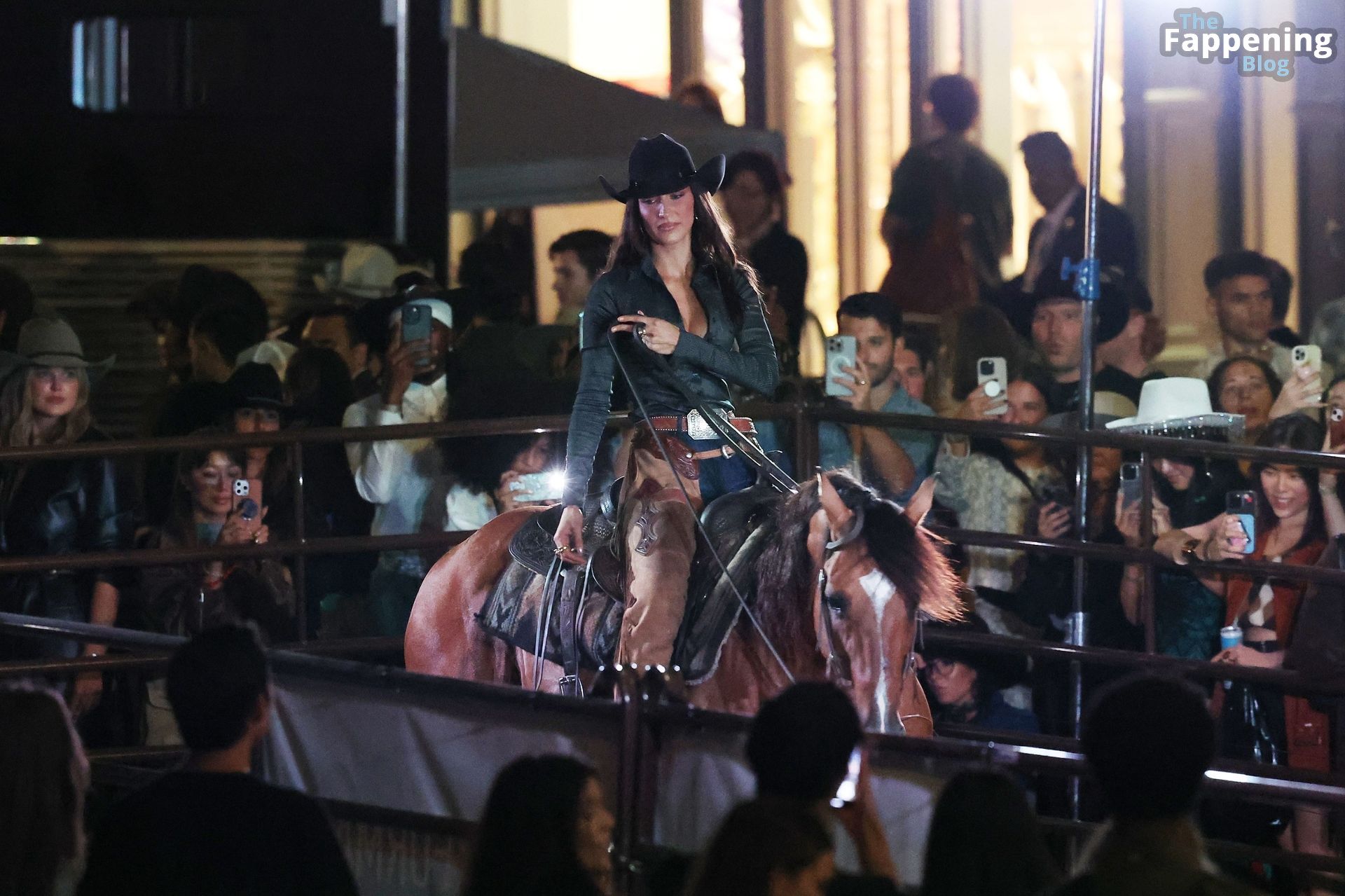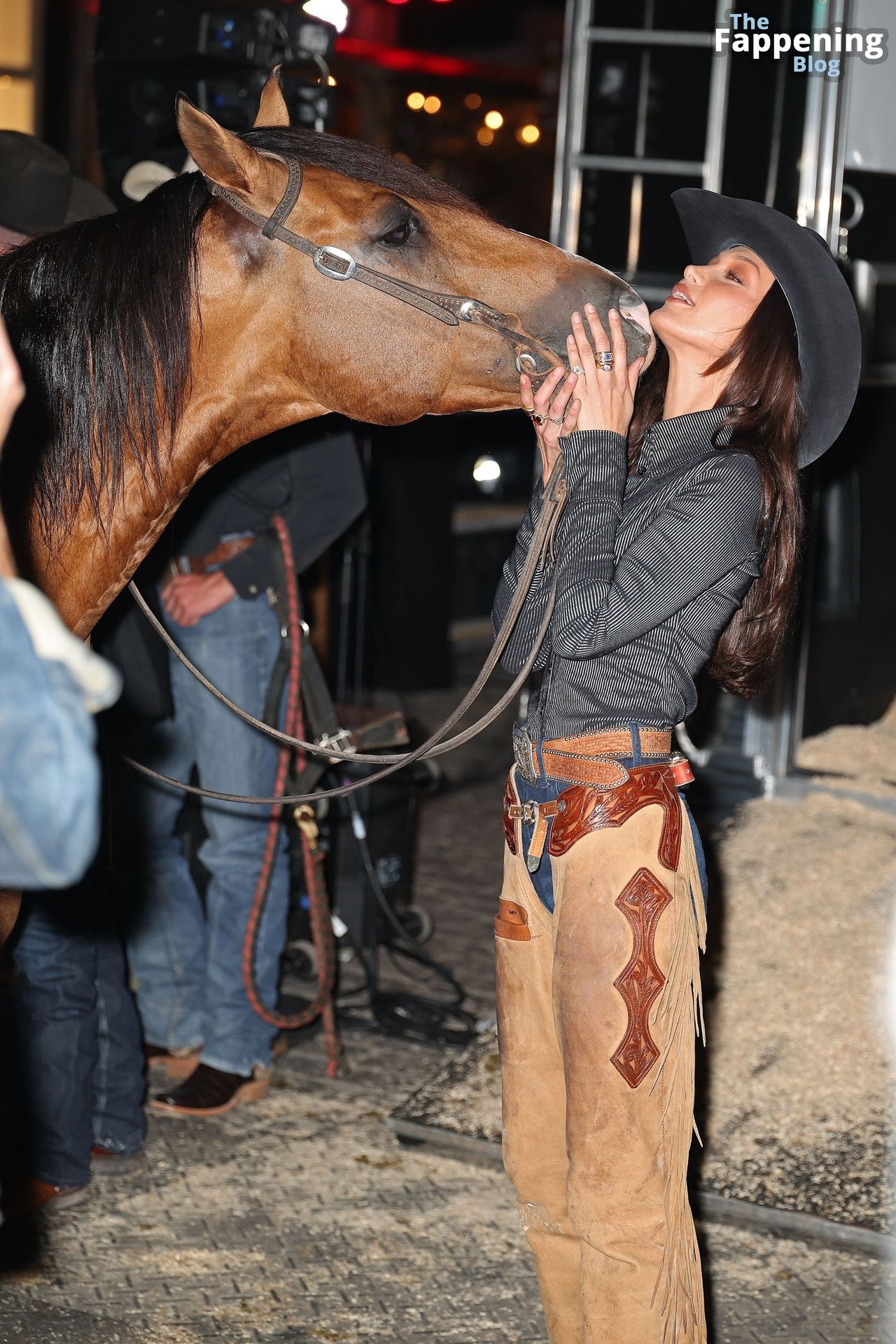 Bella Hadid mette in mostra il suo décolleté in un sensuale outfit da cowgirl all