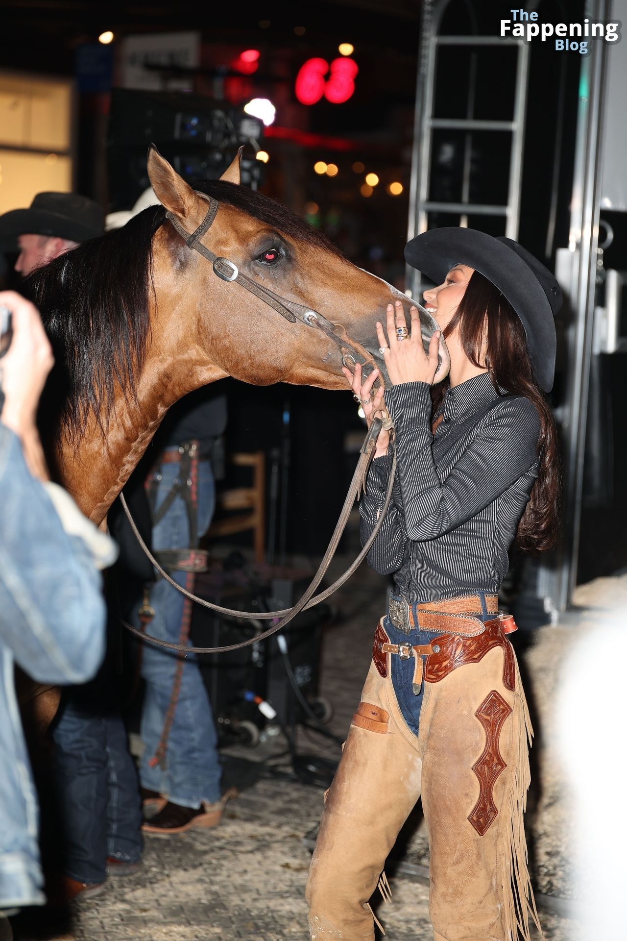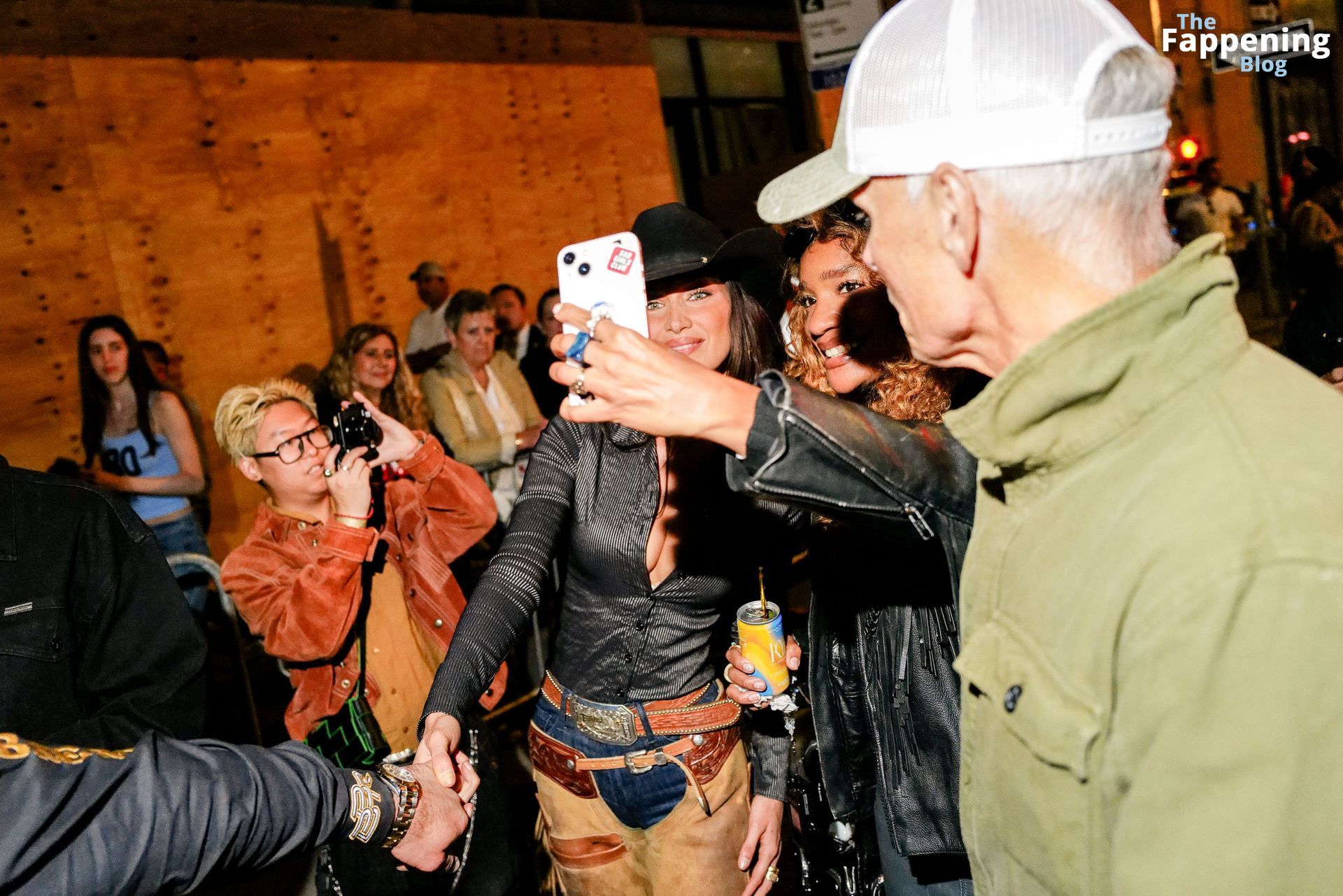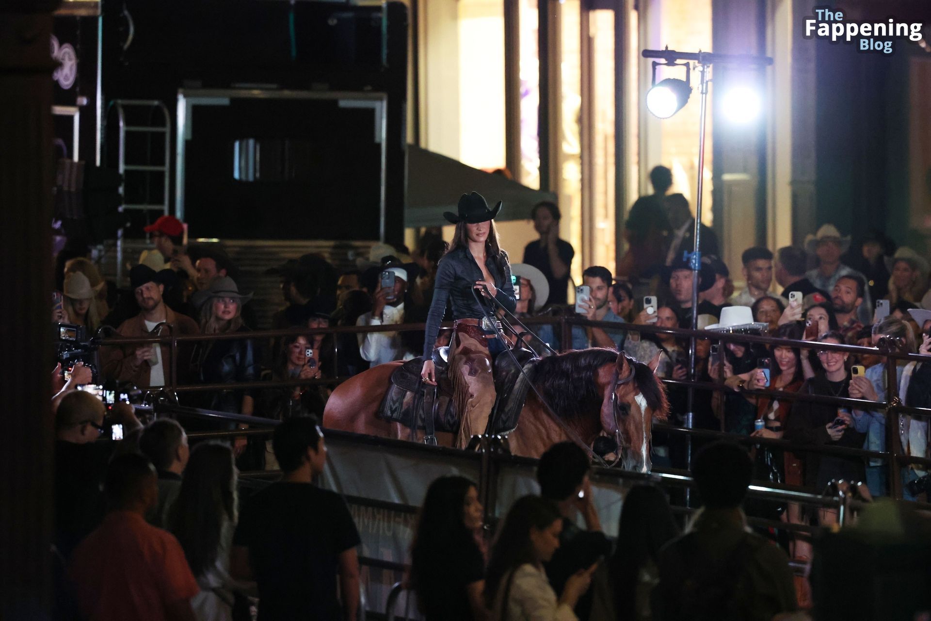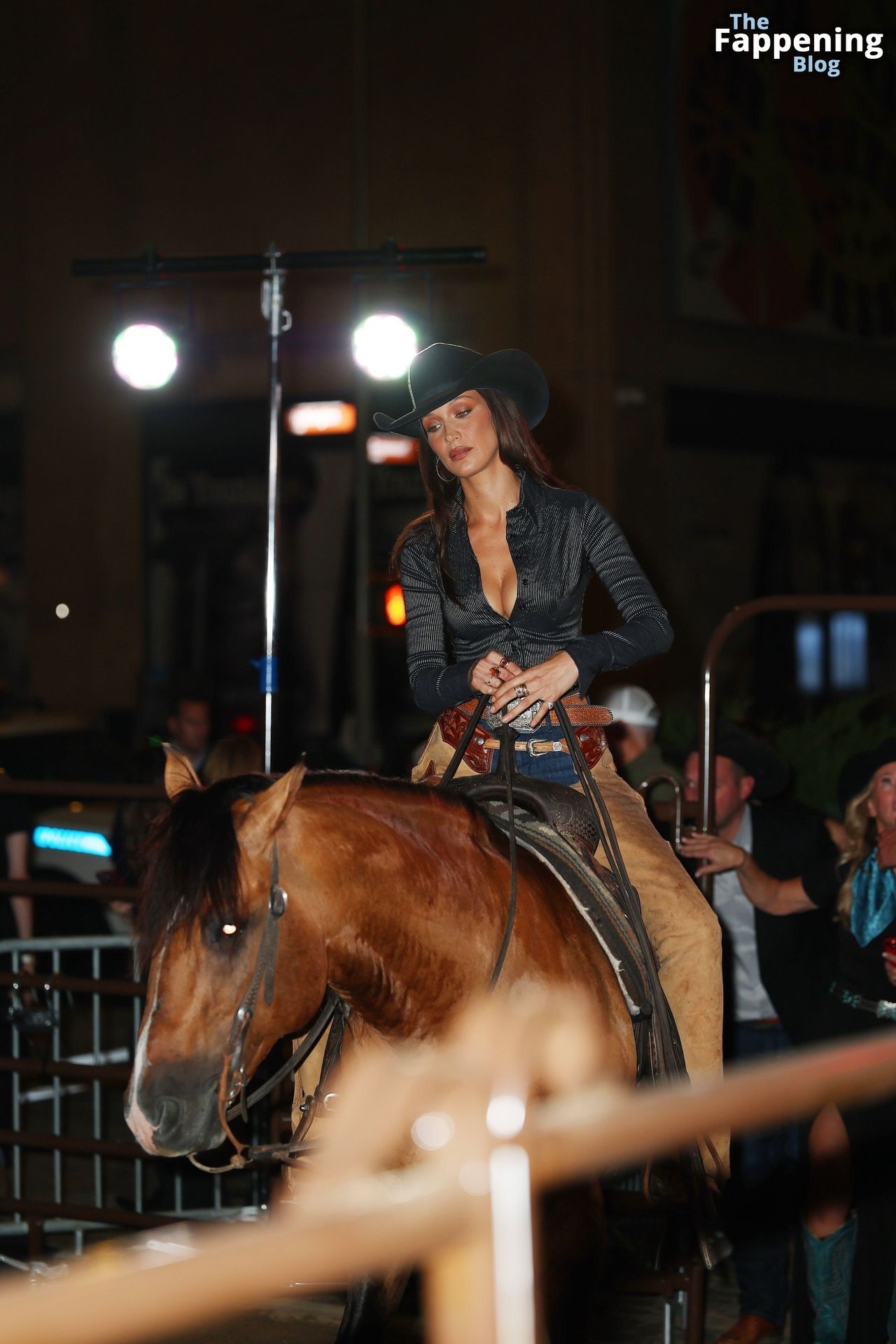 Bella Hadid mette in mostra il suo décolleté in un sensuale outfit da cowgirl all