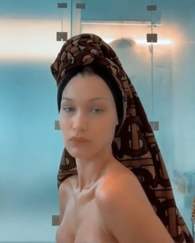 Dai un’occhiata alle foto e al video nude (coperte) di Bella Hadid da Instagram, 24/05/2019. Ha cancellato questo contenuto, ma alcuni fan hanno ottenuto il video in tempo.