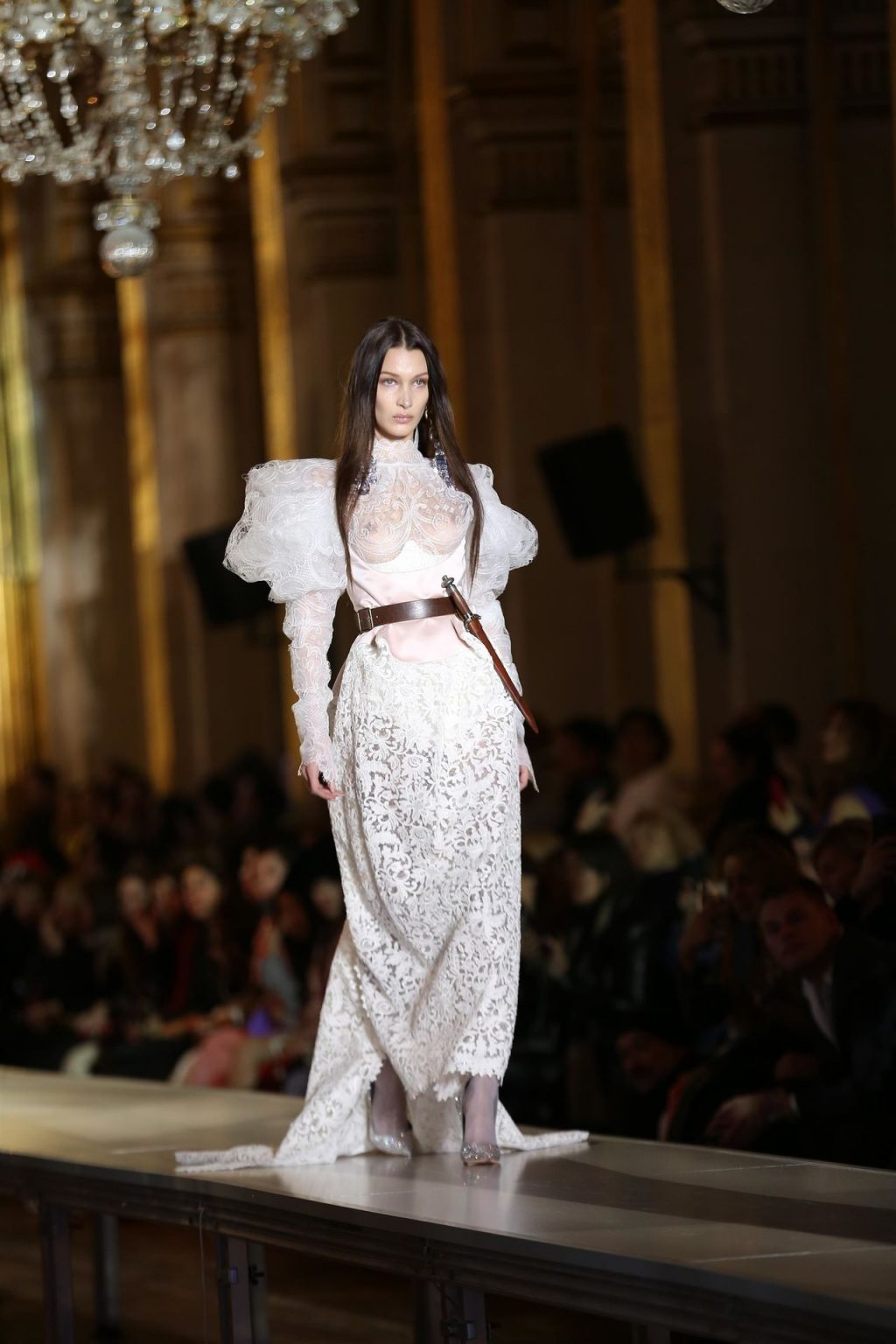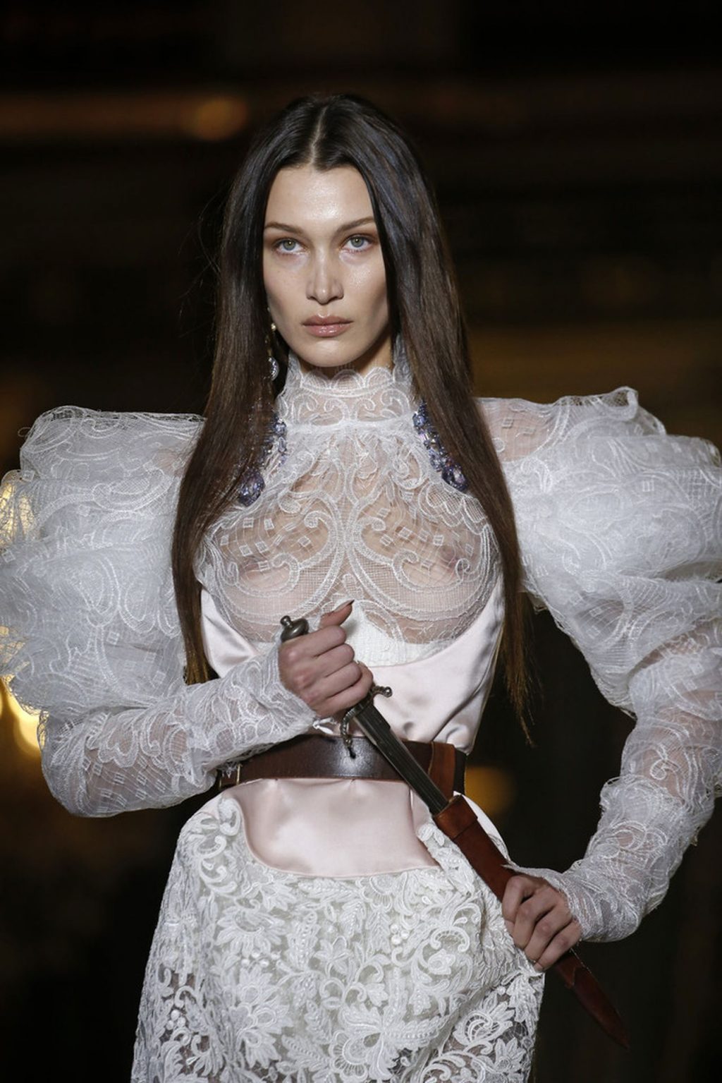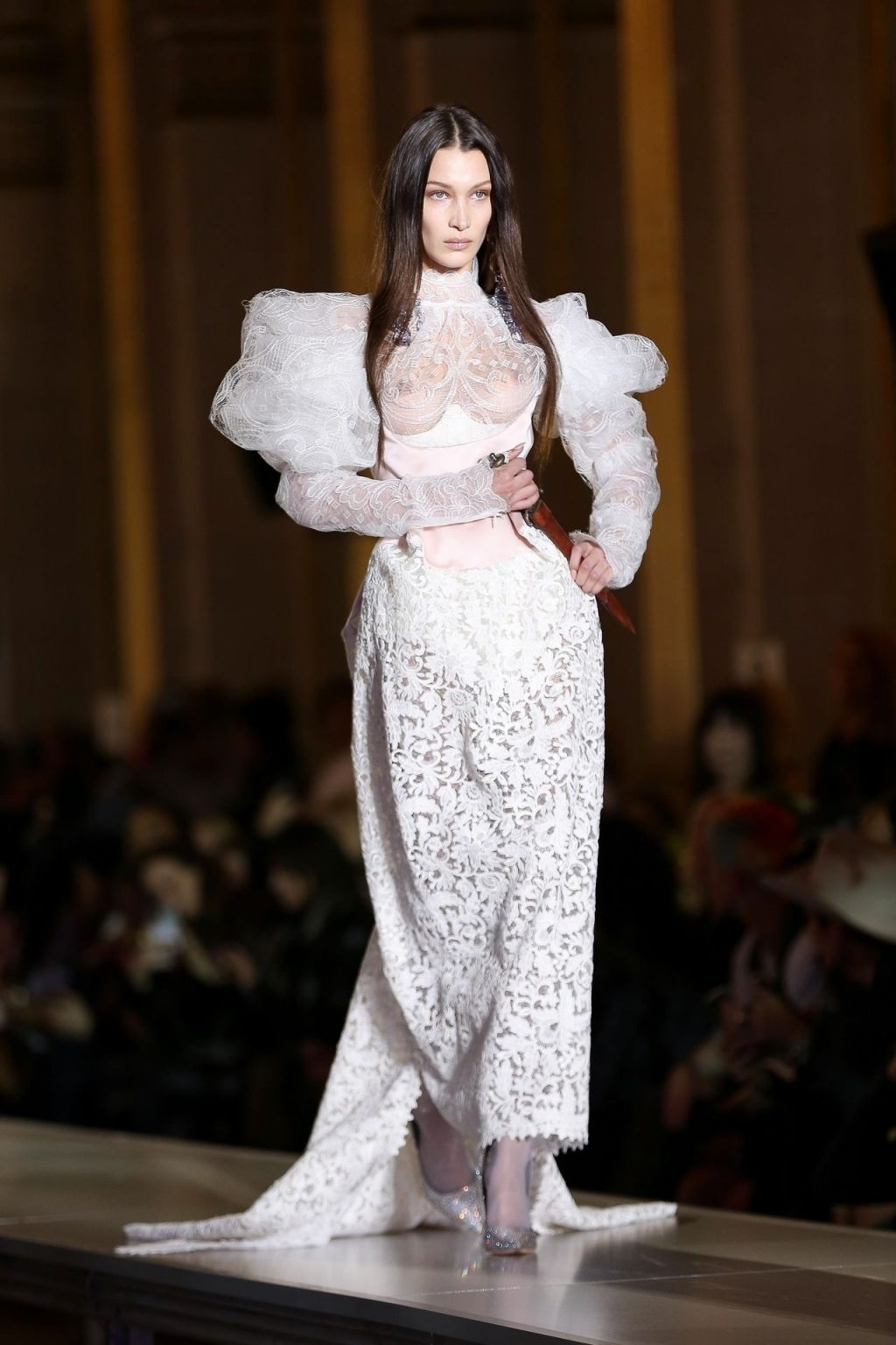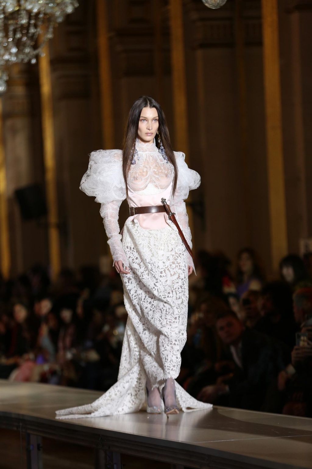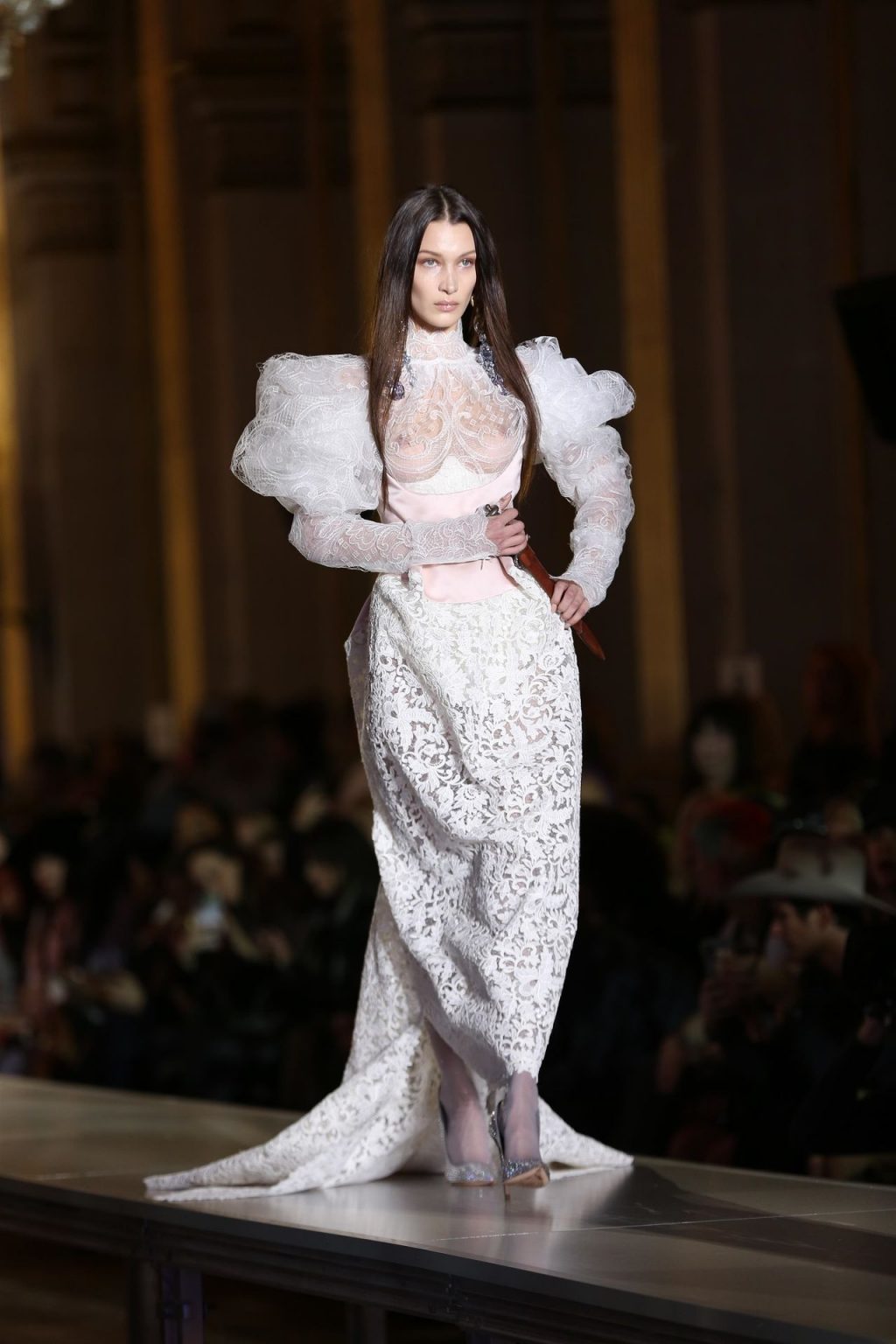 La modella Bella Hadid è stata fotografata senza reggiseno mentre sfilava alla sfilata di moda di Vivienne Westwood durante la Paris Fashion Week, 29/02/2020. Bella ti taglierà i gioielli se guardi i suoi seni!