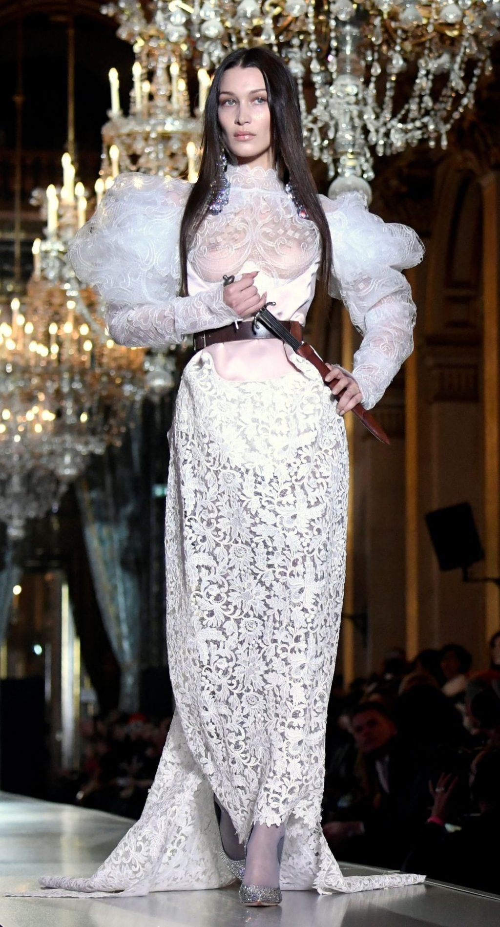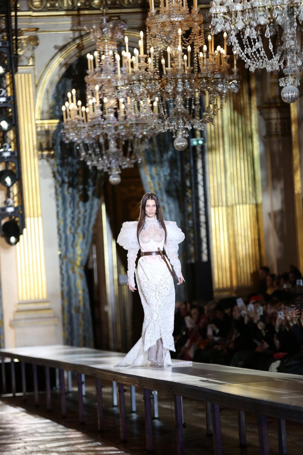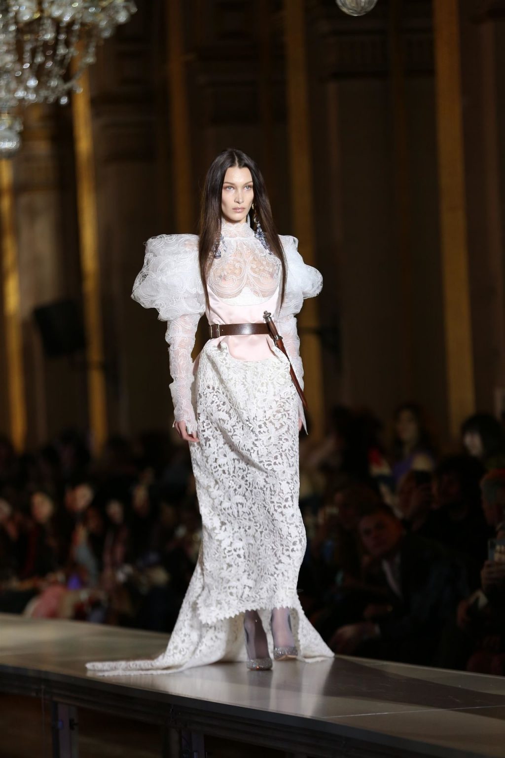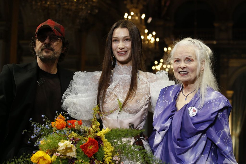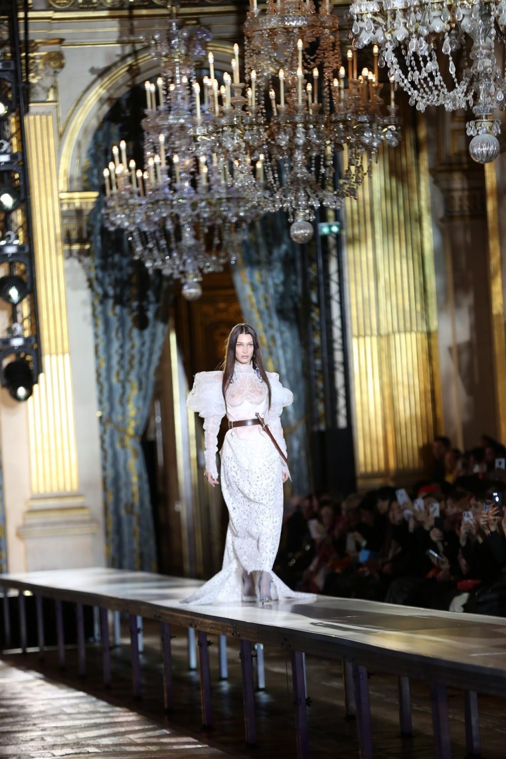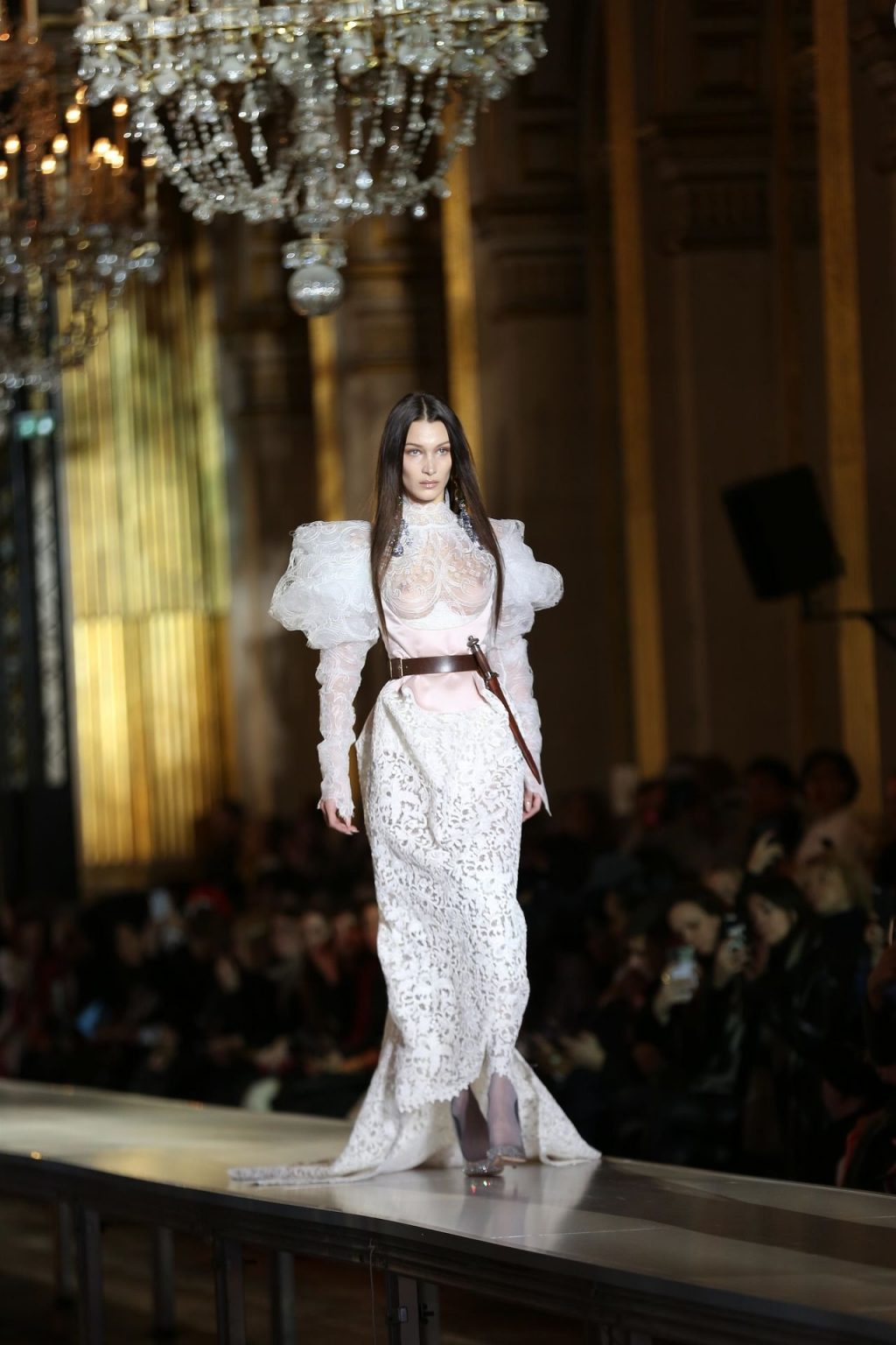 La modella Bella Hadid è stata fotografata senza reggiseno mentre sfilava alla sfilata di moda di Vivienne Westwood durante la Paris Fashion Week, 29/02/2020. Bella ti taglierà i gioielli se guardi i suoi seni!