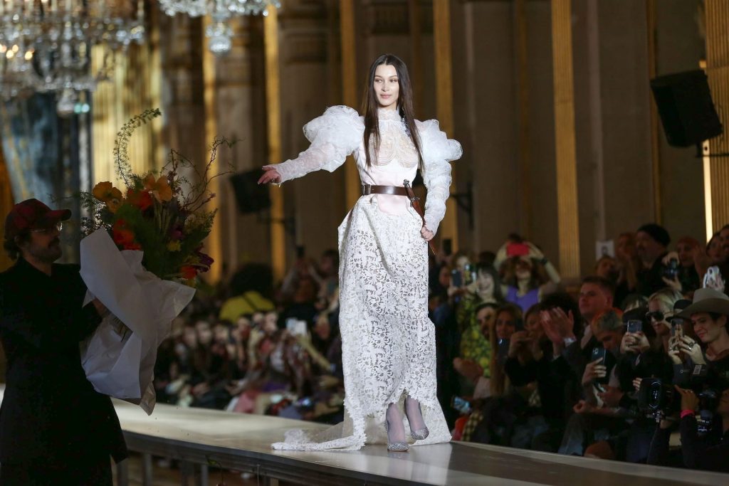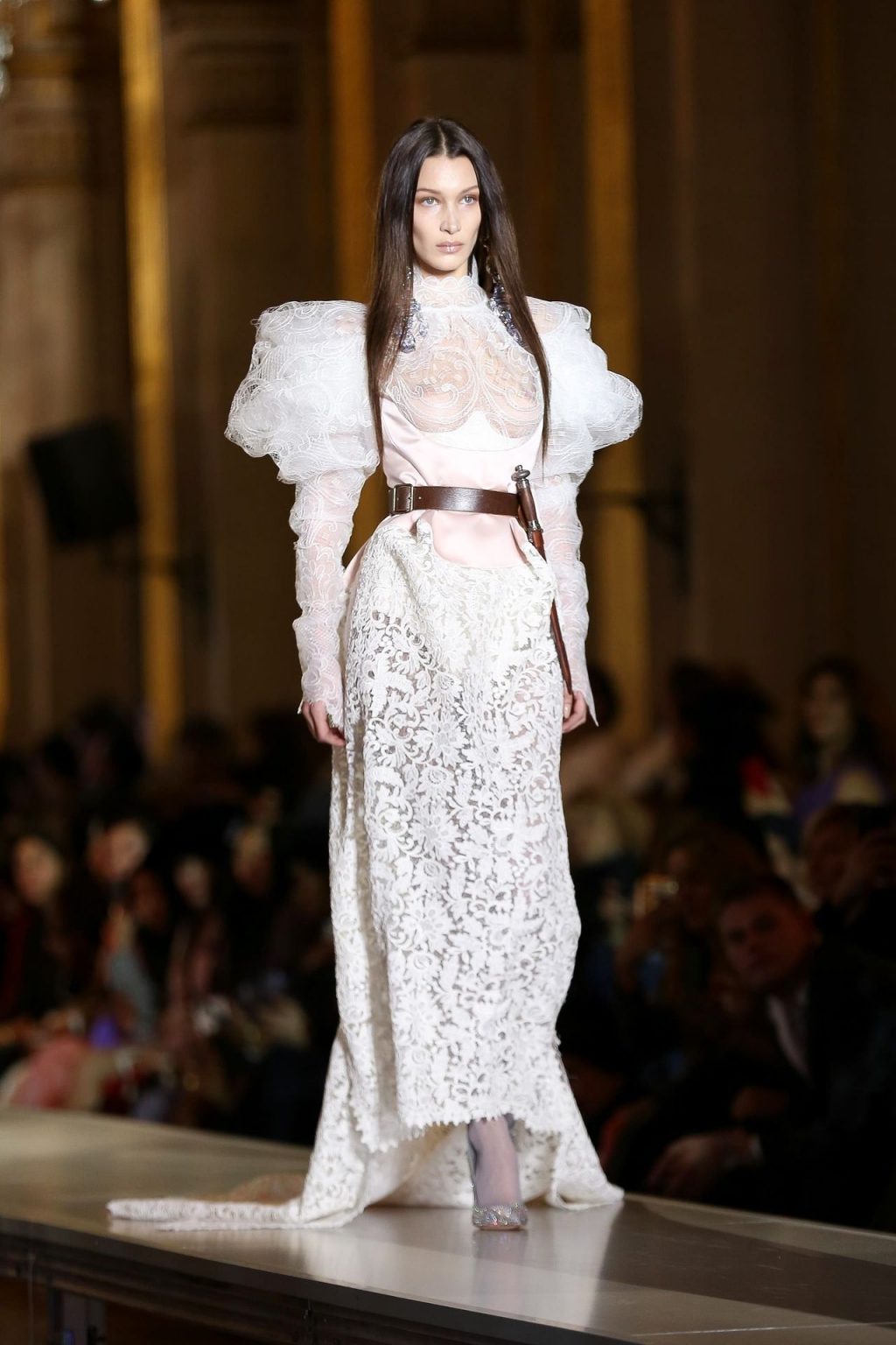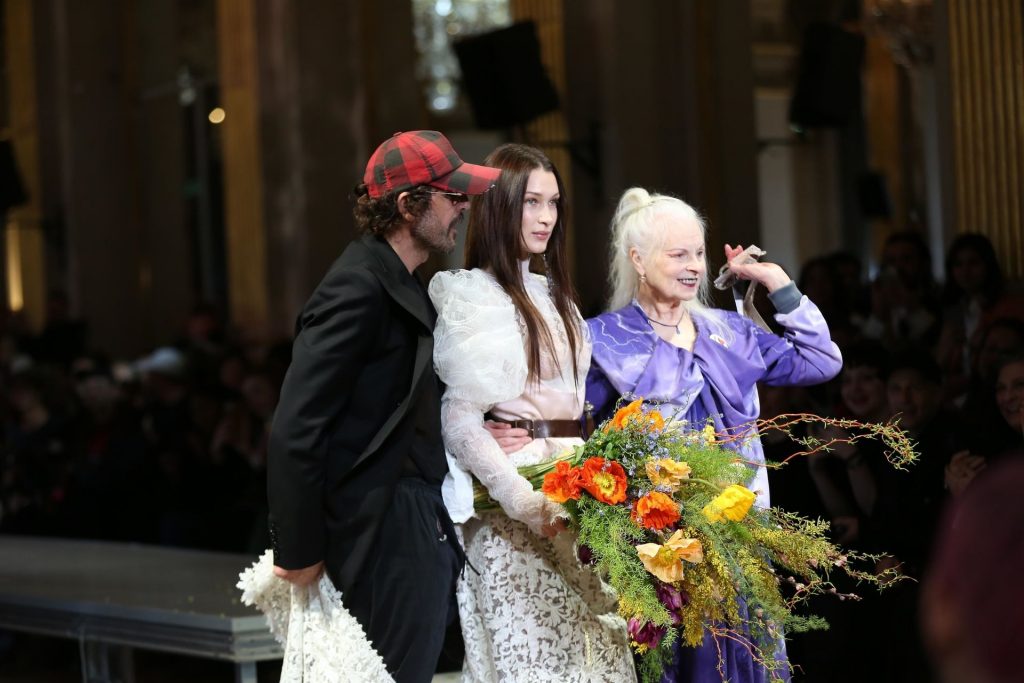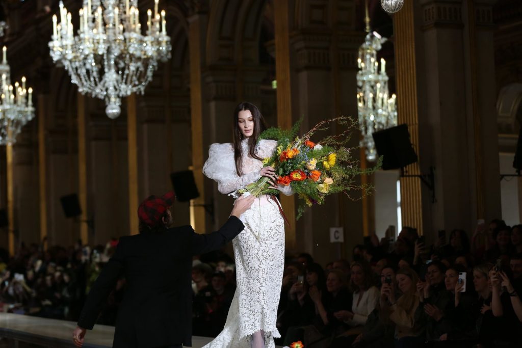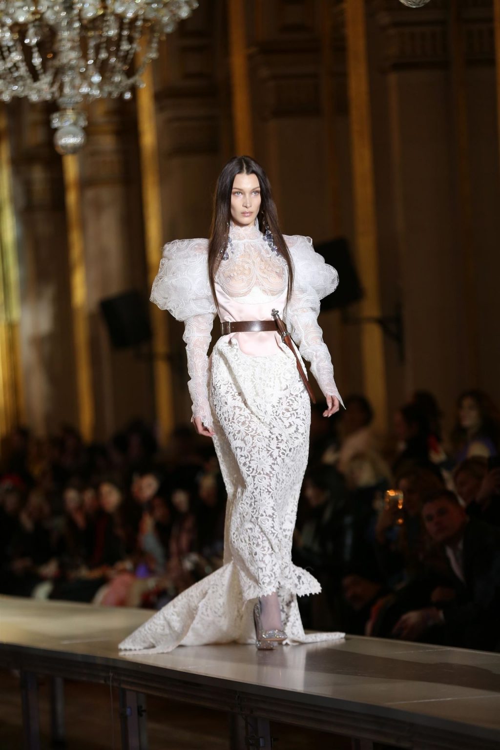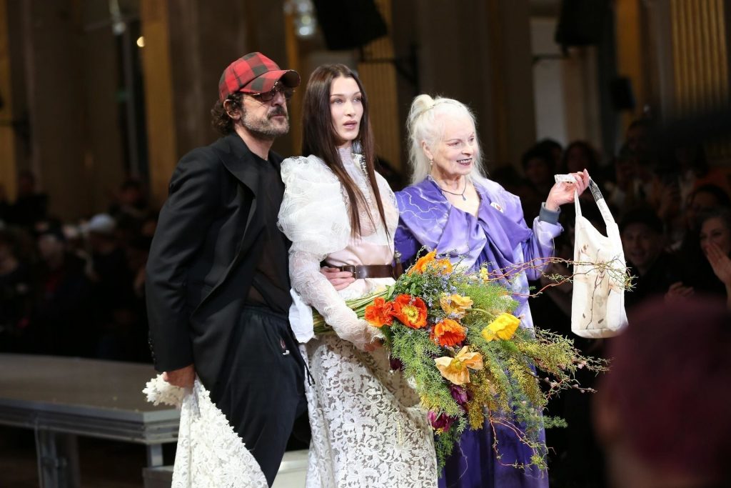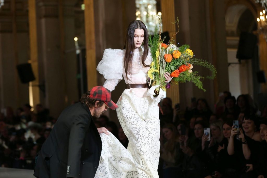La modella Bella Hadid è stata fotografata senza reggiseno mentre sfilava alla sfilata di moda di Vivienne Westwood durante la Paris Fashion Week, 29/02/2020. Bella ti taglierà i gioielli se guardi i suoi seni!