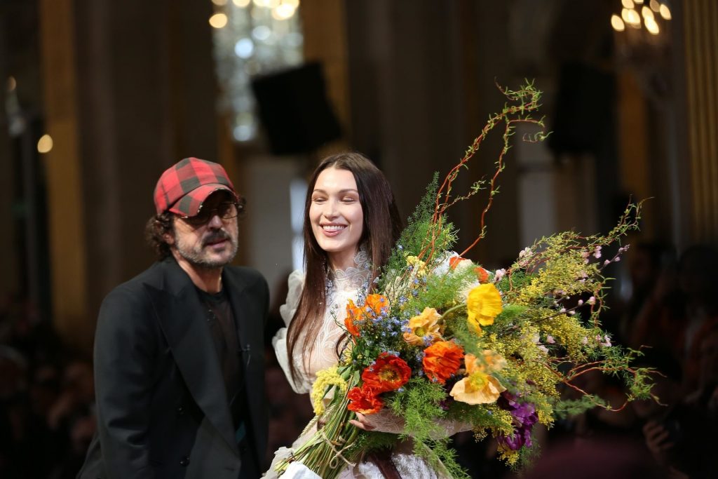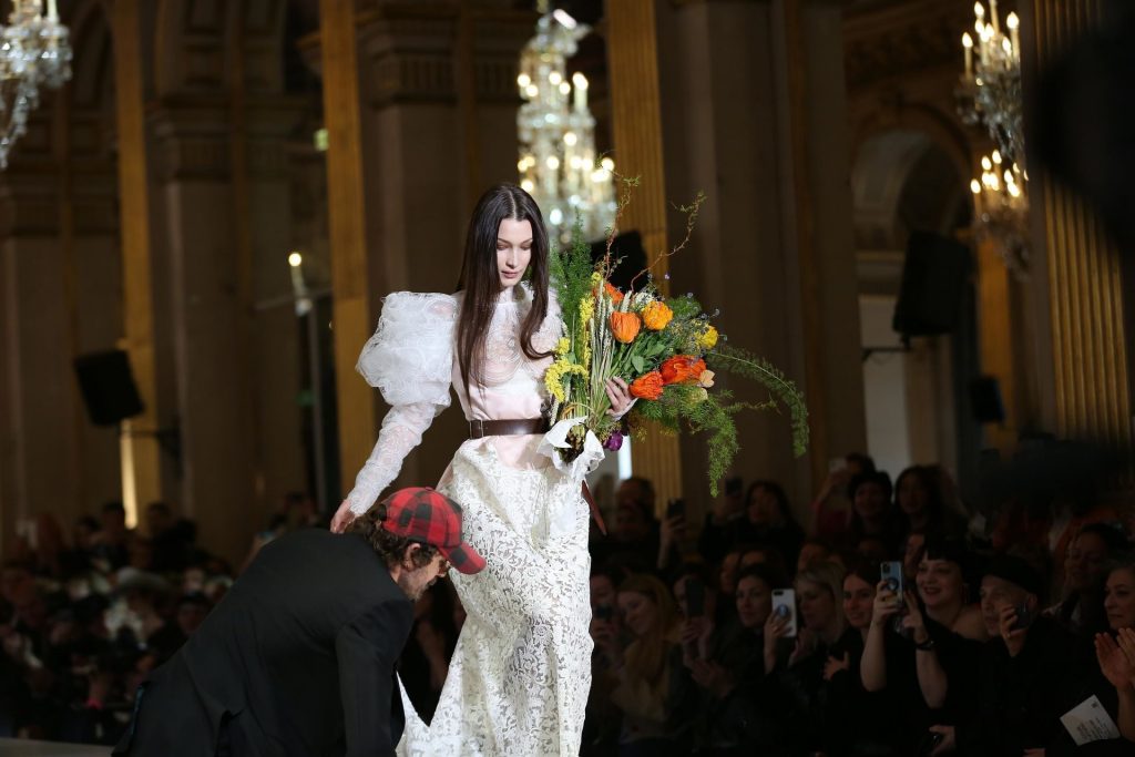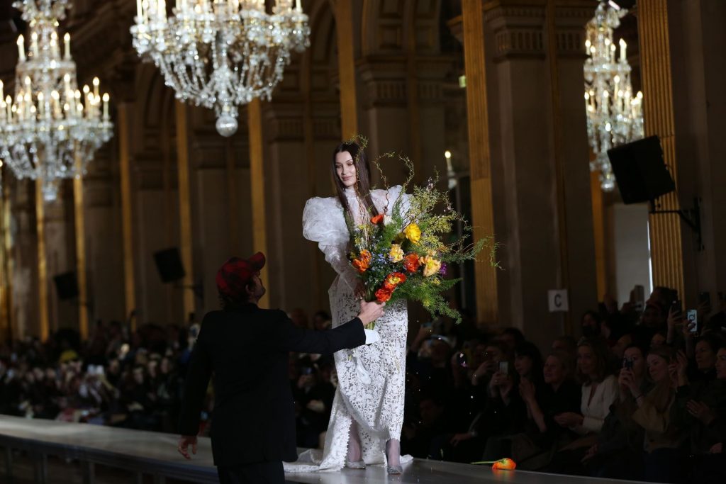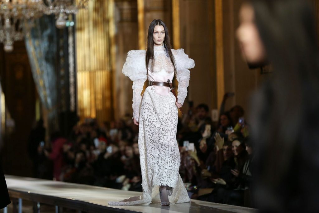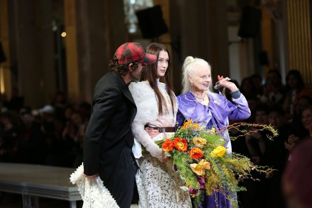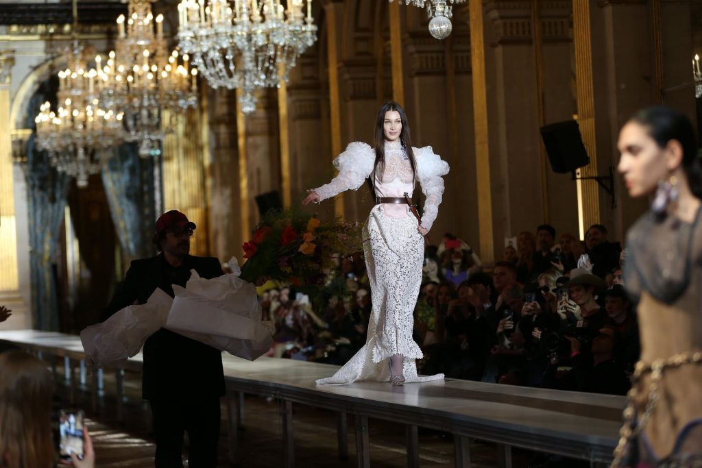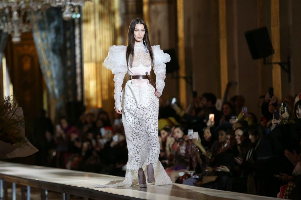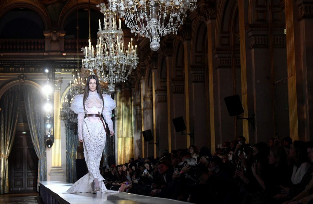 La modella Bella Hadid è stata fotografata senza reggiseno mentre sfilava alla sfilata di moda di Vivienne Westwood durante la Paris Fashion Week, 29/02/2020. Bella ti taglierà i gioielli se guardi i suoi seni!