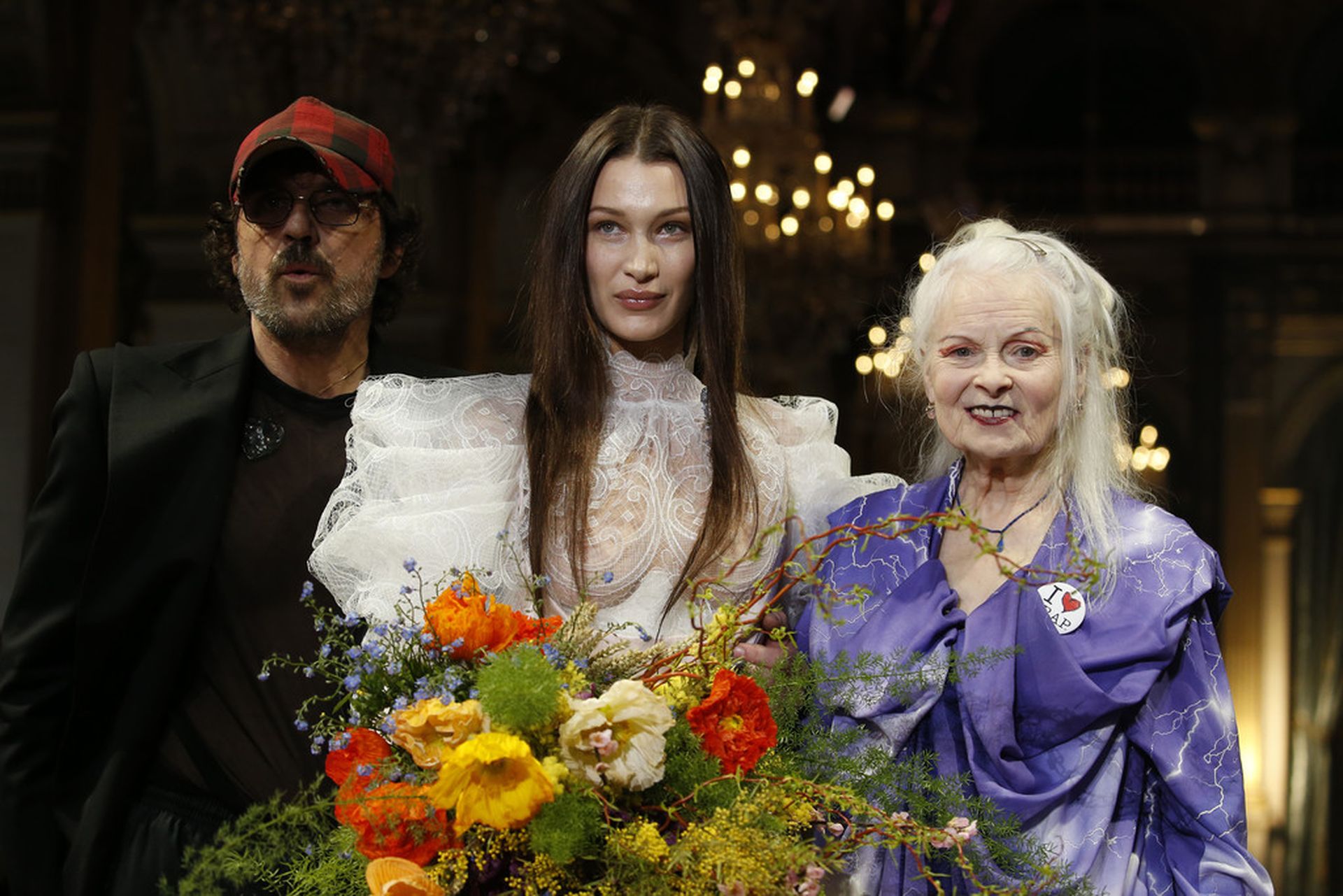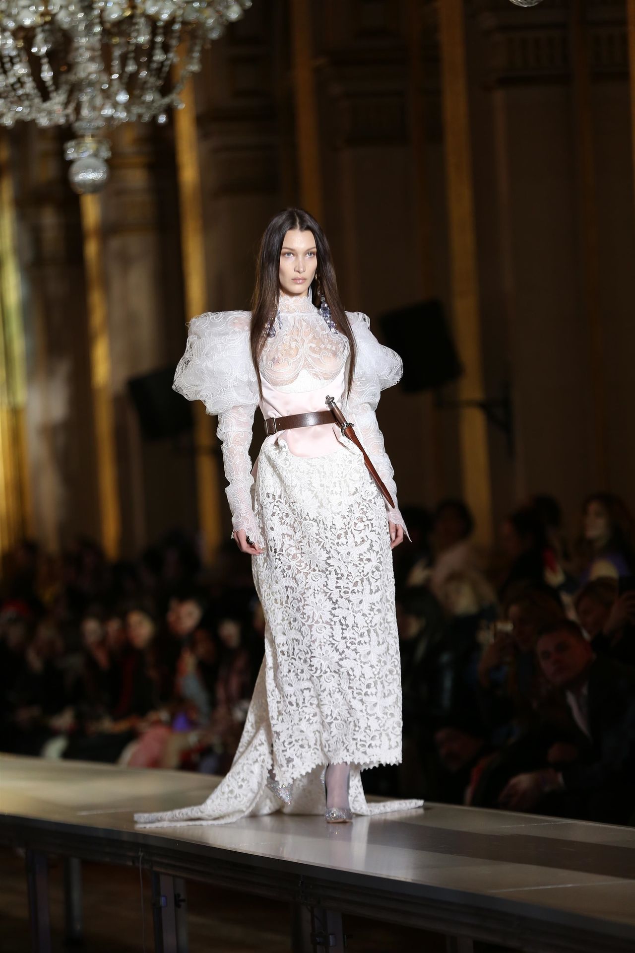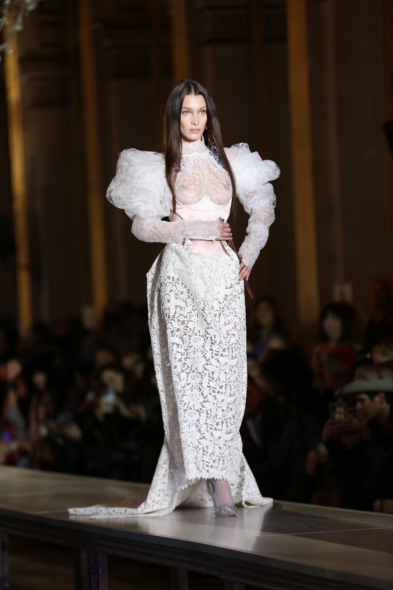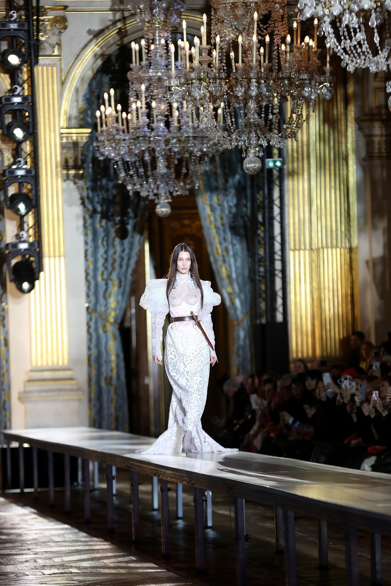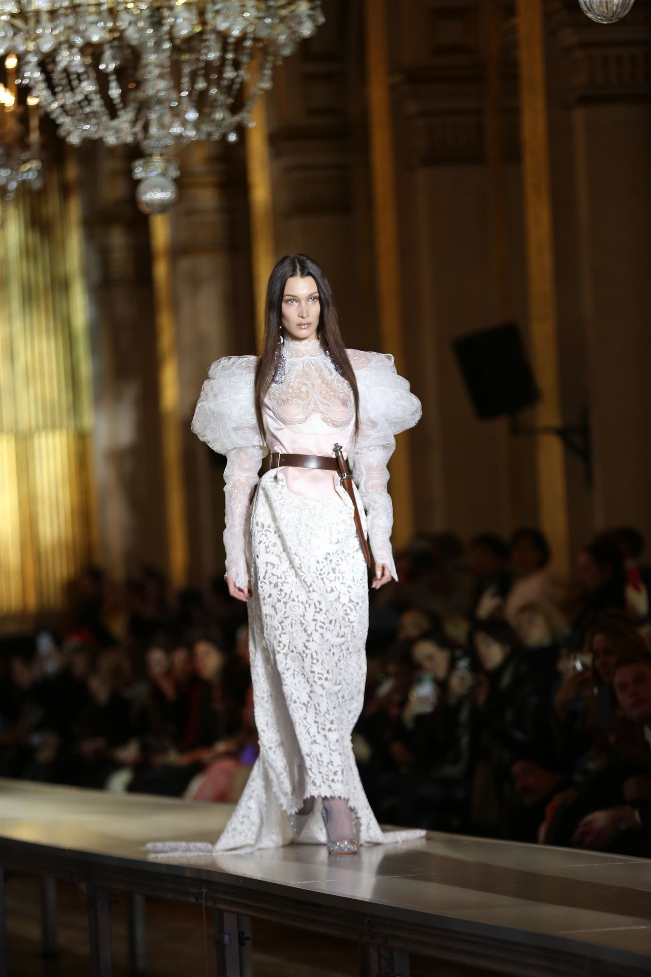 La modella Bella Hadid è stata fotografata senza reggiseno mentre sfilava alla sfilata di moda di Vivienne Westwood durante la Paris Fashion Week, 29/02/2020. Bella ti taglierà i gioielli se guardi i suoi seni!