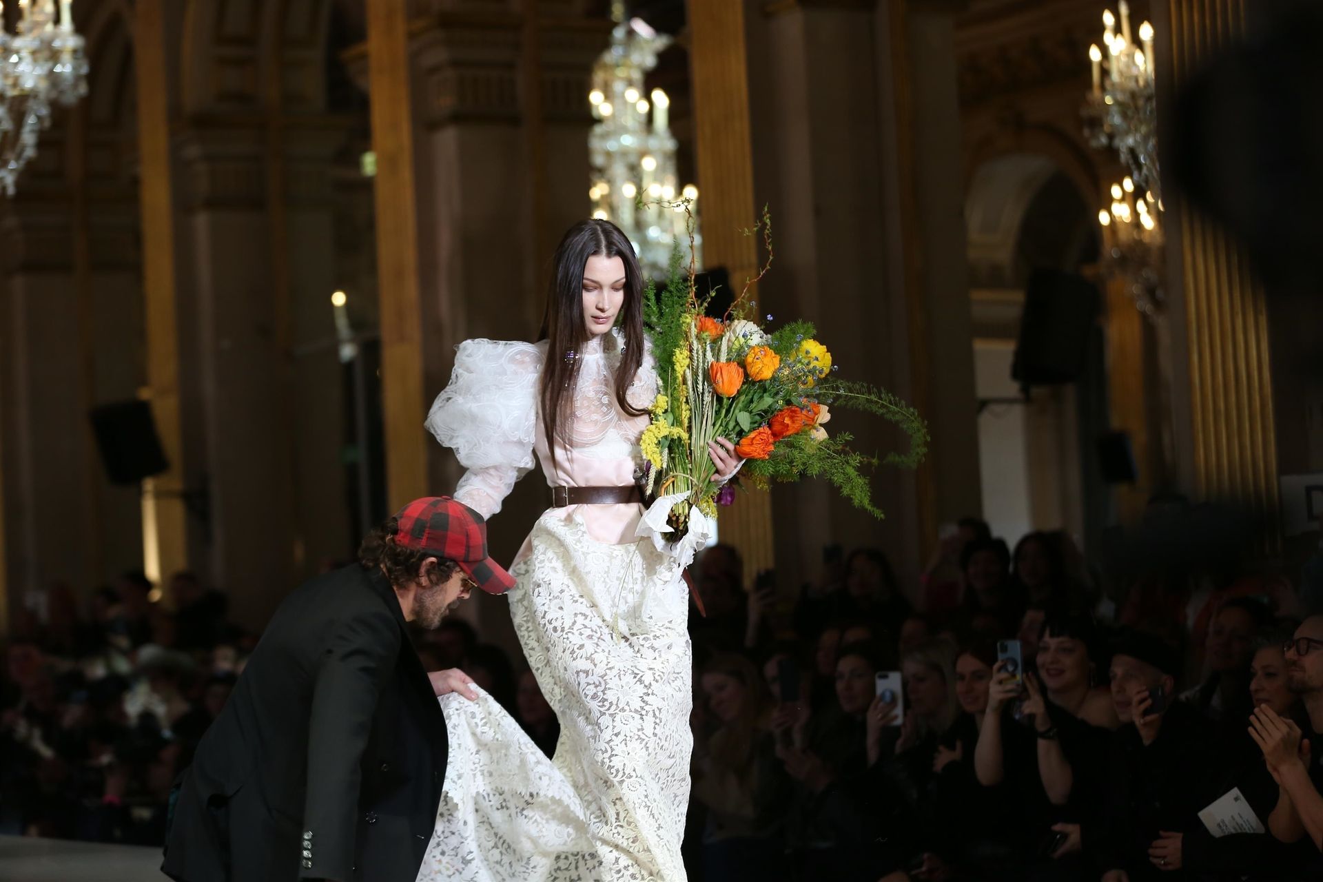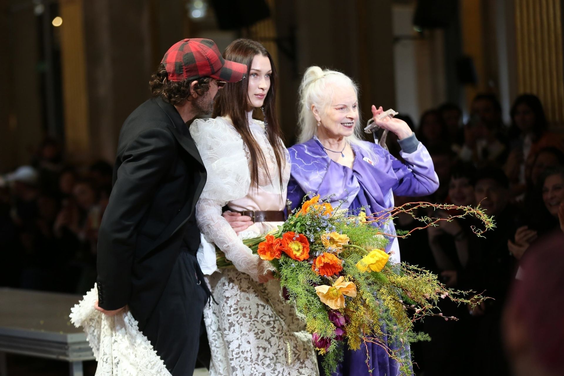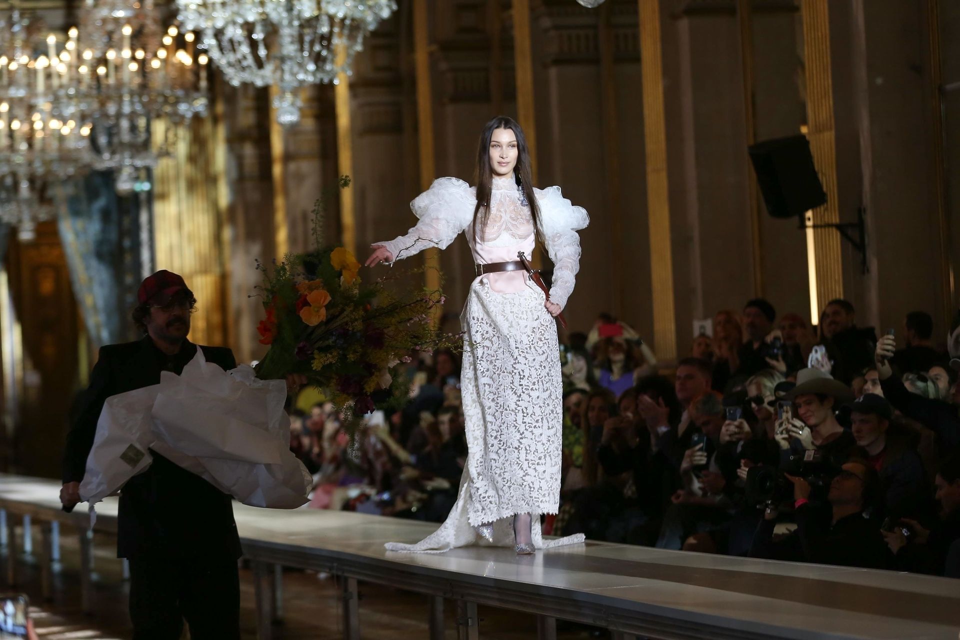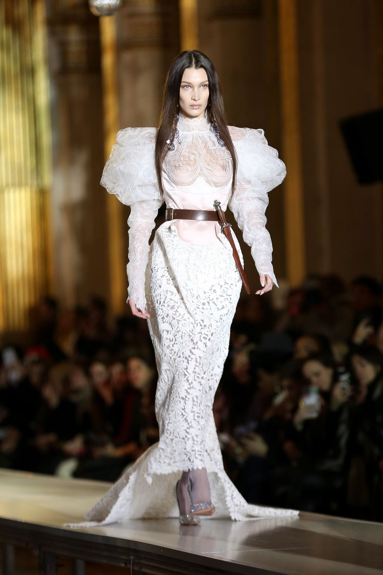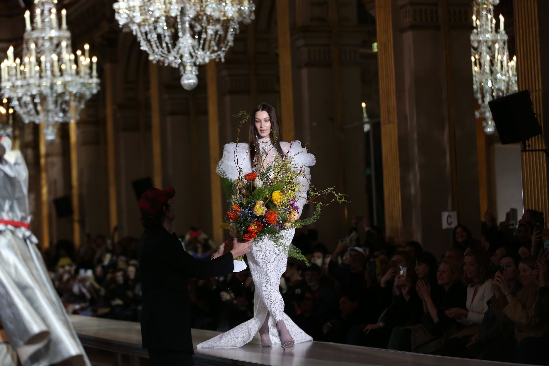 La modella Bella Hadid è stata fotografata senza reggiseno mentre sfilava alla sfilata di moda di Vivienne Westwood durante la Paris Fashion Week, 29/02/2020. Bella ti taglierà i gioielli se guardi i suoi seni!