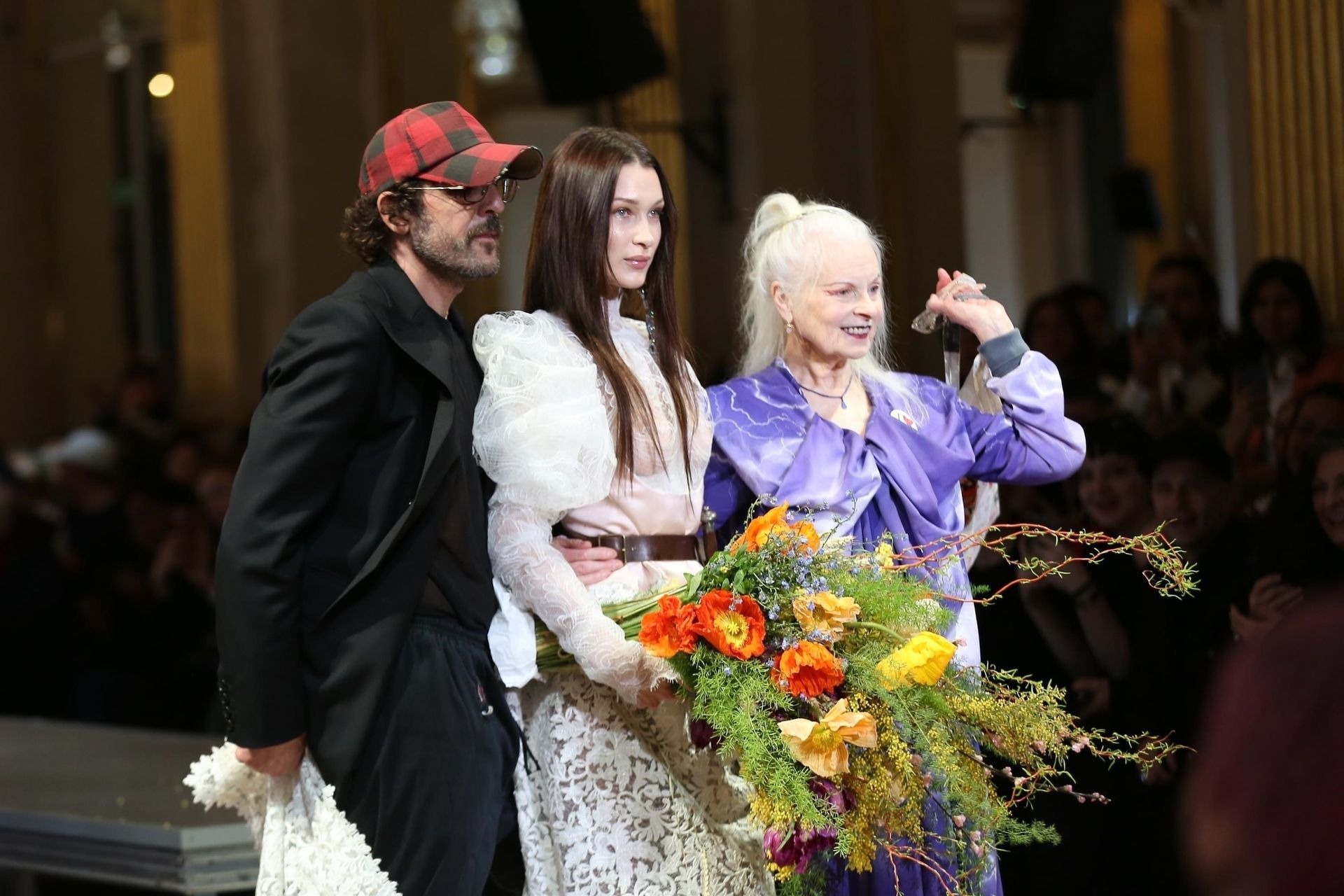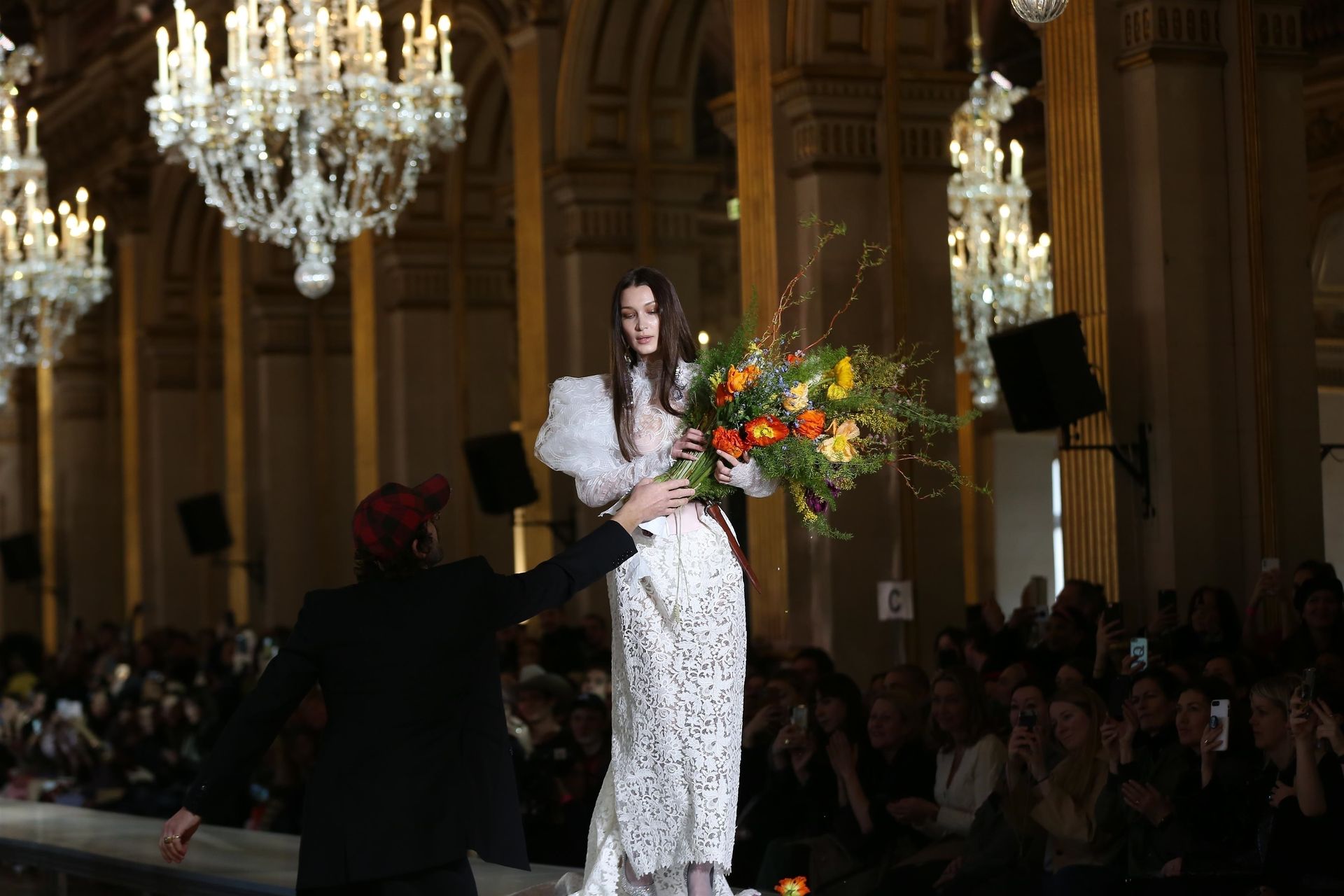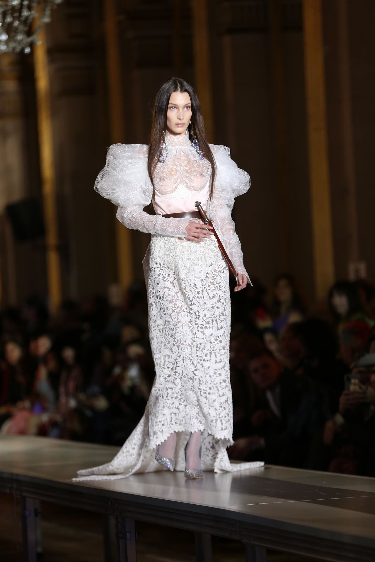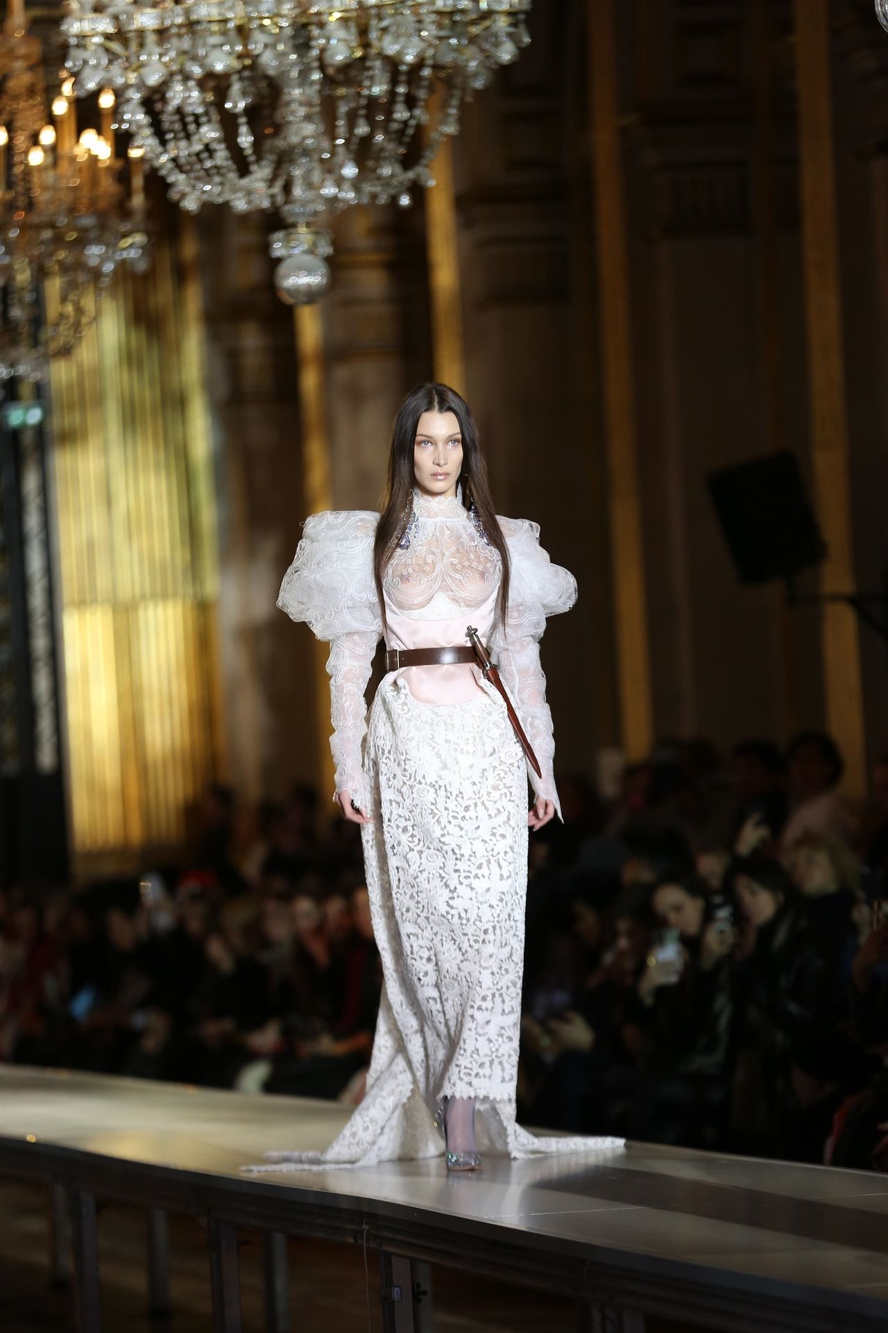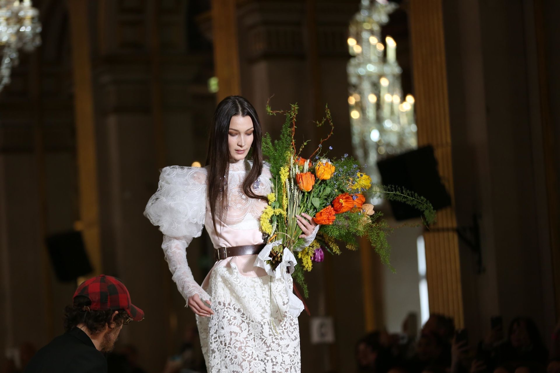 La modella Bella Hadid è stata fotografata senza reggiseno mentre sfilava alla sfilata di moda di Vivienne Westwood durante la Paris Fashion Week, 29/02/2020. Bella ti taglierà i gioielli se guardi i suoi seni!